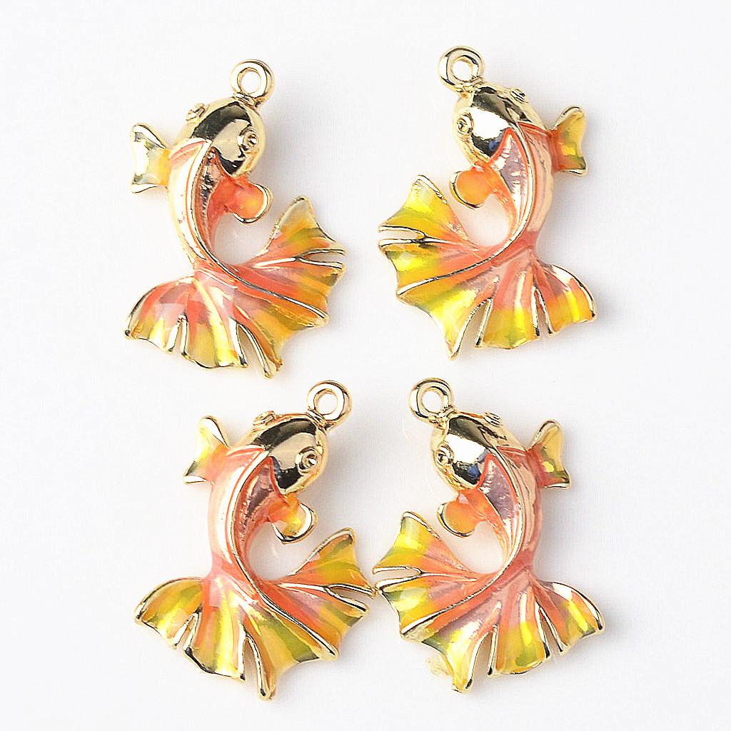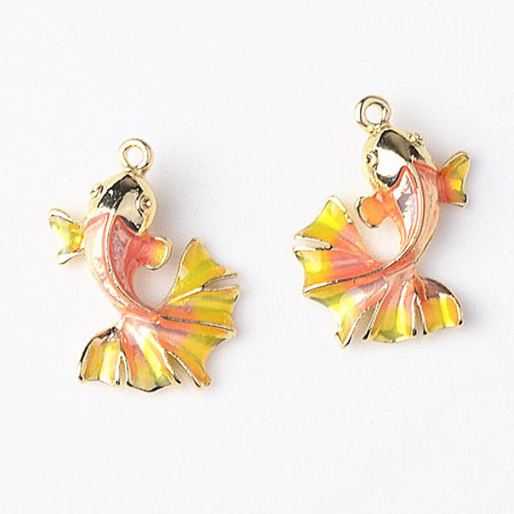 2 Pairs enamel colorful golden fish jewelry making charms, pendants,with fresh color and well smooth surface,never fade off and out of shape.