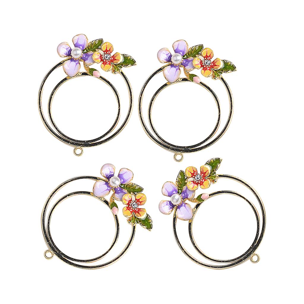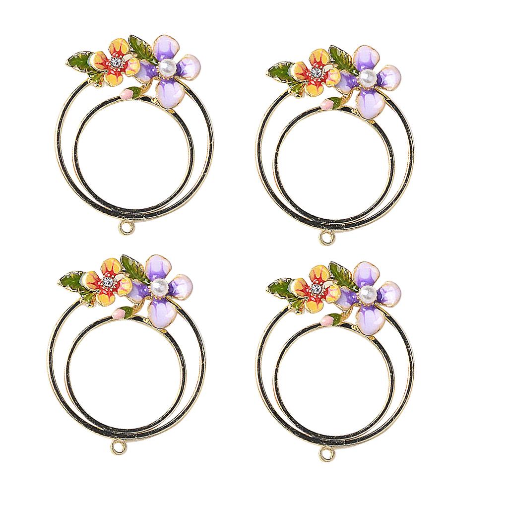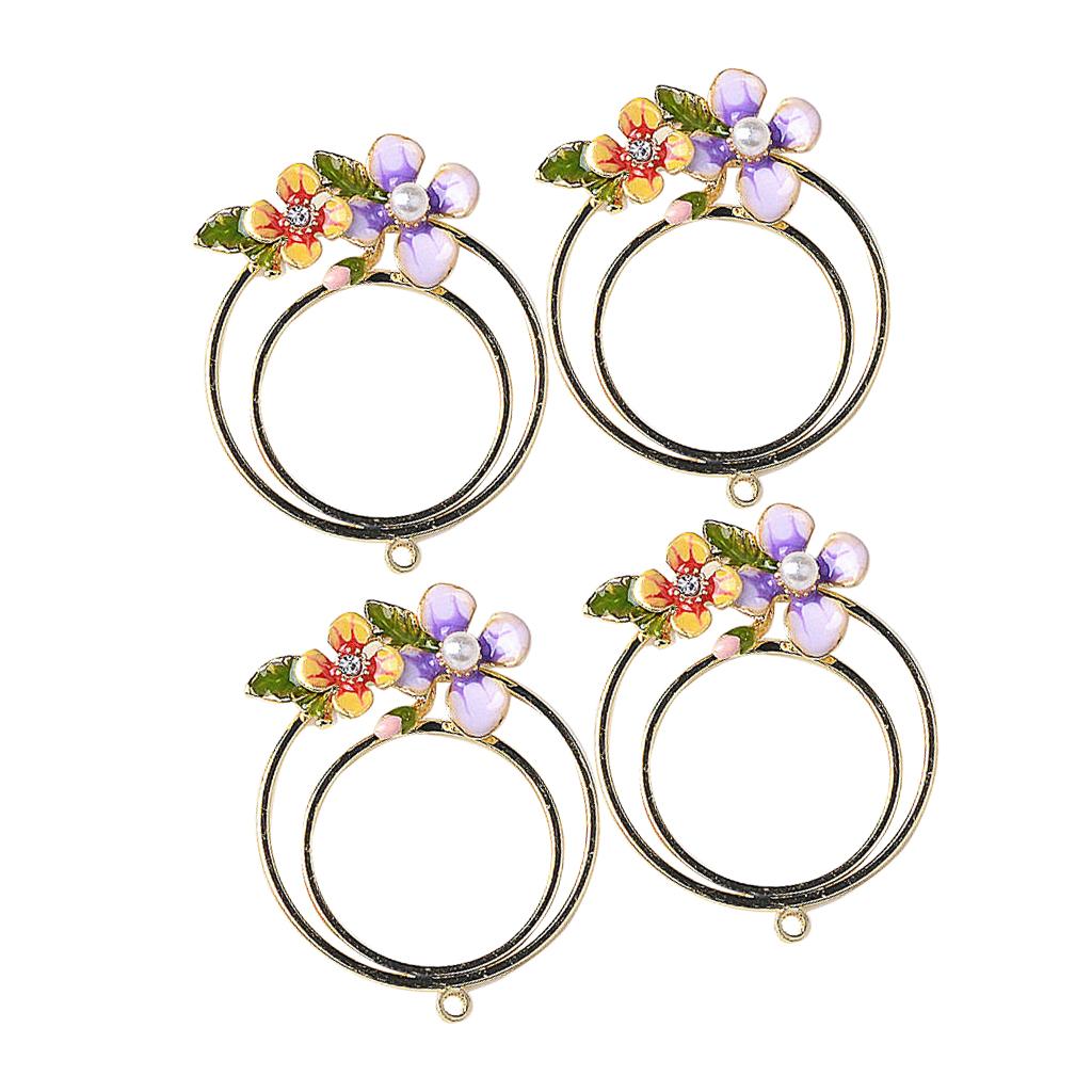 4 Pieces Enamel Charms Pendant Alloy Pearl Flower DIY Jewelry Findings Craft