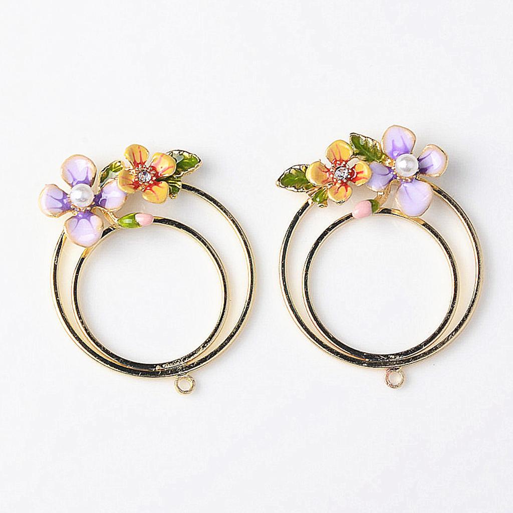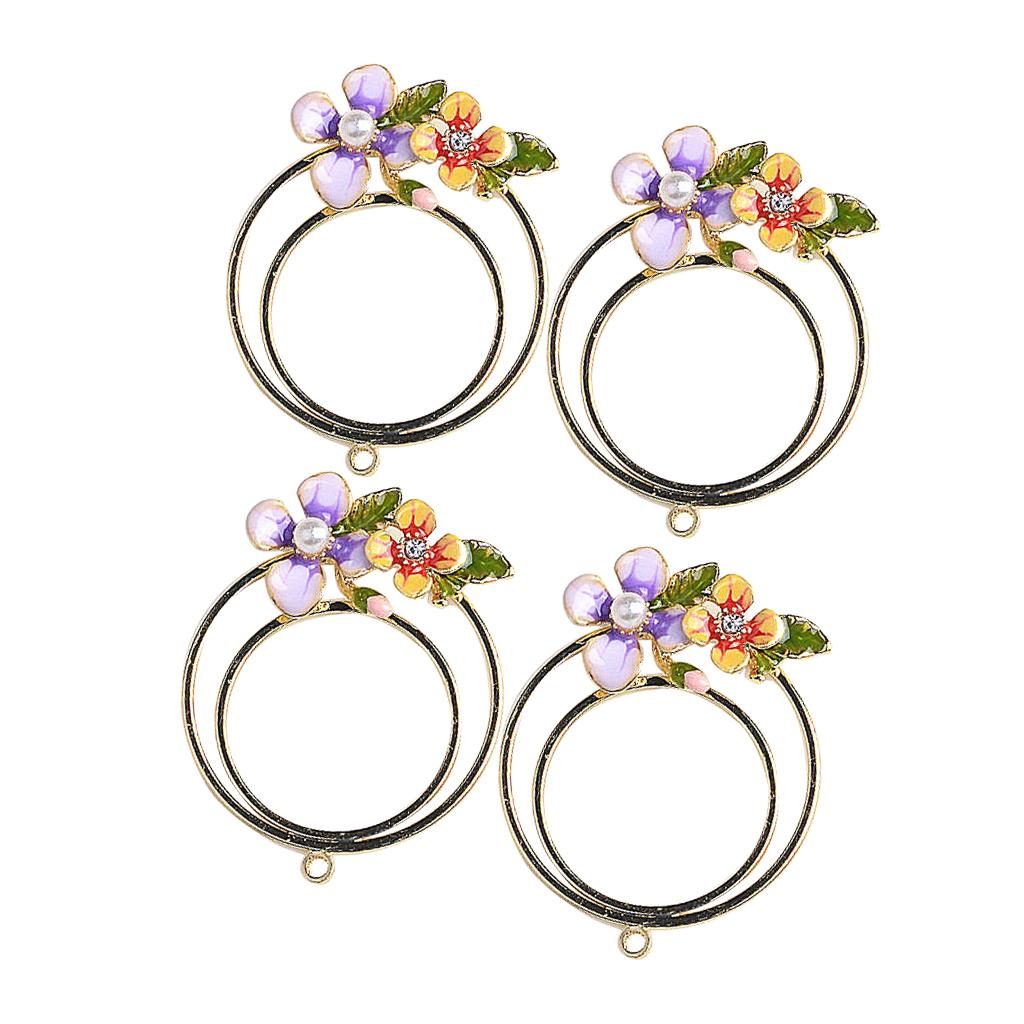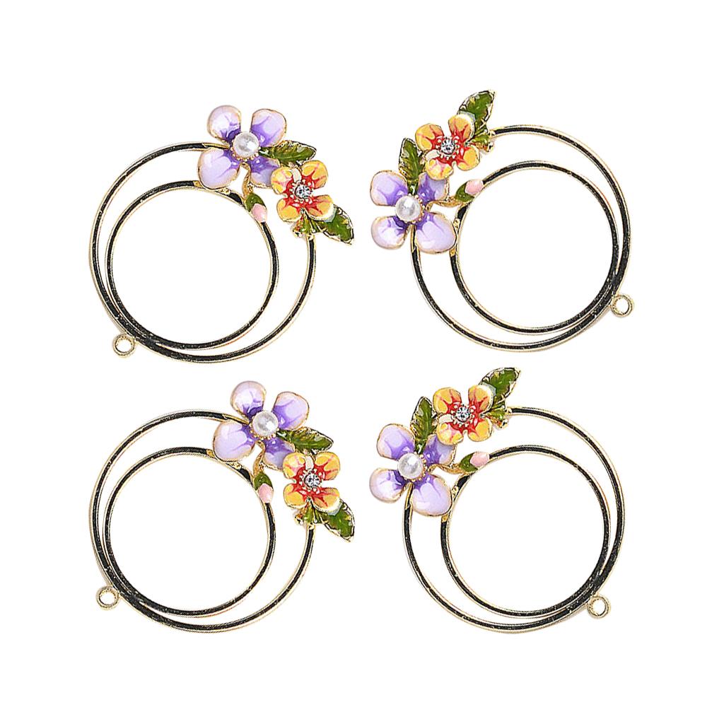 4 Pieces Enamel Charms Pendant Alloy Pearl Flower DIY Jewelry Findings Craft