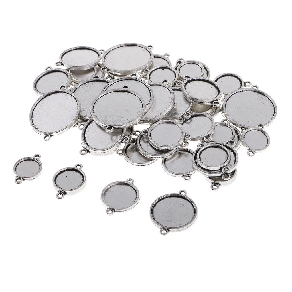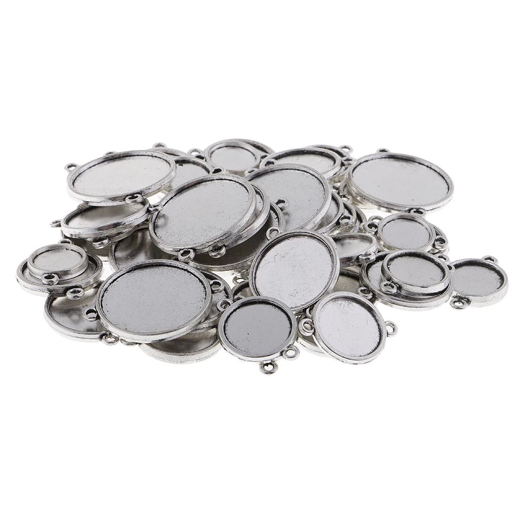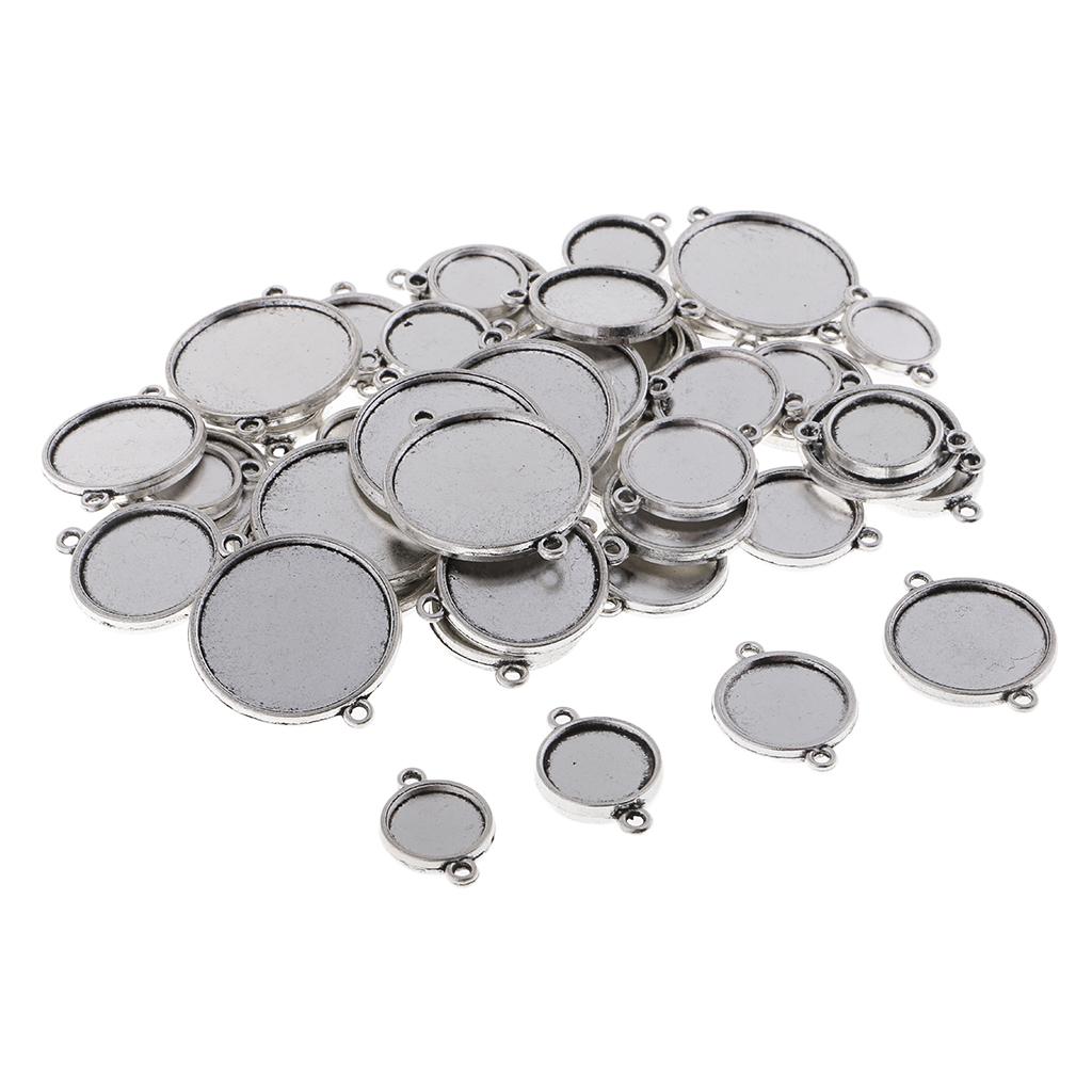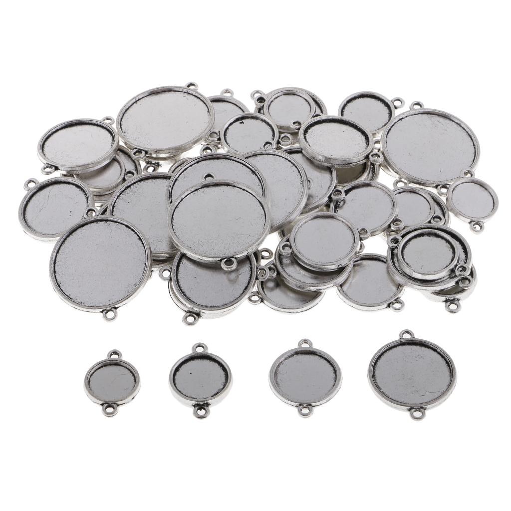 48 Piece Double Sided Charms Pendants Blank Base Photo Cameo Bezel Settings Tray with 2pcs Bail Jewelry Findings for DIY Necklace Bracelet 12-25mm