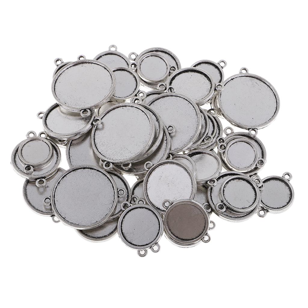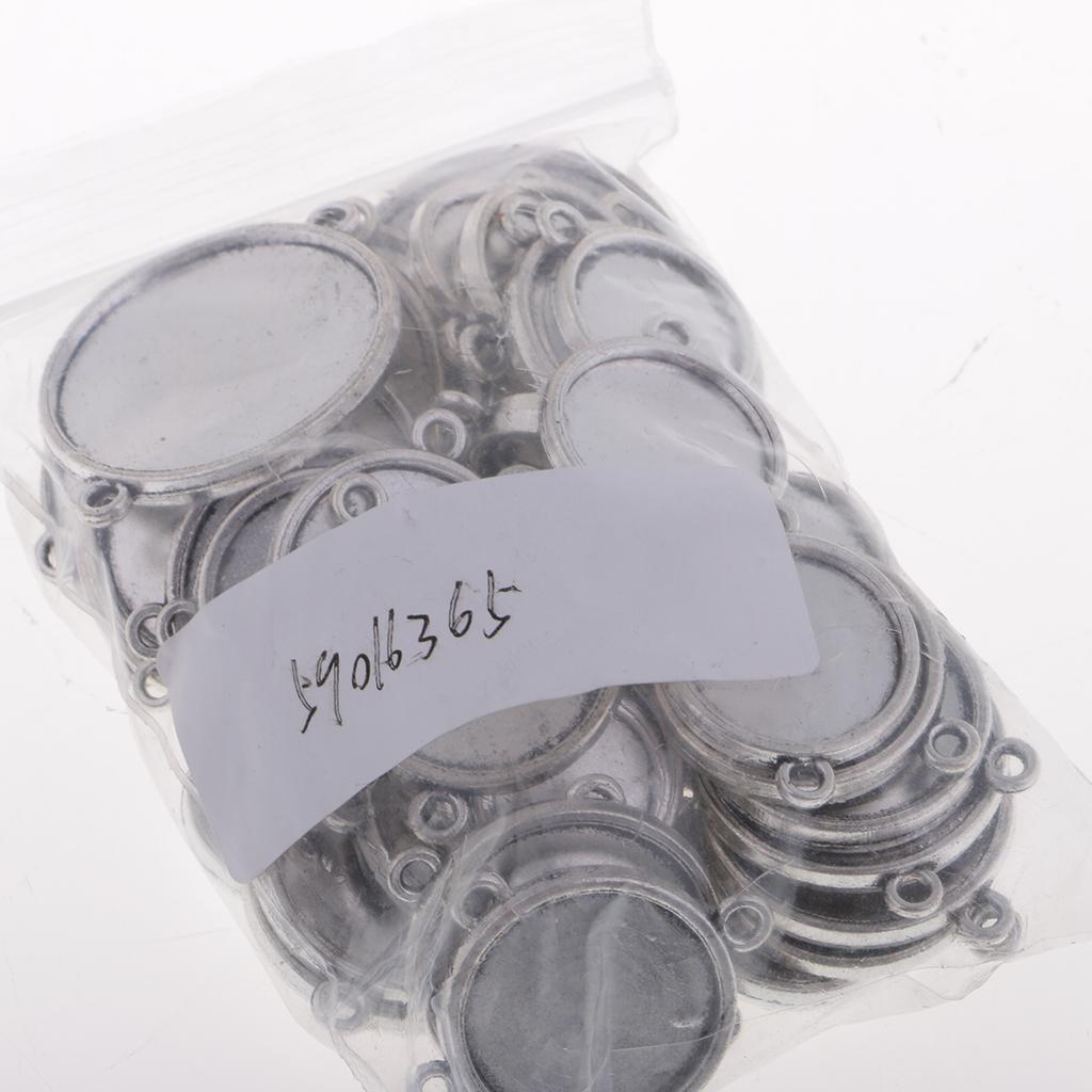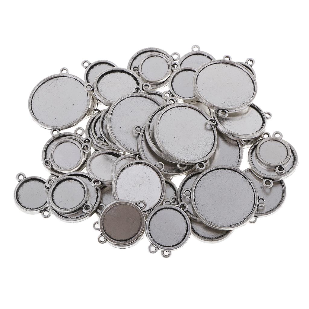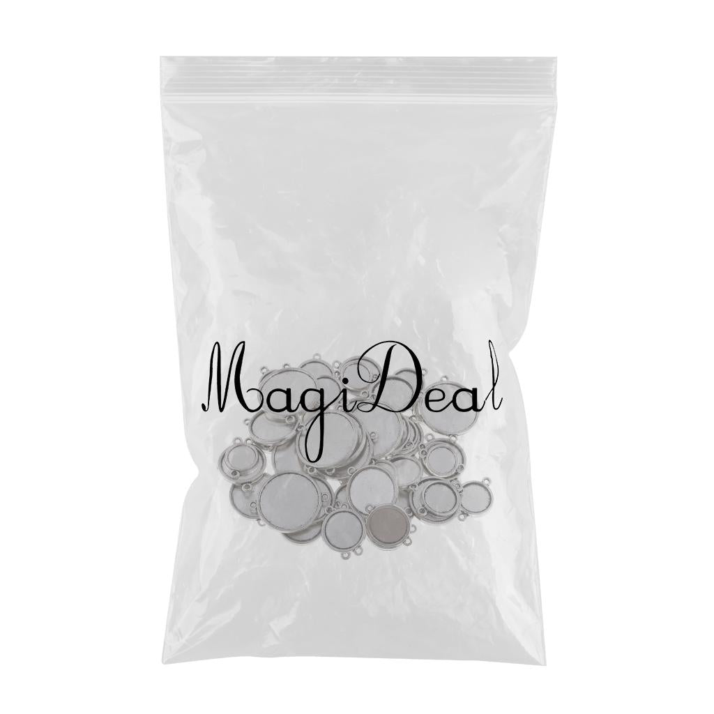 48 Piece Double Sided Charms Pendants Blank Base Photo Cameo Bezel Settings Tray with 2pcs Bail Jewelry Findings for DIY Necklace Bracelet 12-25mm