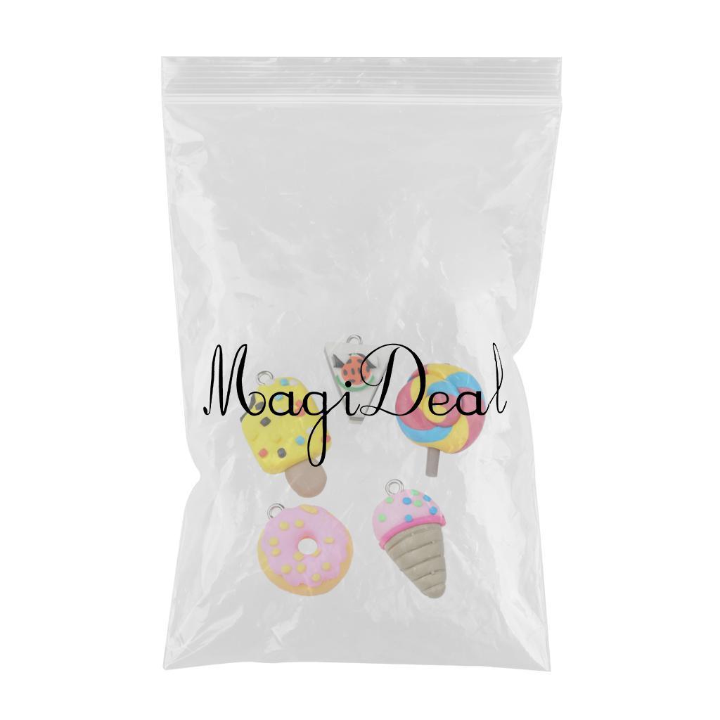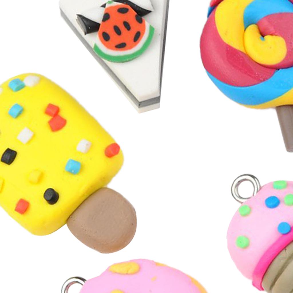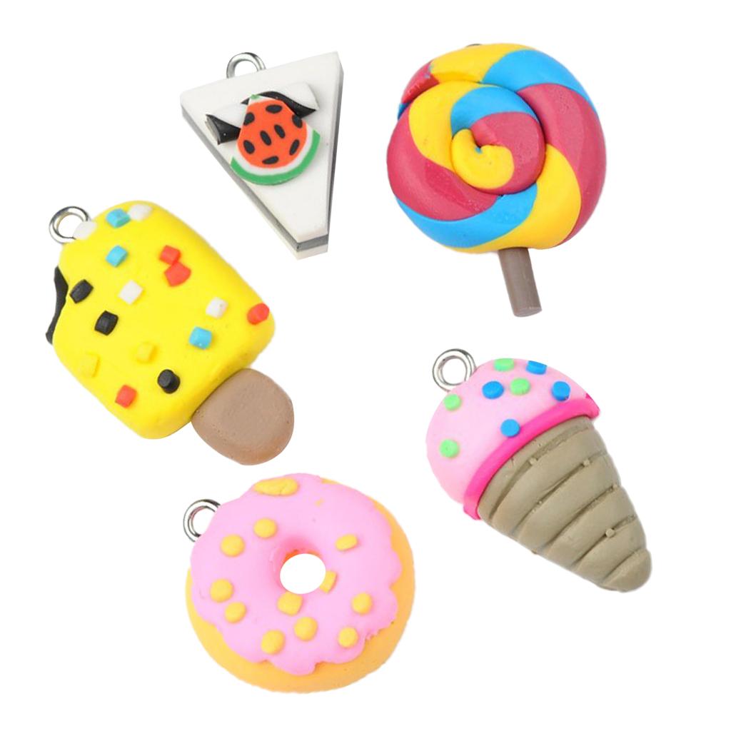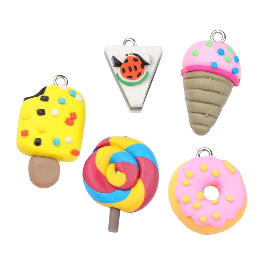 5 Pieces Kawaii Polymer Clay Charm Pendants Includes Ice Cream, Candy, Donut, Lollipop and Sandwich Shaped Pendant for Jewelry Findings DIY Craft