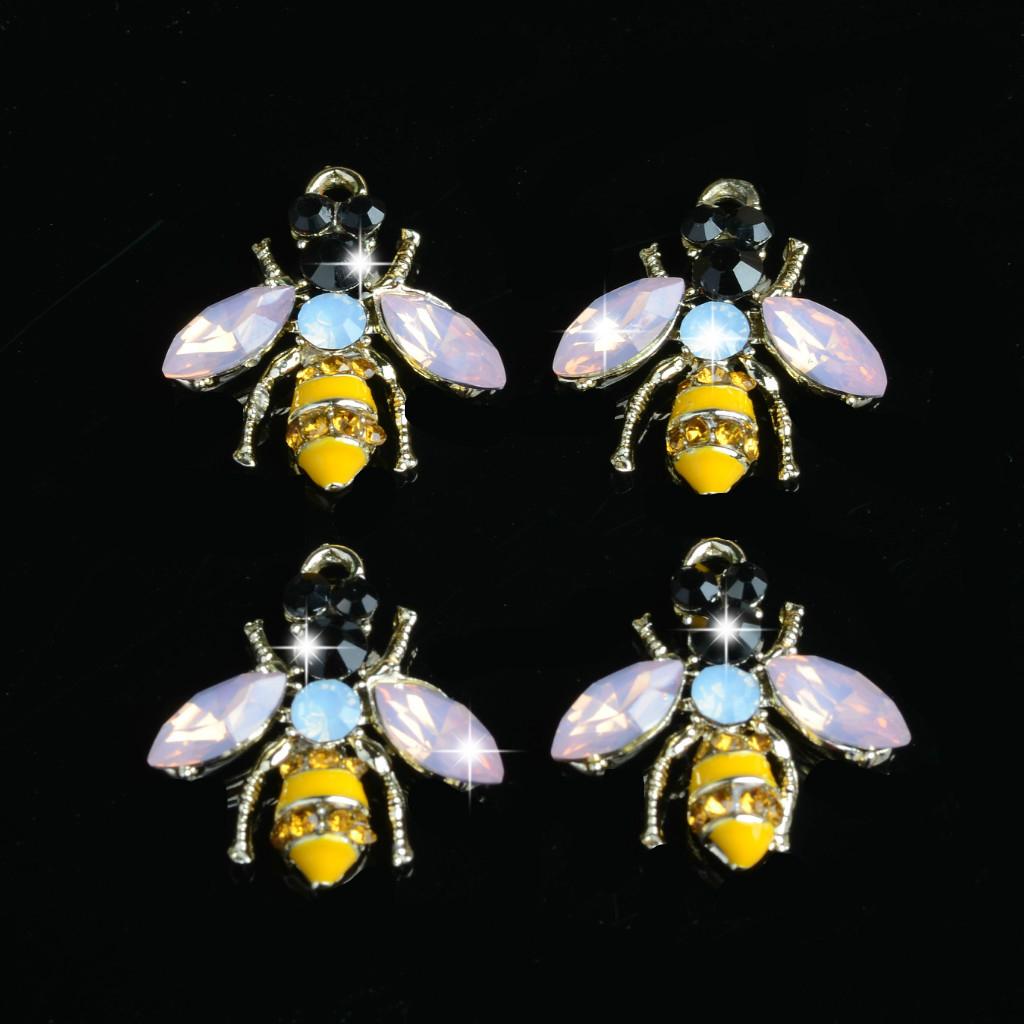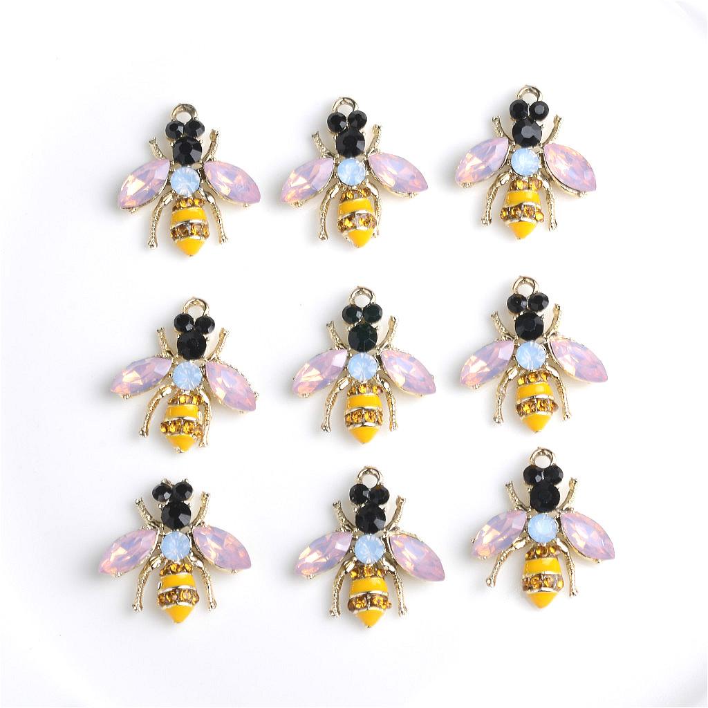 Cute and shiny rhinestone enamel bee shapes alloy charms crafts