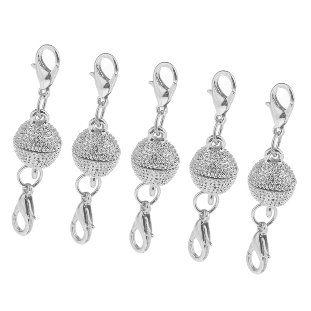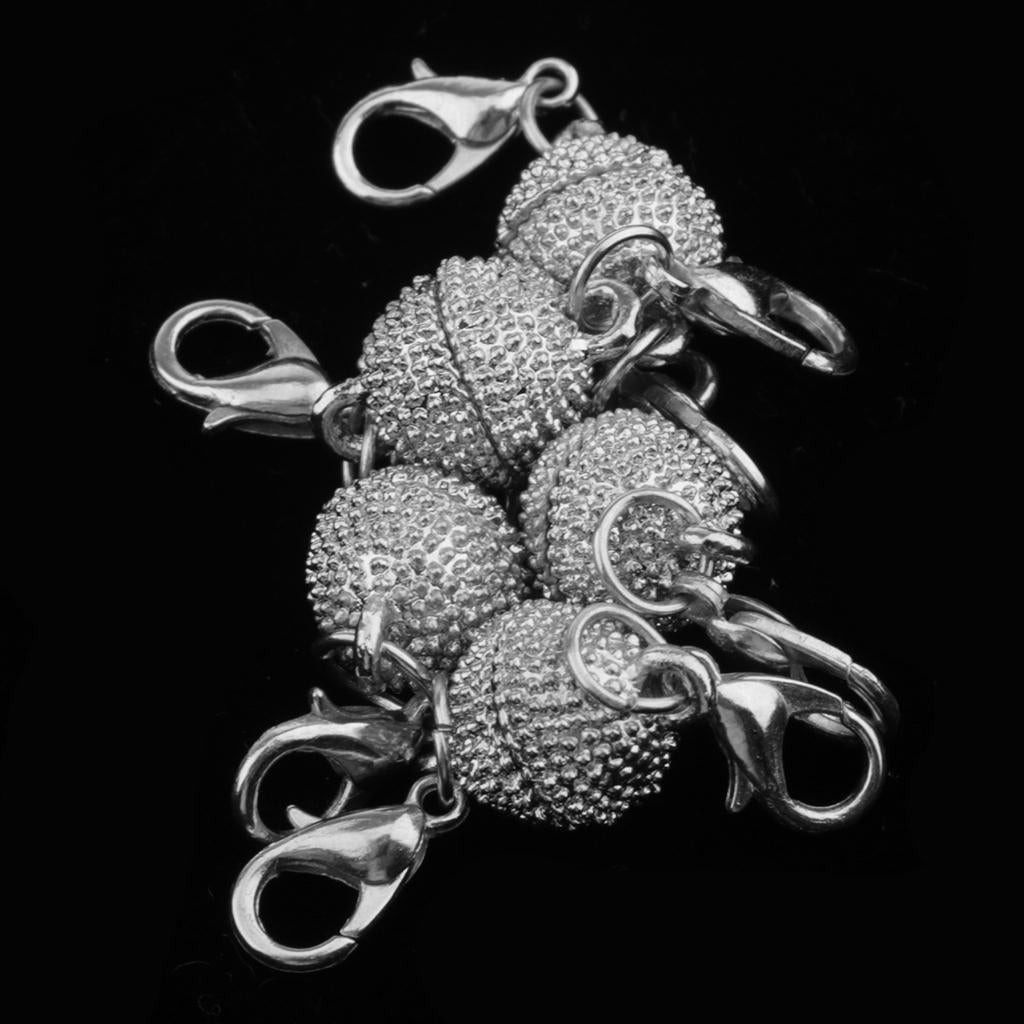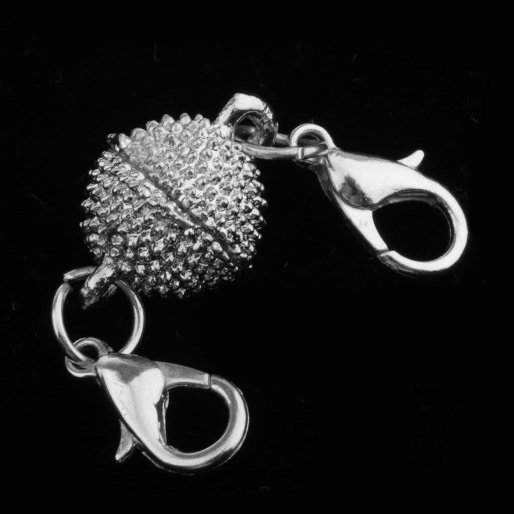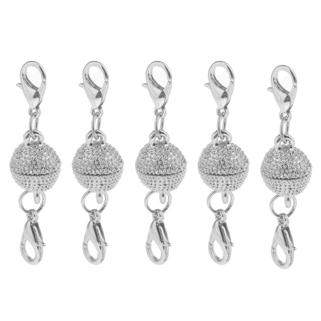 5 Pieces Round Ball Magnetic Clasps with Double Lobster Clasp Hook Silver