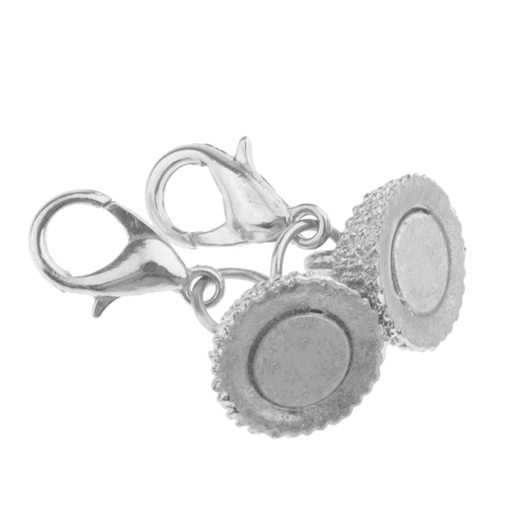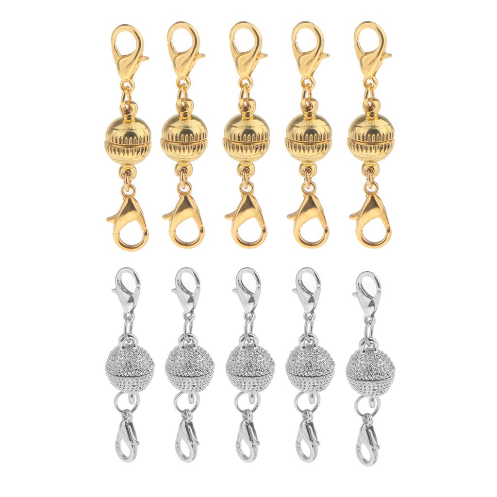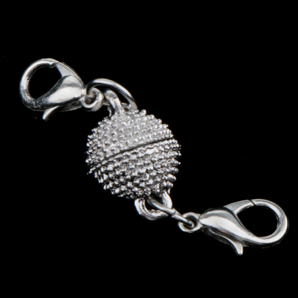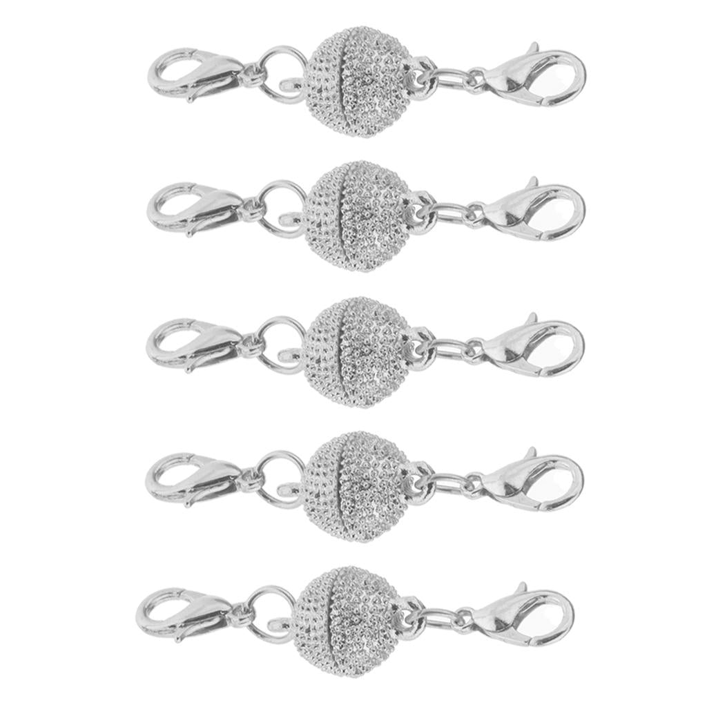 5 Pieces Round Ball Magnetic Clasps with Double Lobster Clasp Hook Silver
