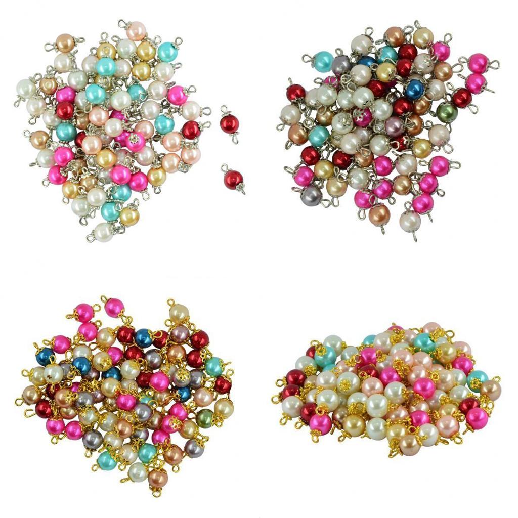 Colorful round glass pearl beads and daisy flower cap, handcrafted with eye pin, making it a ready to use dangle charms.