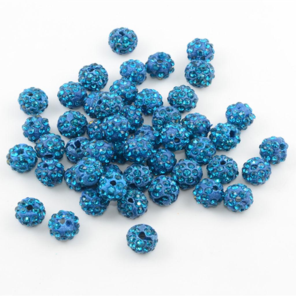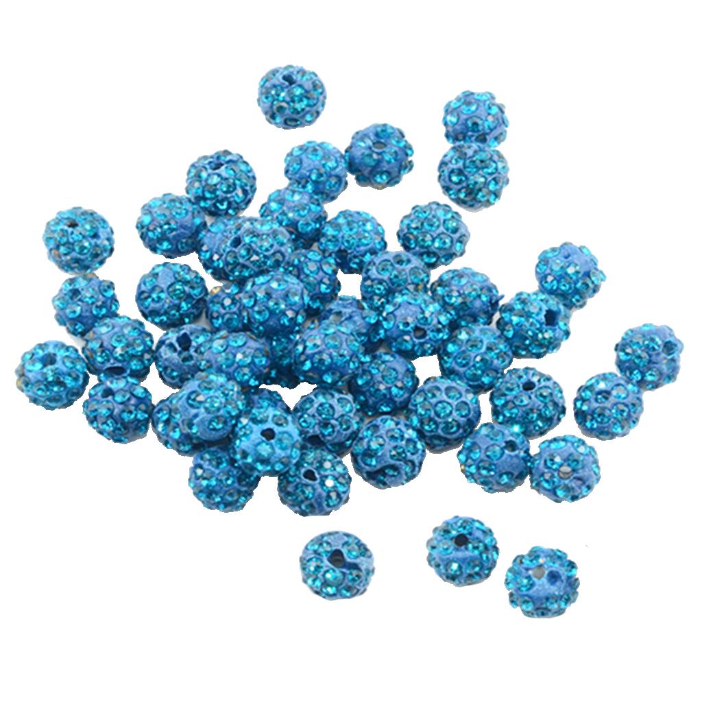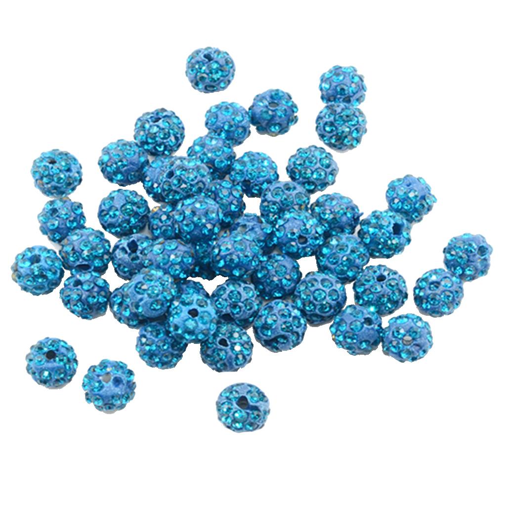 50 Piece Crystal Pave Clay Spacer Ball Beads for Jewelry Making Acid Blue