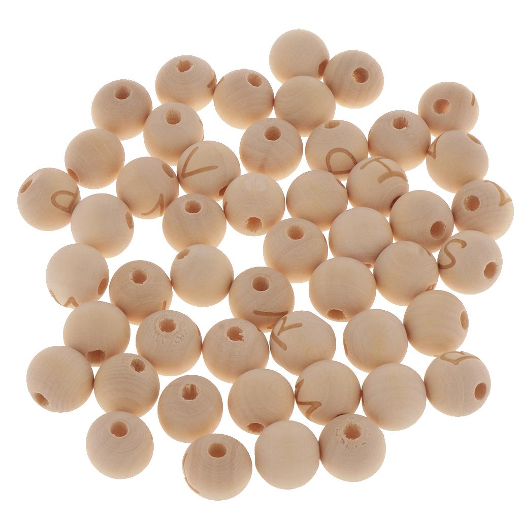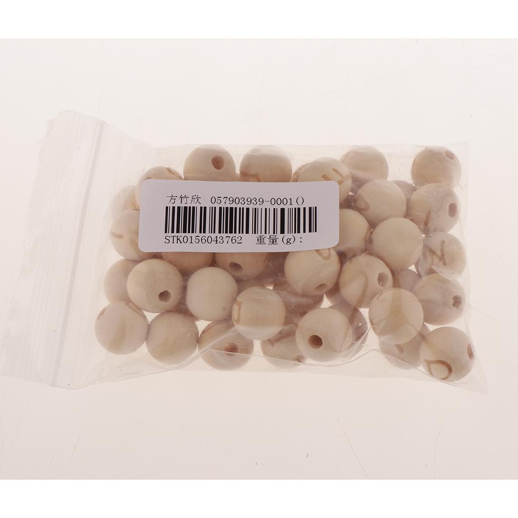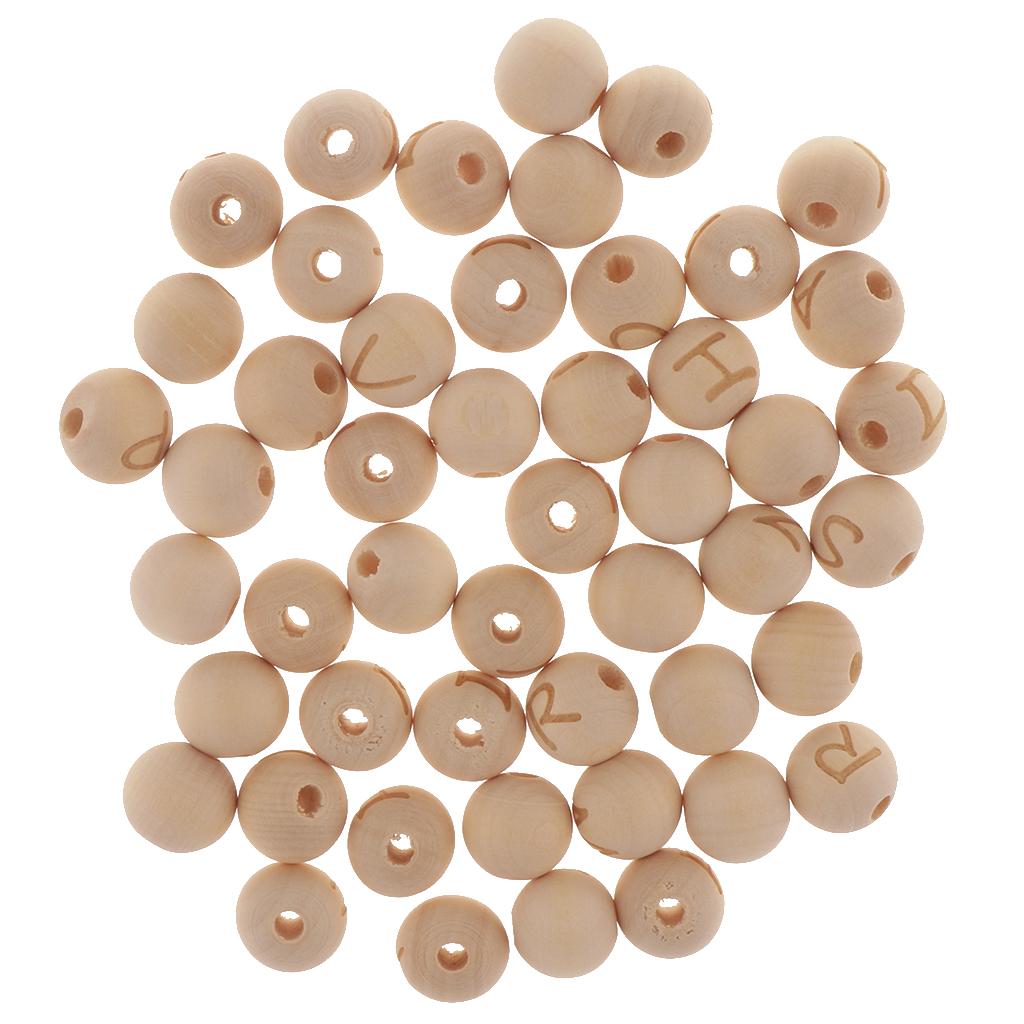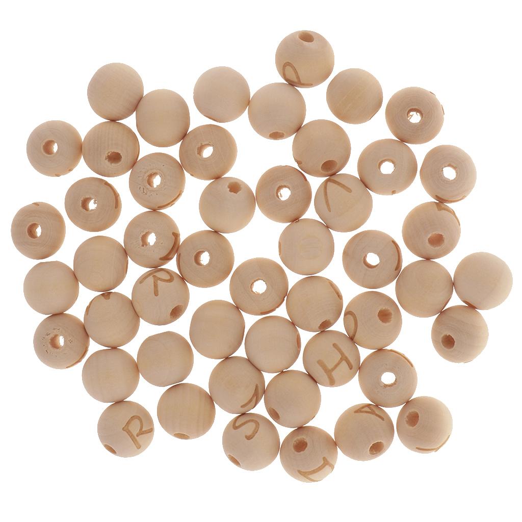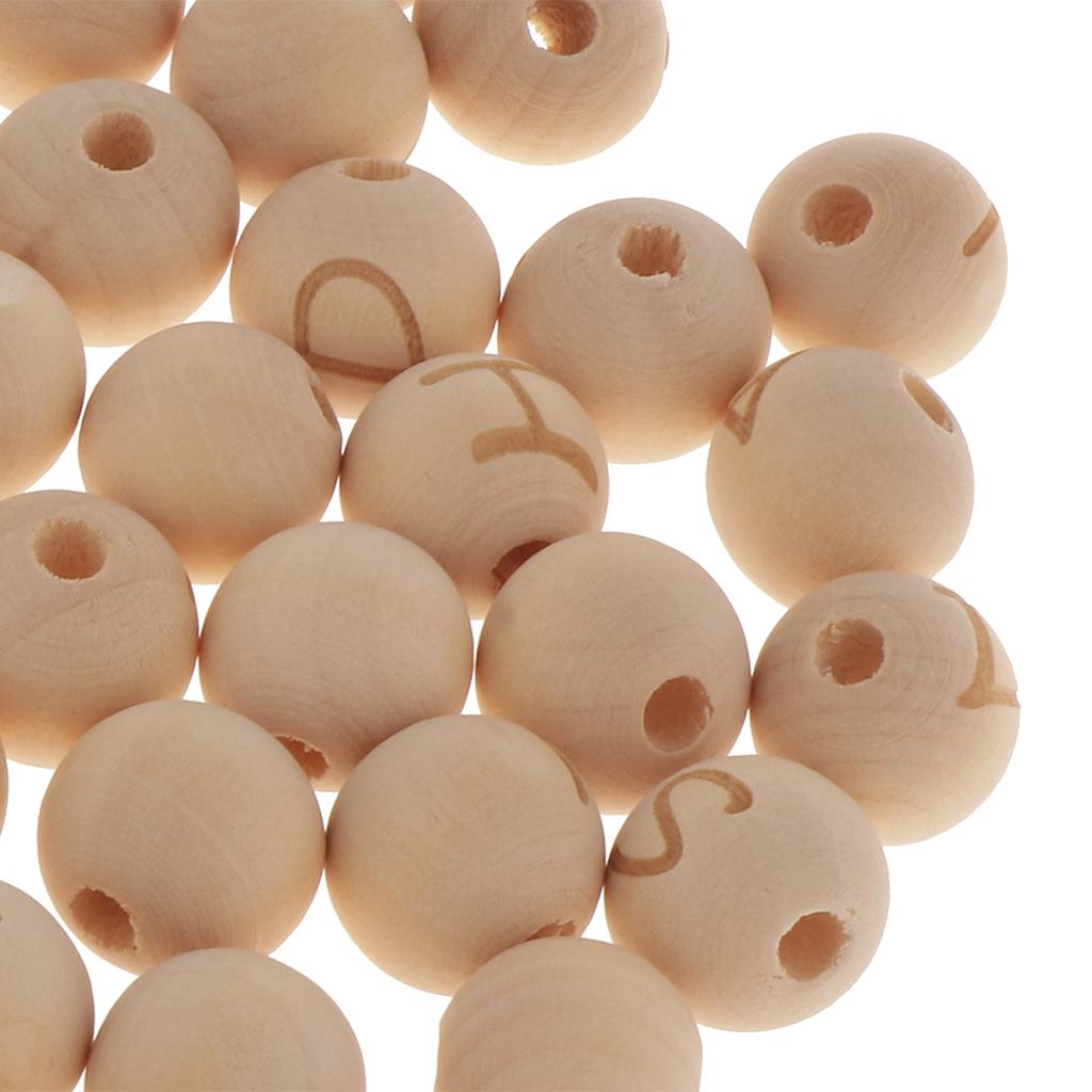 Unpainted natural wood round wood beads - with the alphabet letters printed on its intact sides, making it less dull.