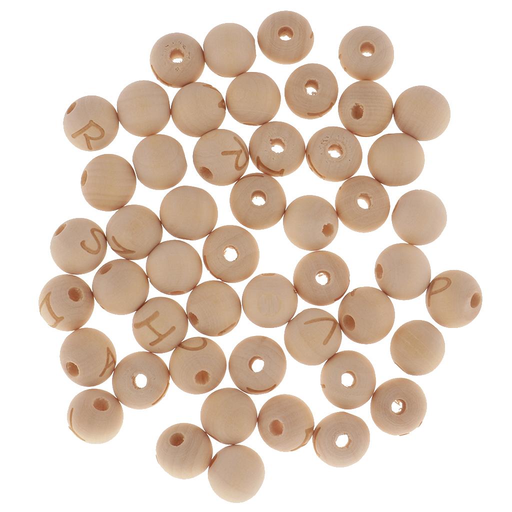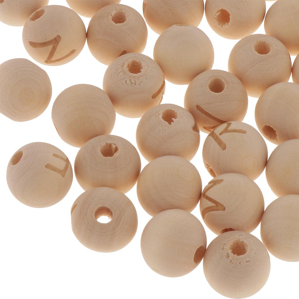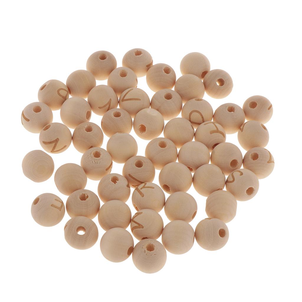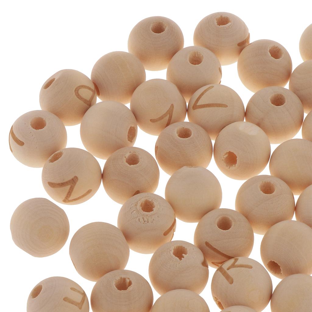 Unpainted natural wood round wood beads - with the alphabet letters printed on its intact sides, making it less dull.