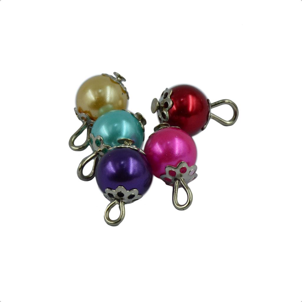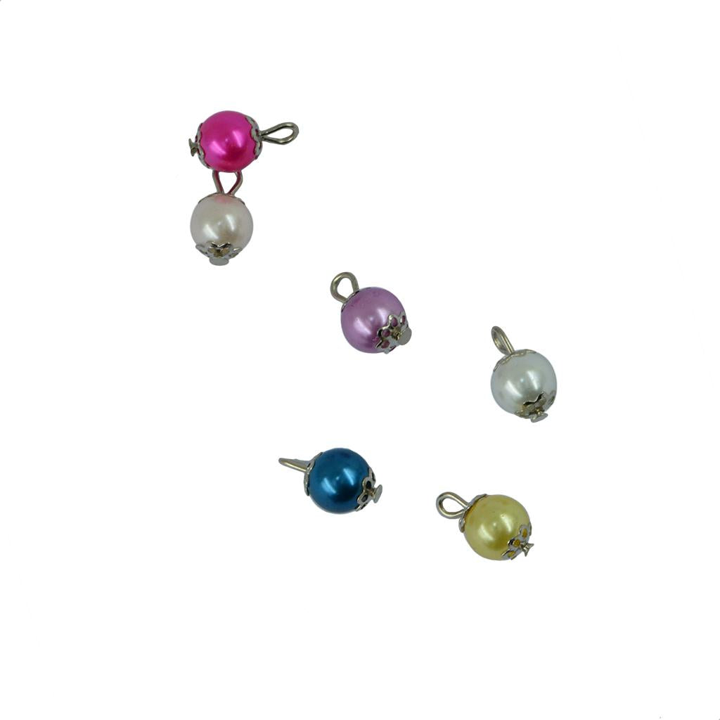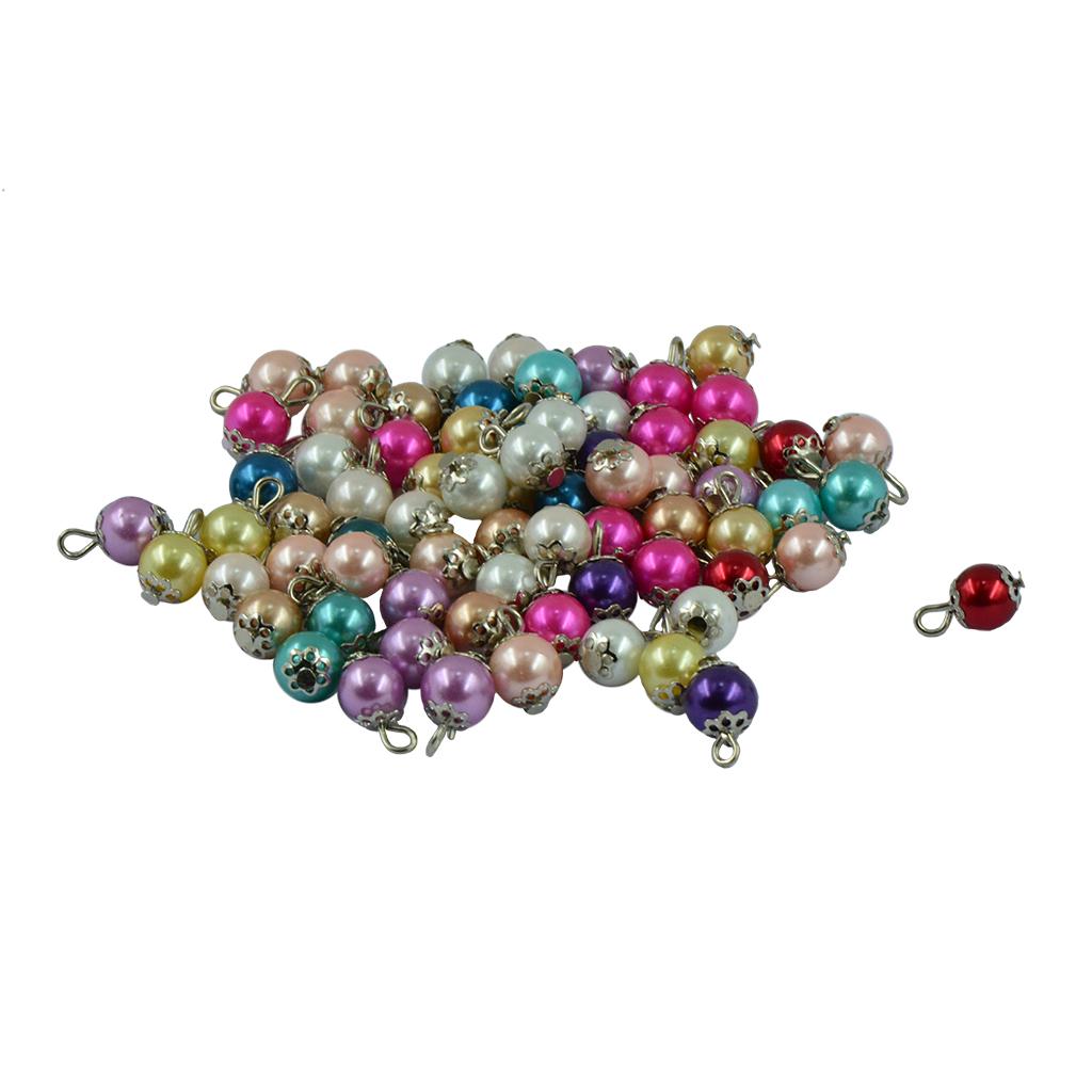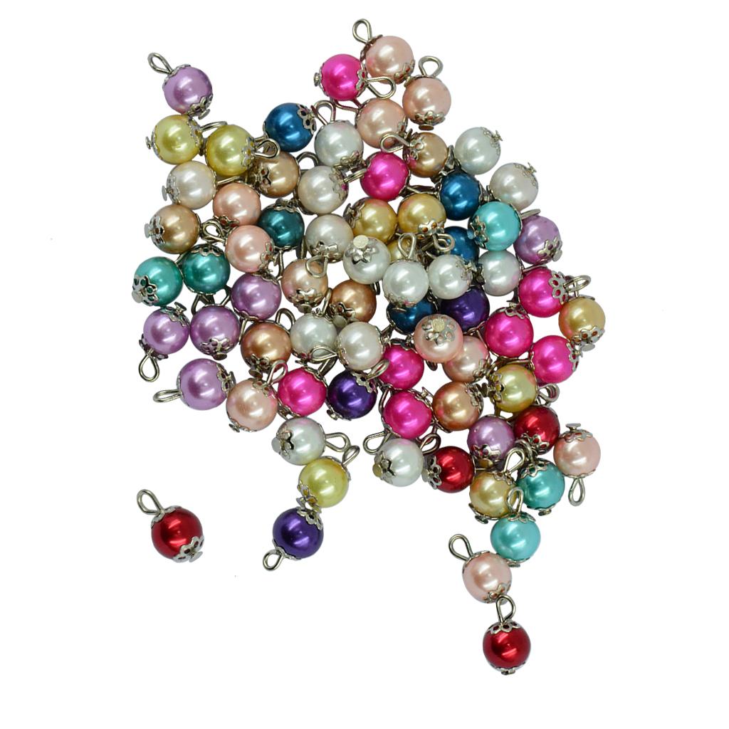 Colorful round glass pearl beads and daisy flower cap, handcrafted with flat head pin, making it a ready to use dangle charms.