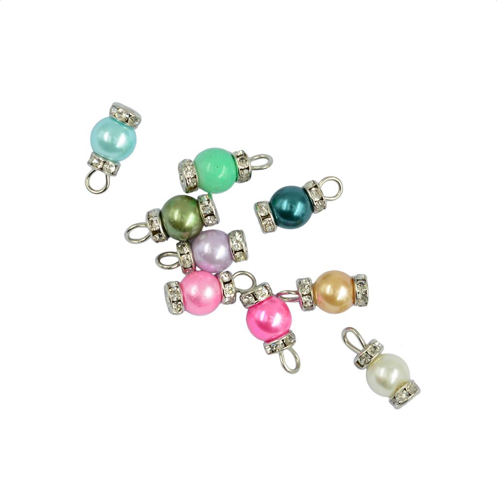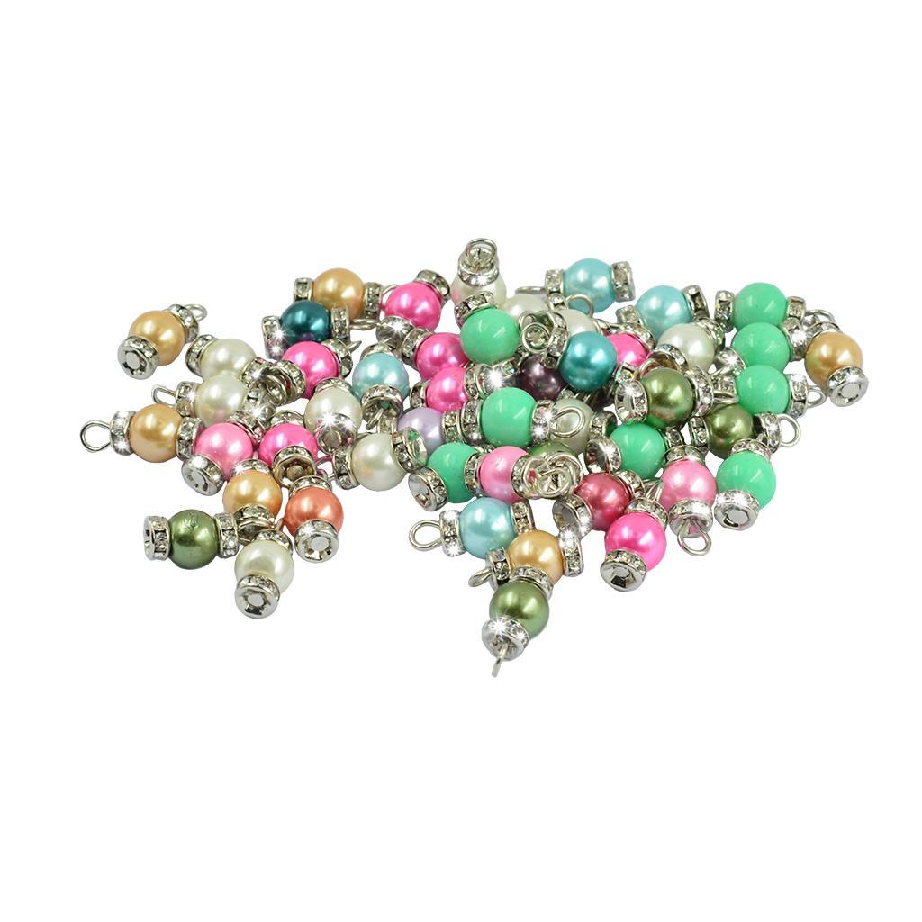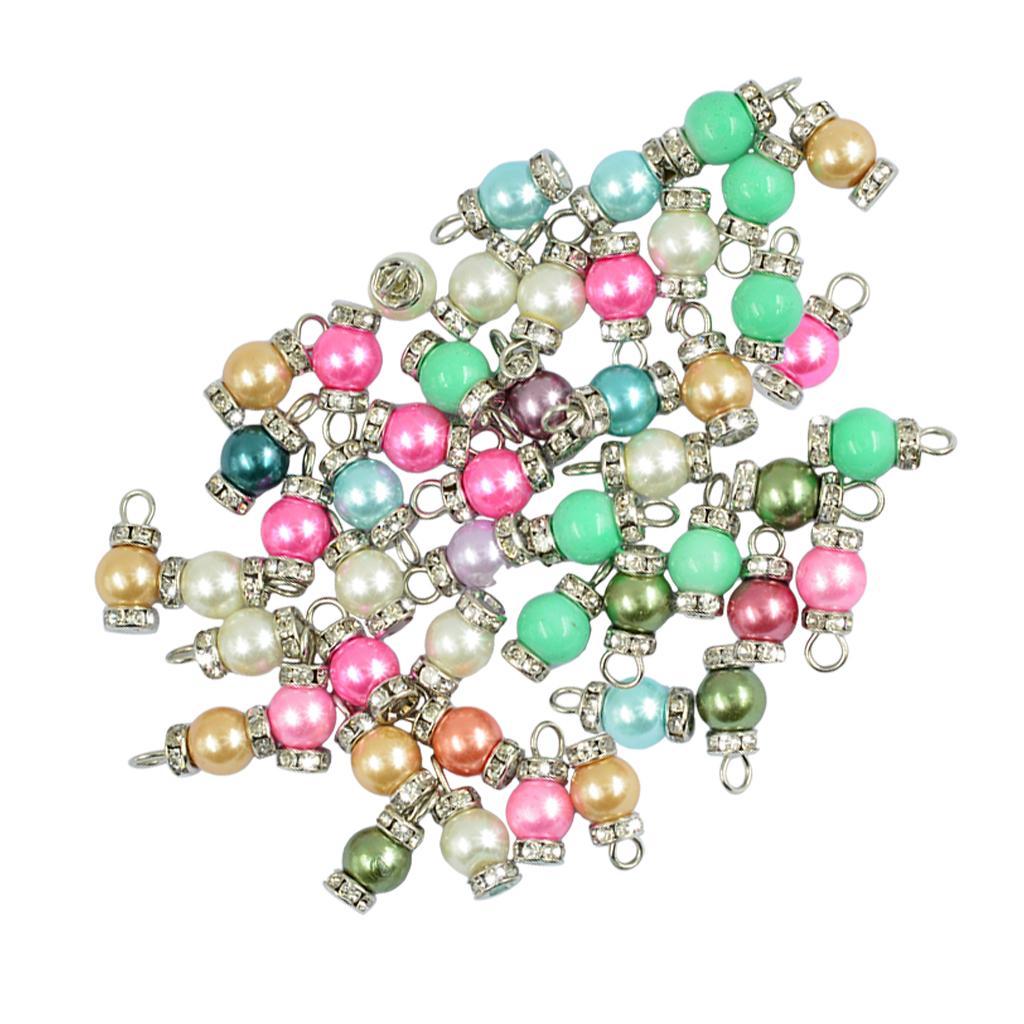 Colorful round glass pearl beads and Rondelle rhinestone spacer beads handcrafted with flat head pin, making it a ready to use dangle charms