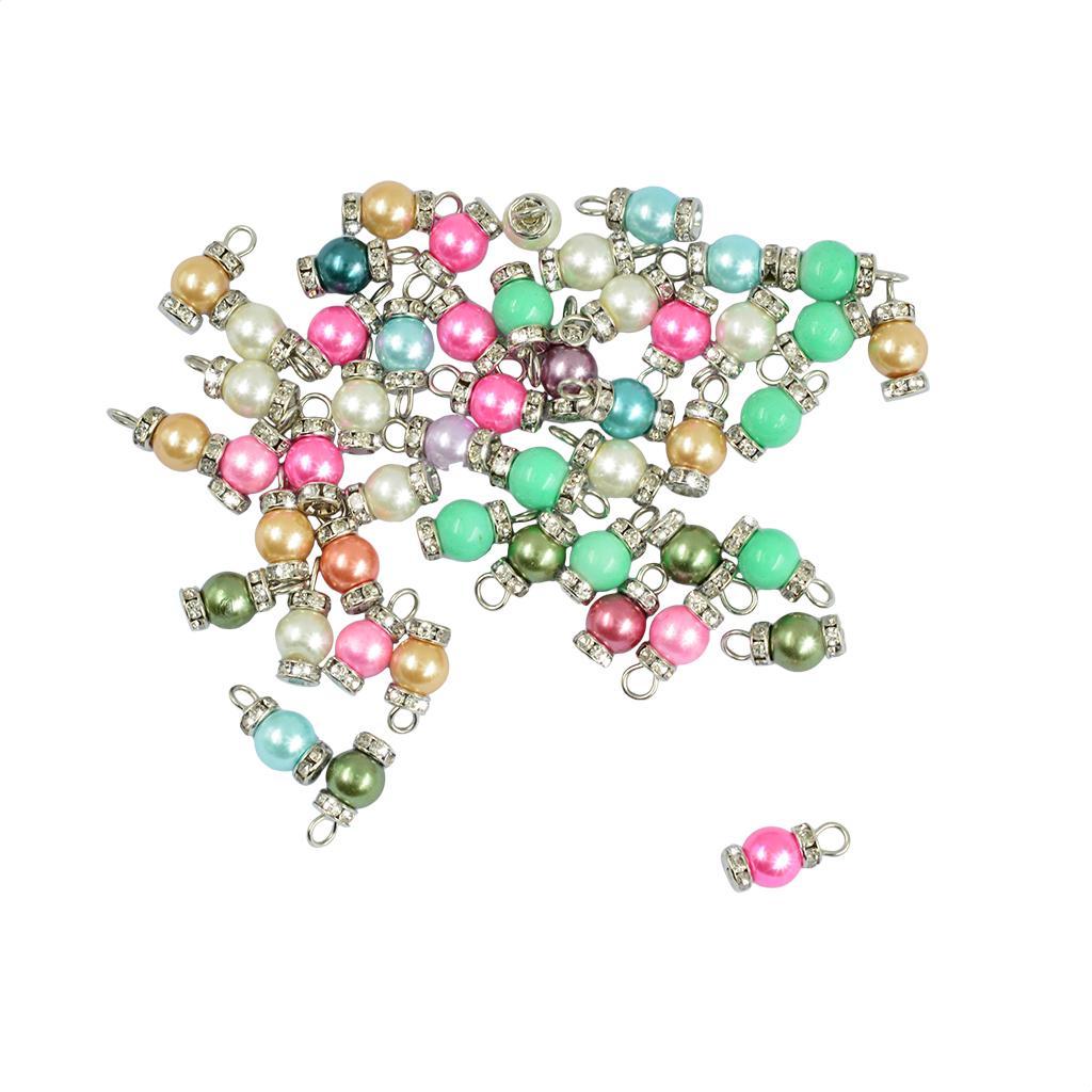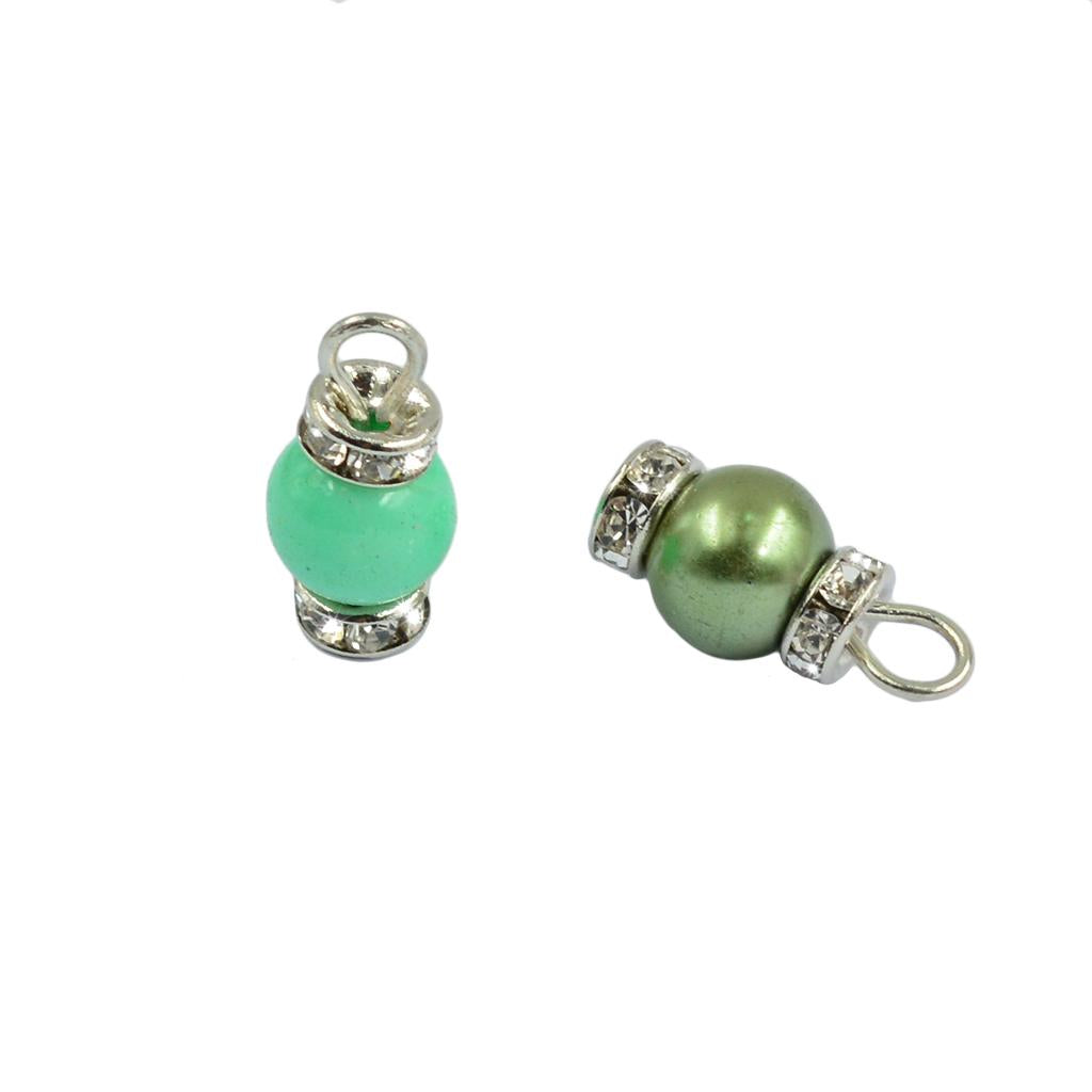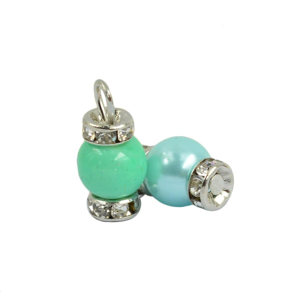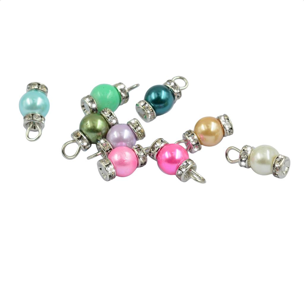 Colorful round glass pearl beads and Rondelle rhinestone spacer beads handcrafted with flat head pin, making it a ready to use dangle charms