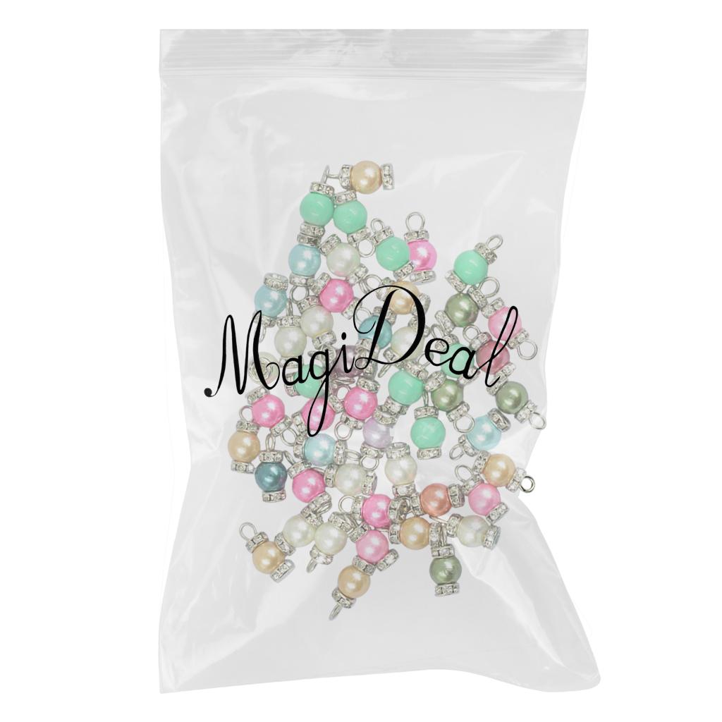 50 Pieces Glass Pearl Flat Pin Sapcer Beads Charms Jewelry DIY Making Silver
