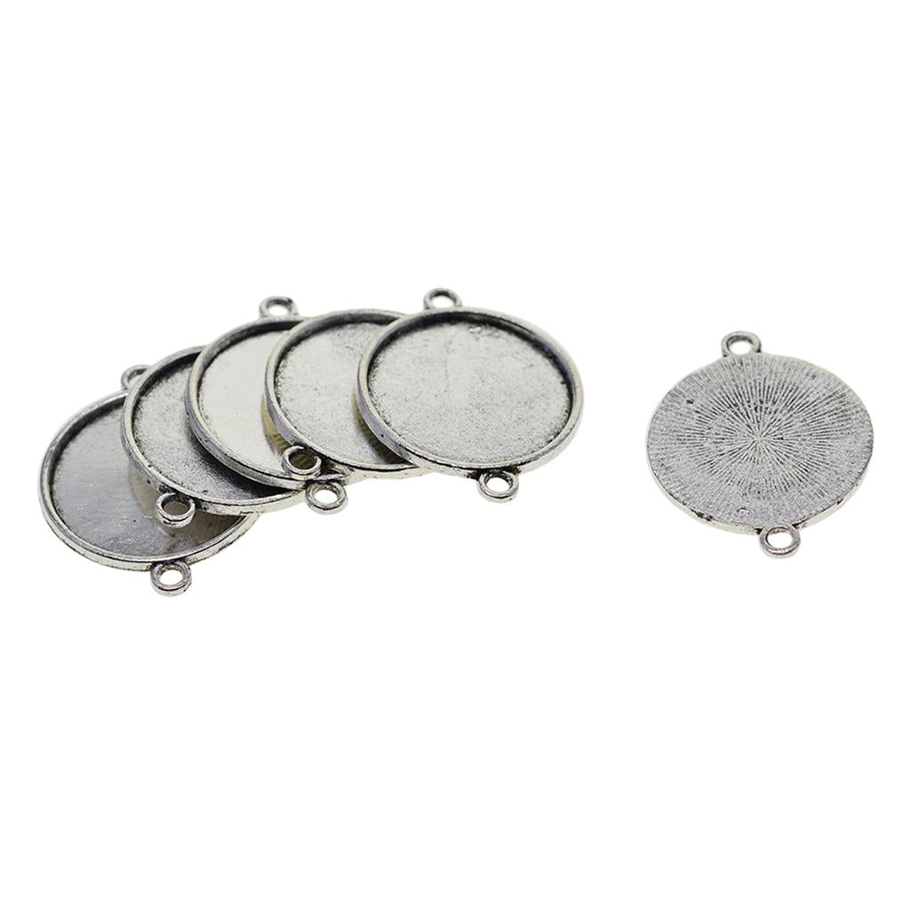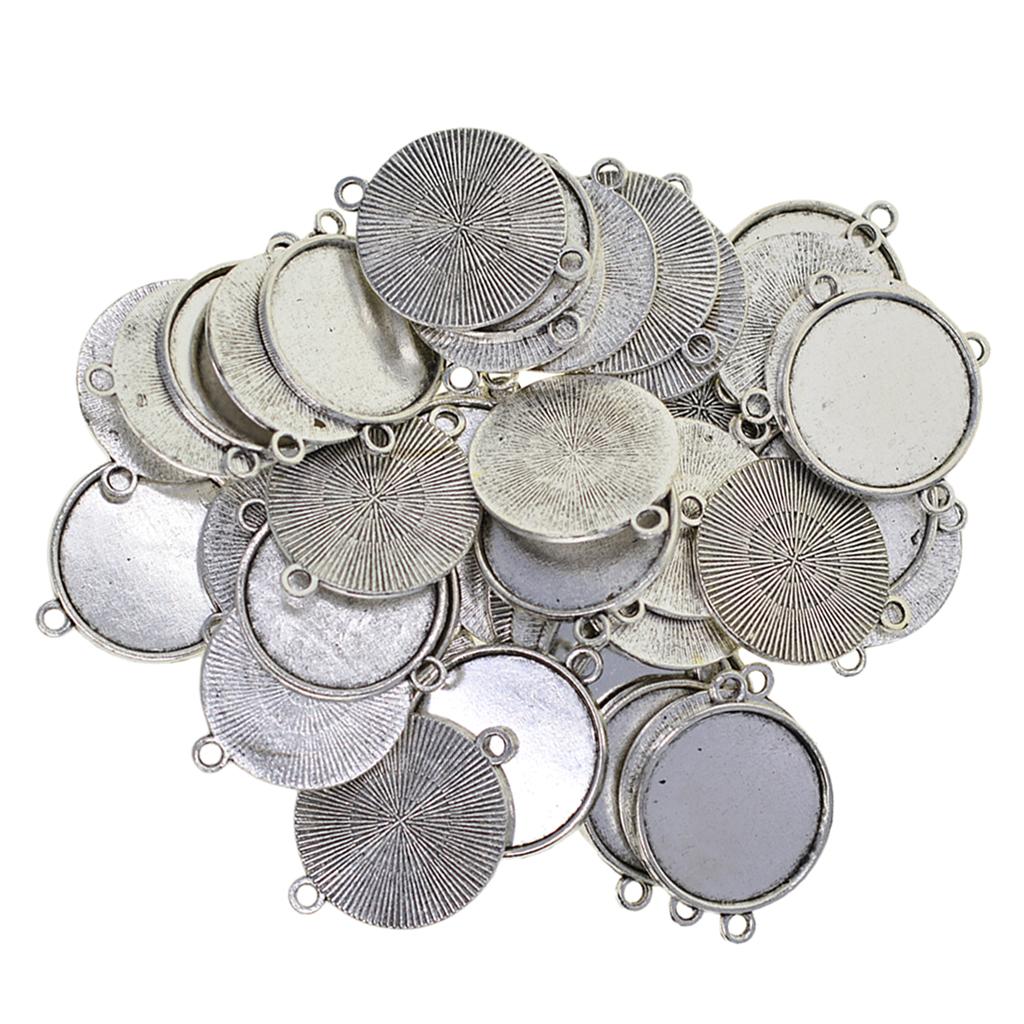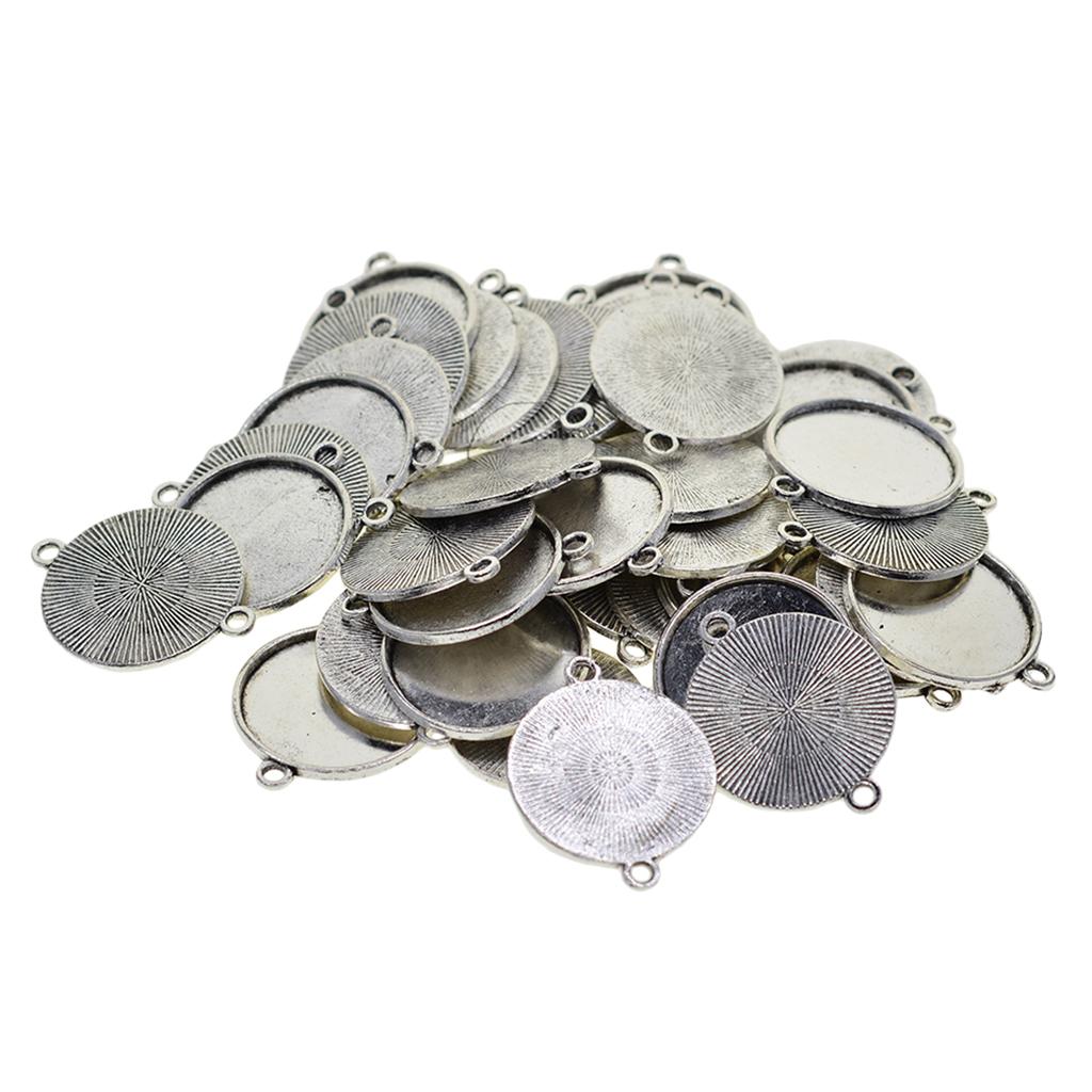 50 Pieces Tibetan Silver Bezel Pendant Trays Double Loops Round Cabochon Settings Trays Pendant Blanks DIY Jewelry Making Findings 25mm Bezel