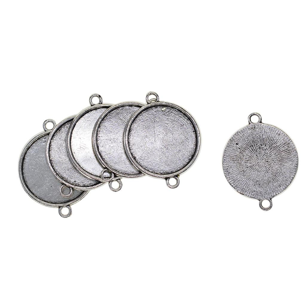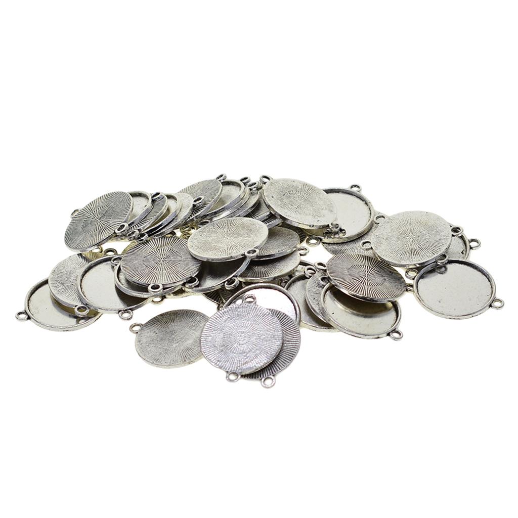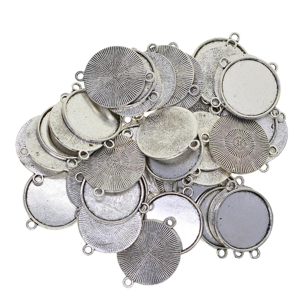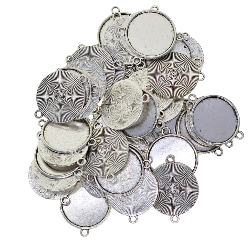 50 Pieces Tibetan Silver Bezel Pendant Trays Double Loops Round Cabochon Settings Trays Pendant Blanks DIY Jewelry Making Findings 25mm Bezel
