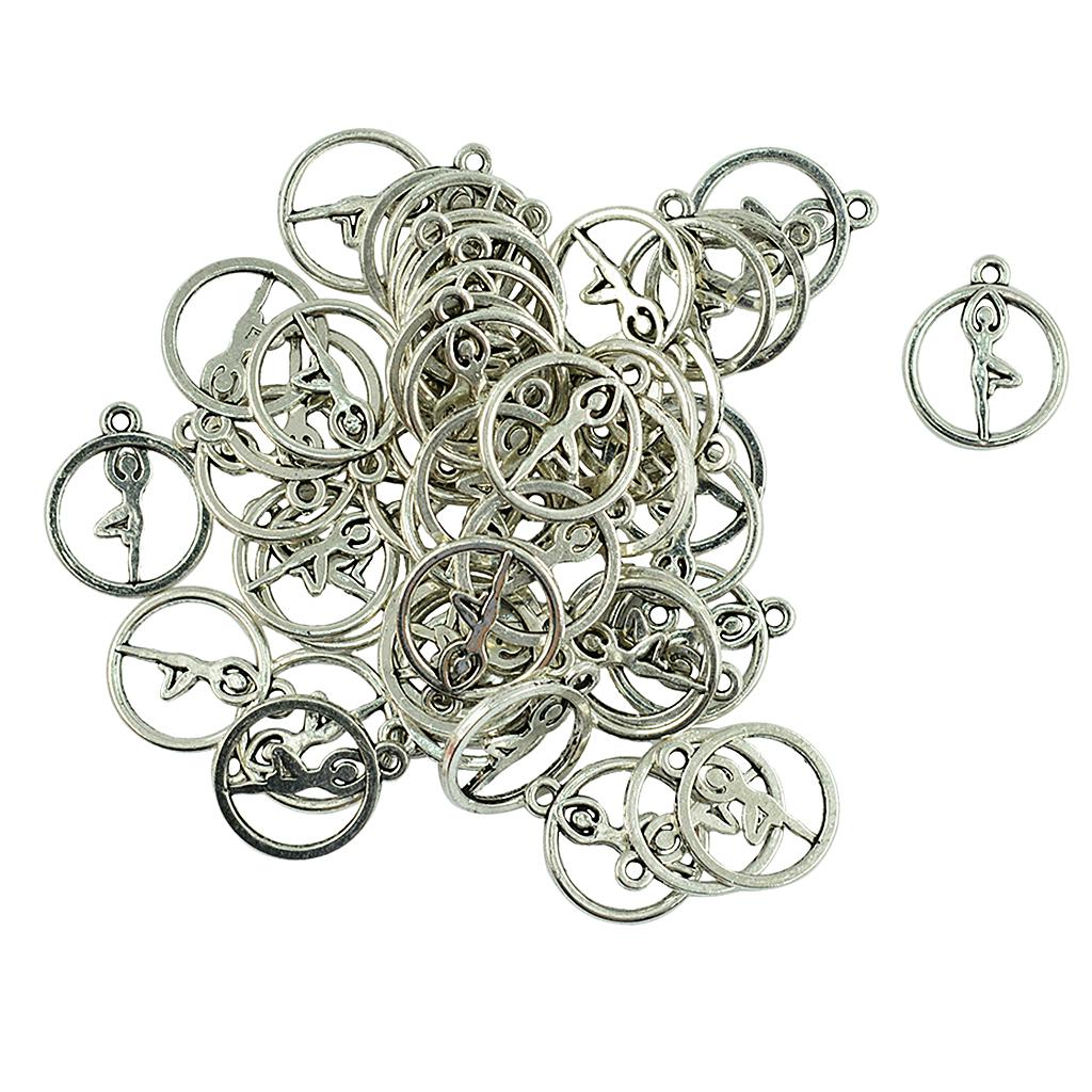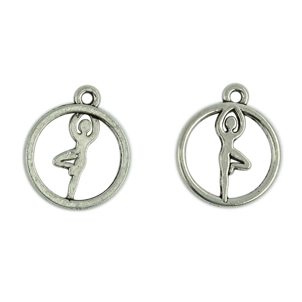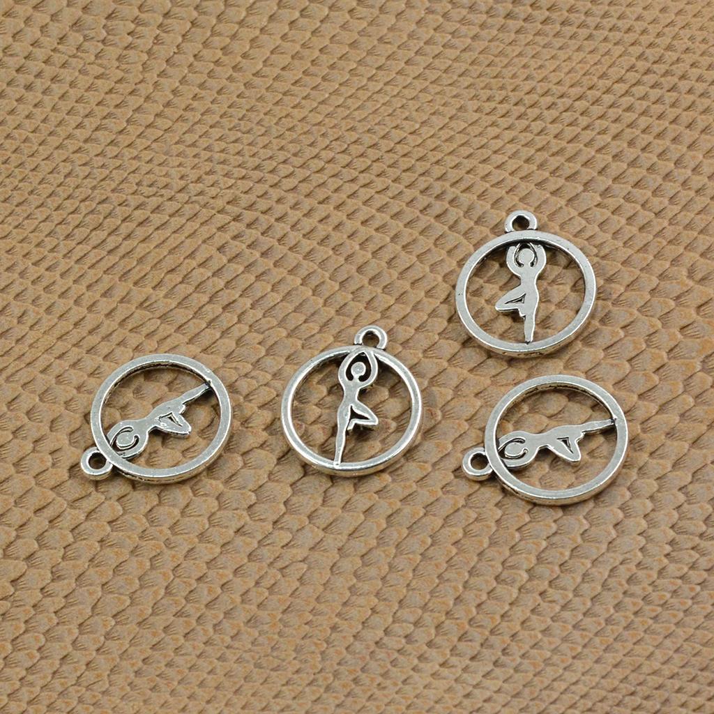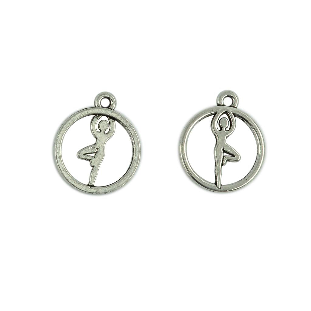 50 Pieces Tibetan Silver Filigree Round Hollow out Yoga tree Pose Charms Pendants