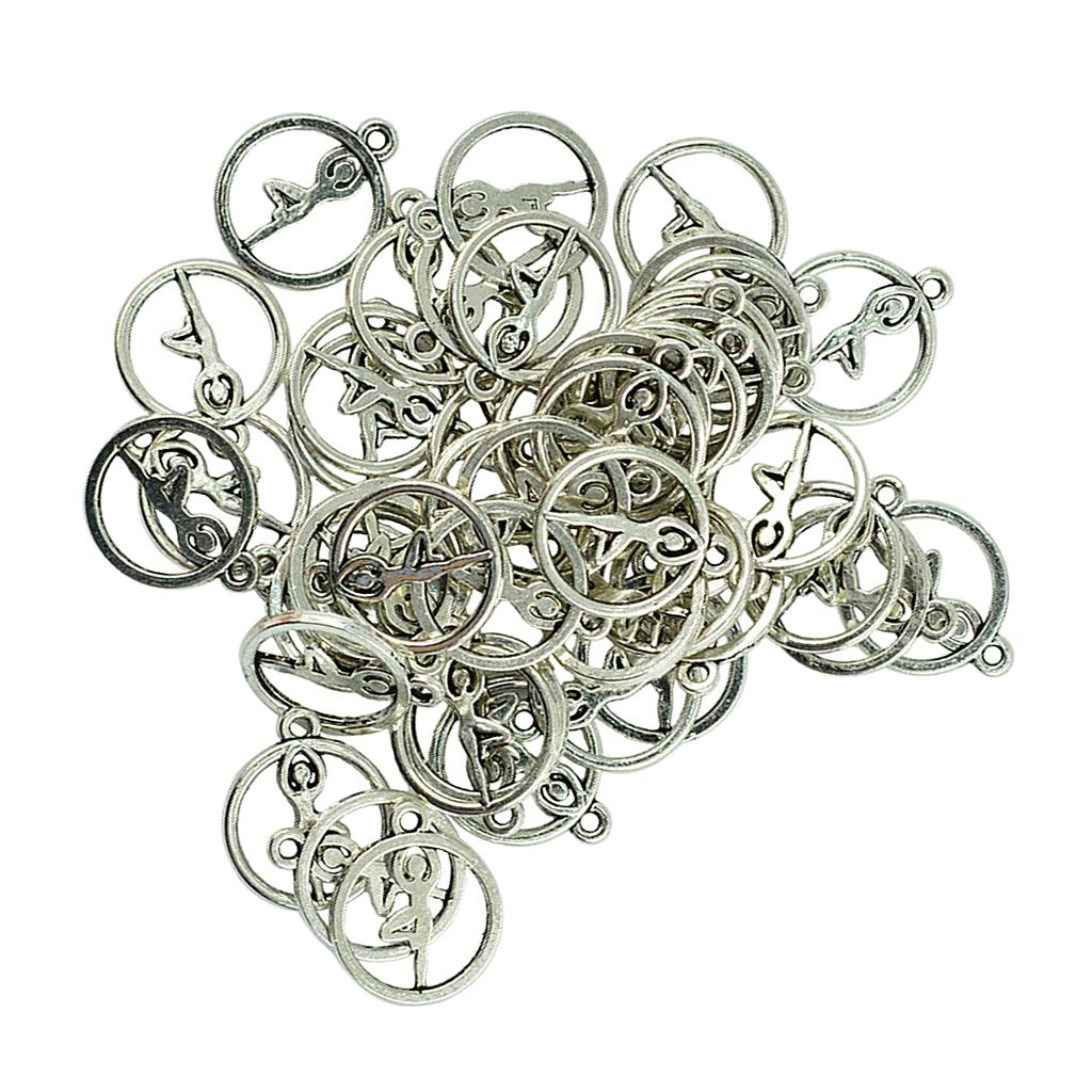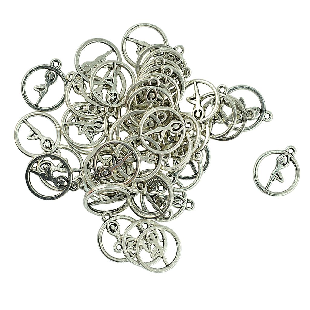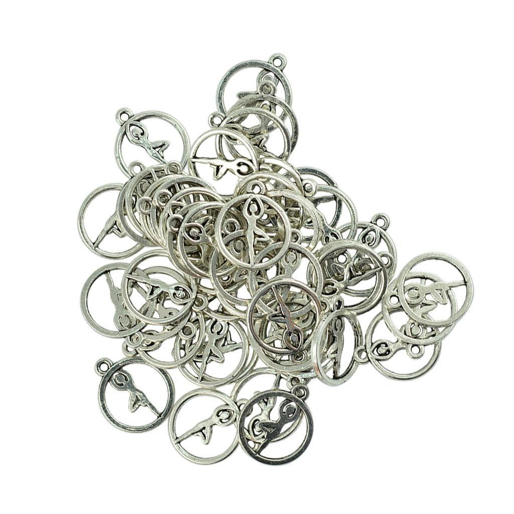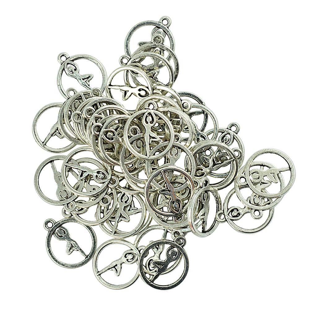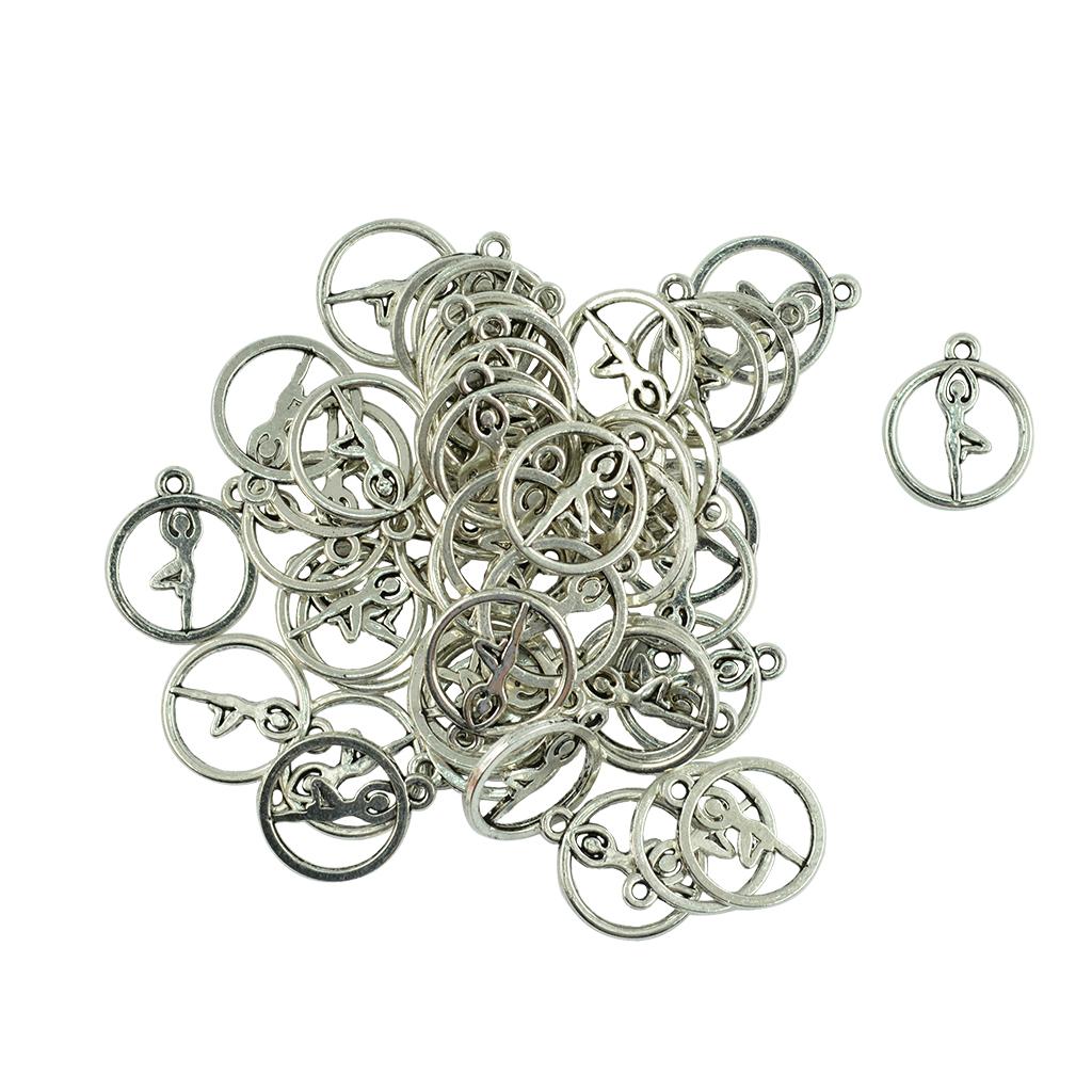 50 Pieces Tibetan Silver Filigree Round Hollow out Yoga tree Pose Charms Pendants