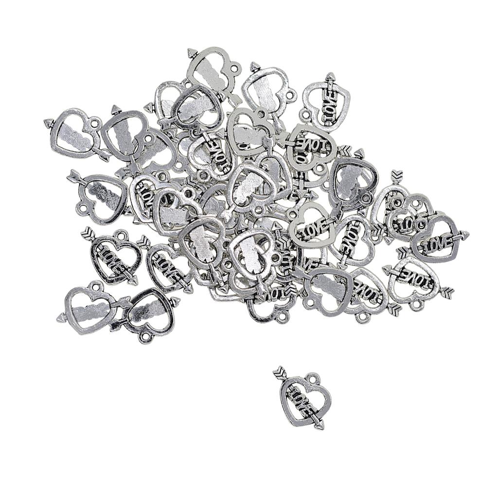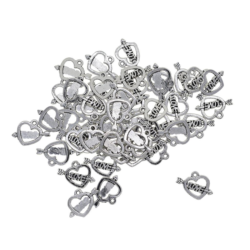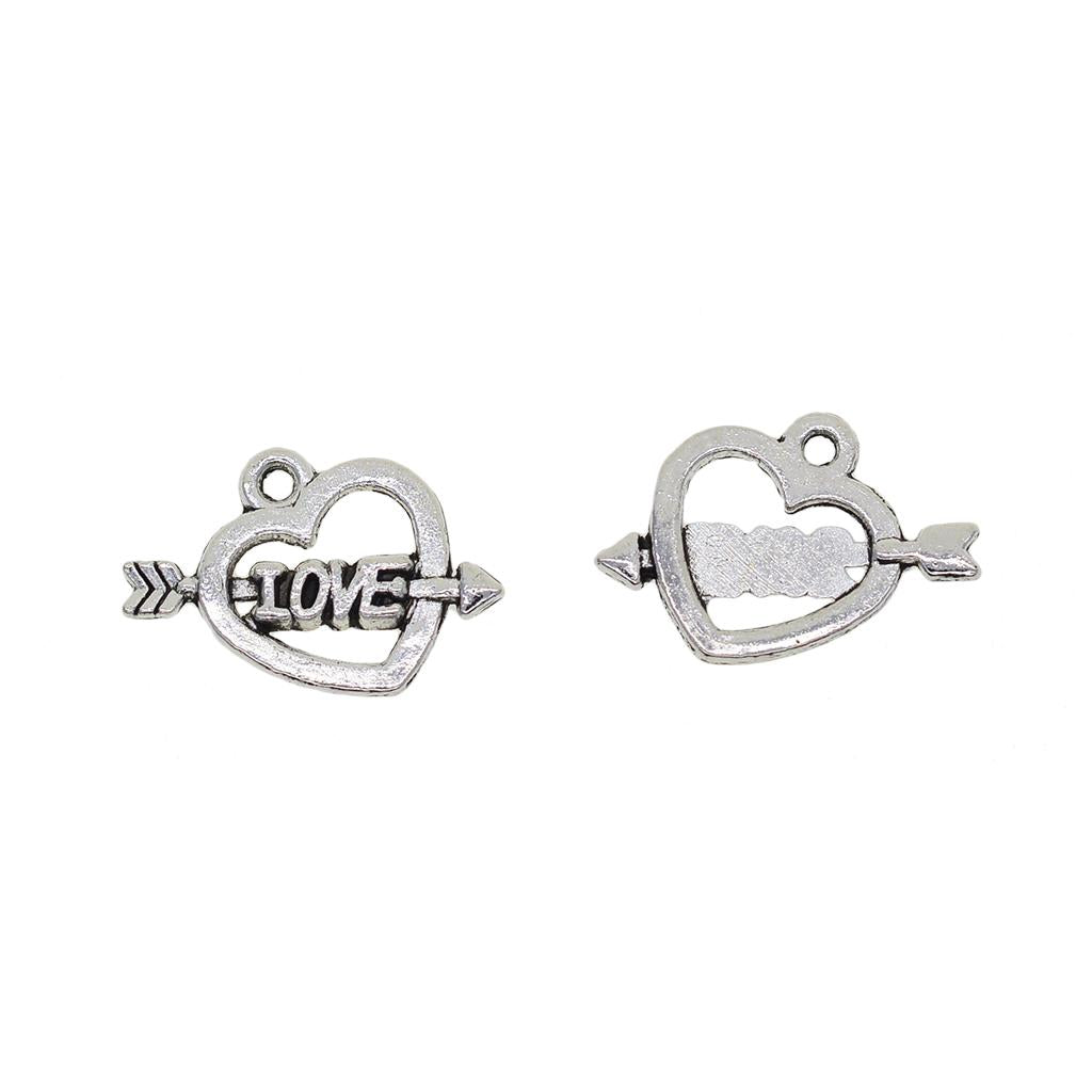 50 Pieces Heart Love Arrow Charm Pendants