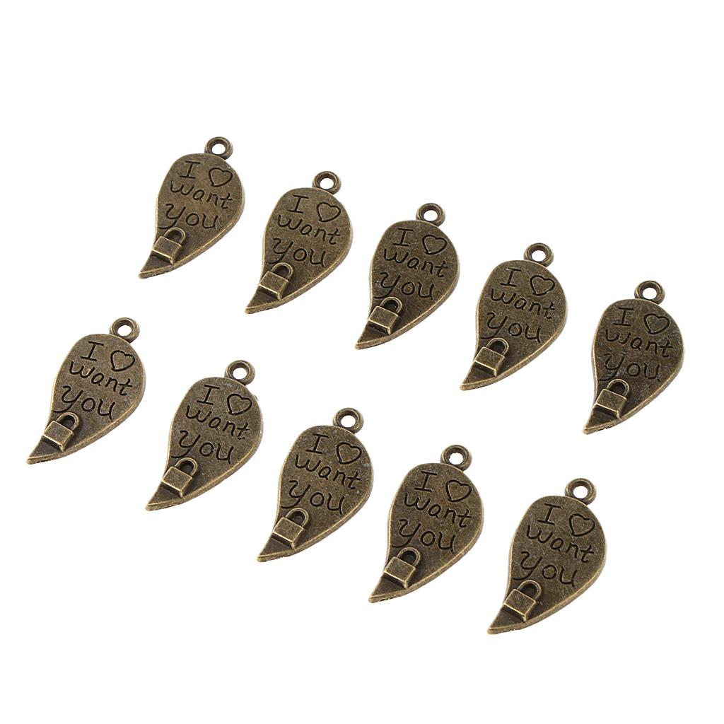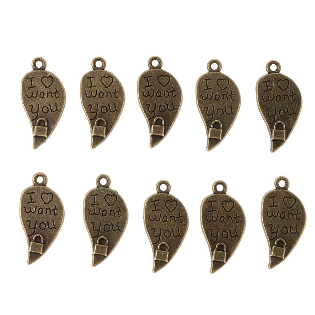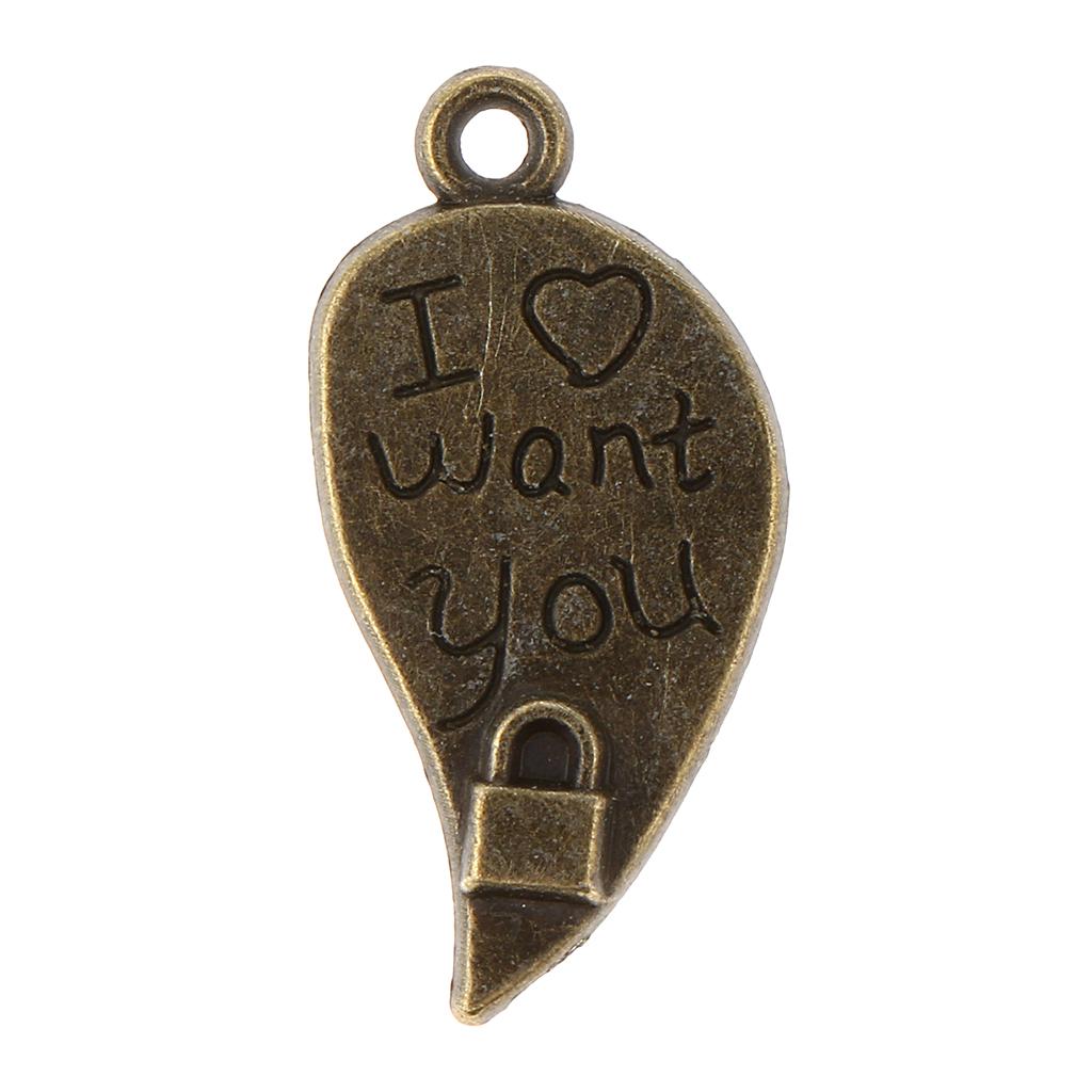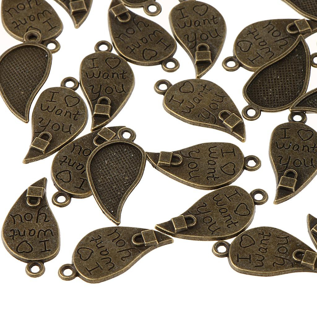 Antique vintage Bronze Alloy lock key engraved on half heart shaped charm pendant with blank bezel setting for Jewelry DIY Making