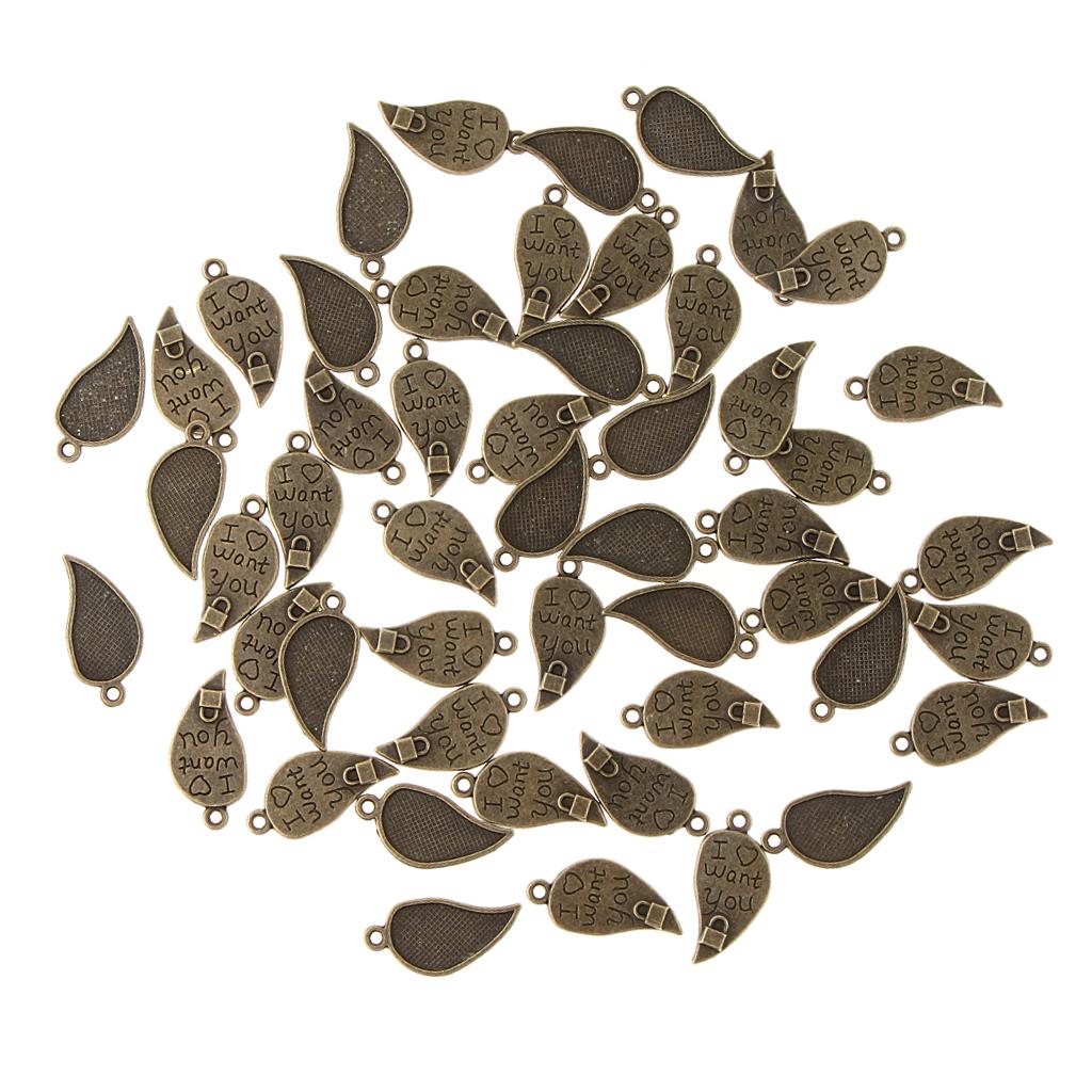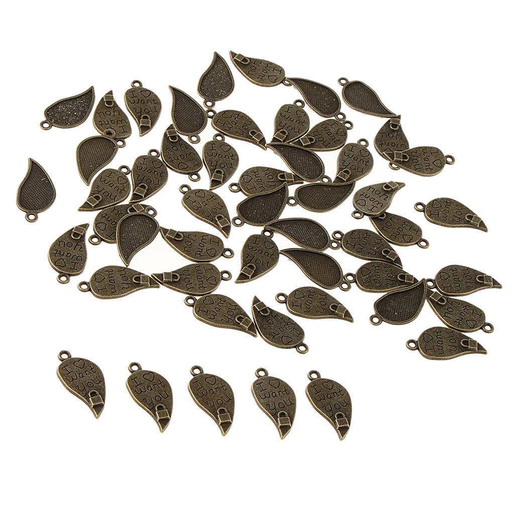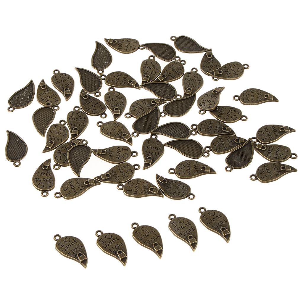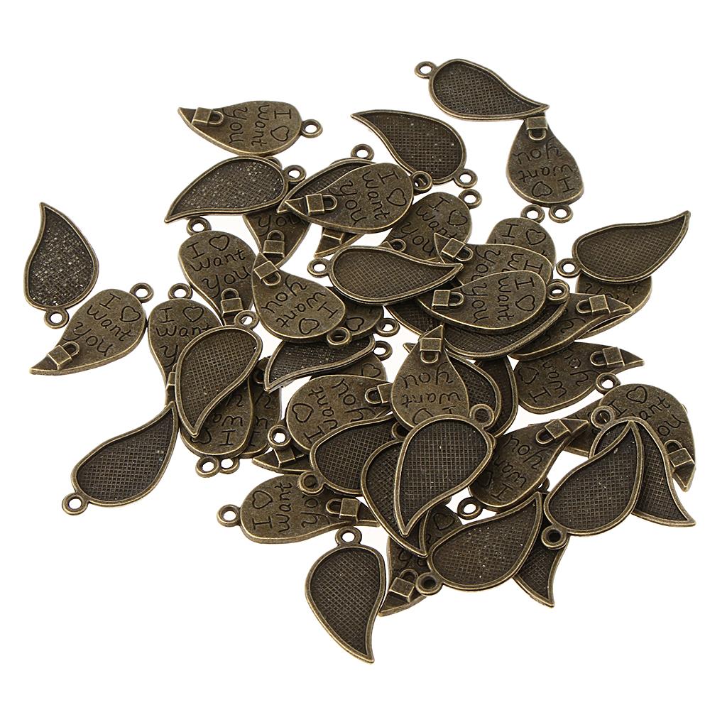 Antique vintage Bronze Alloy lock key engraved on half heart shaped charm pendant with blank bezel setting for Jewelry DIY Making