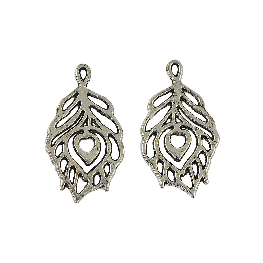 50 Tibetan Silver Filigree Hollow Leaf Heart Charms Pendant Jewelry Gift DIY