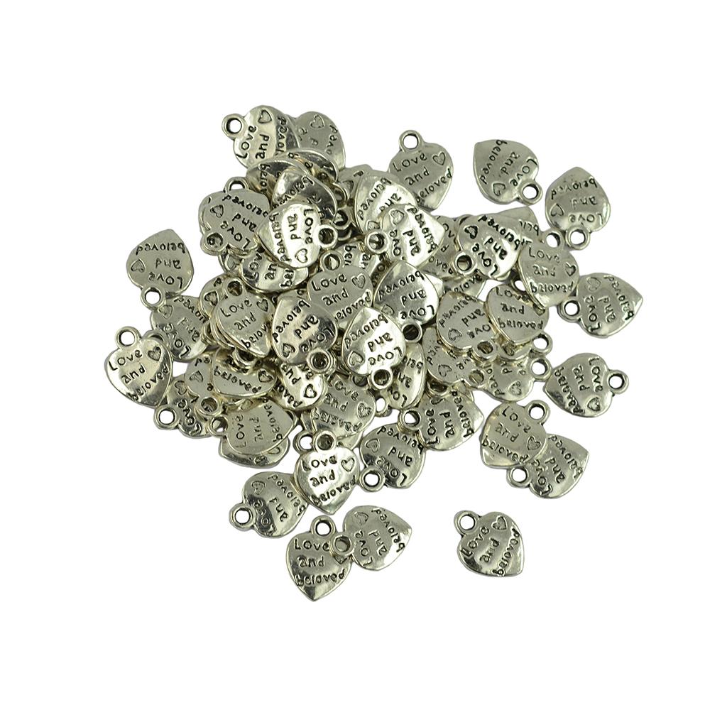 50 Tibetan Silver love and Beloved Heart Charms Pendants for Jewelry Making
