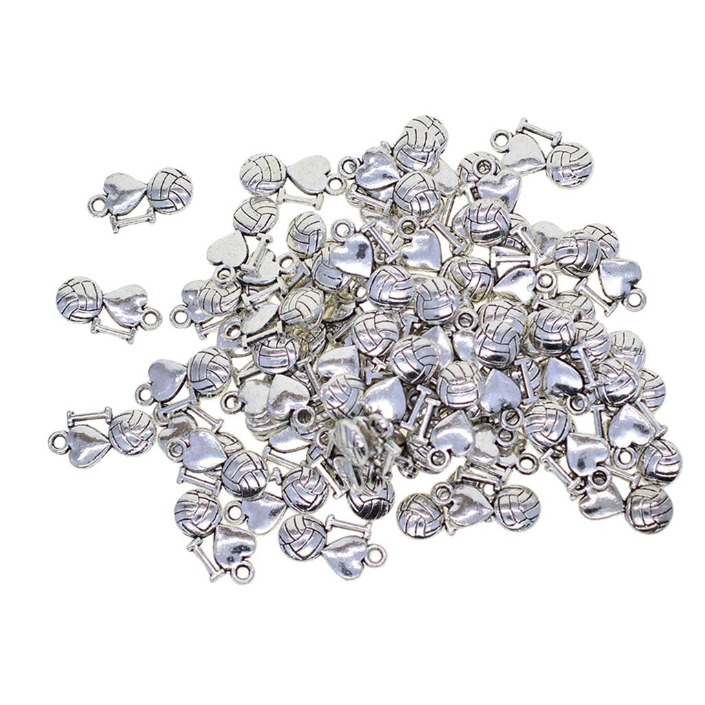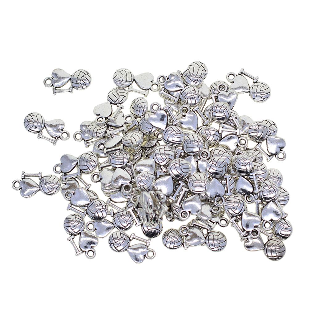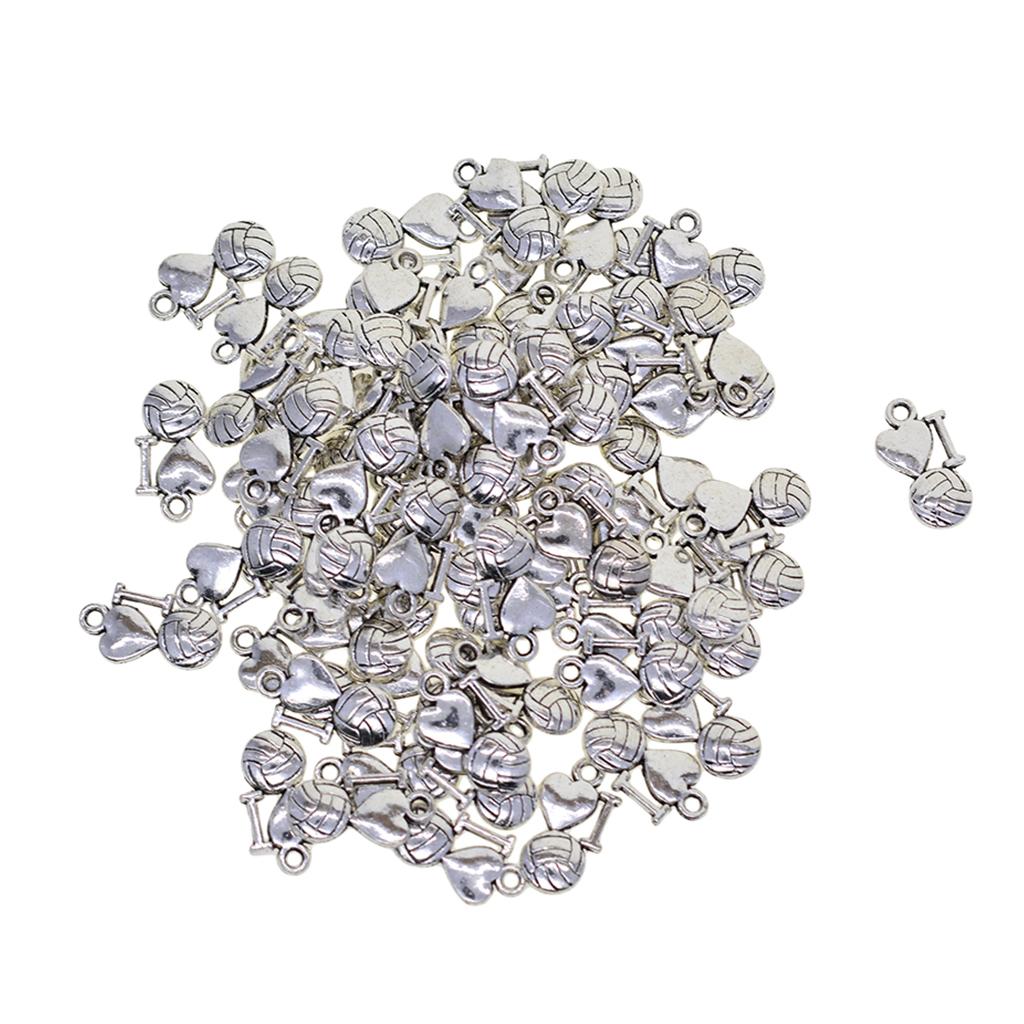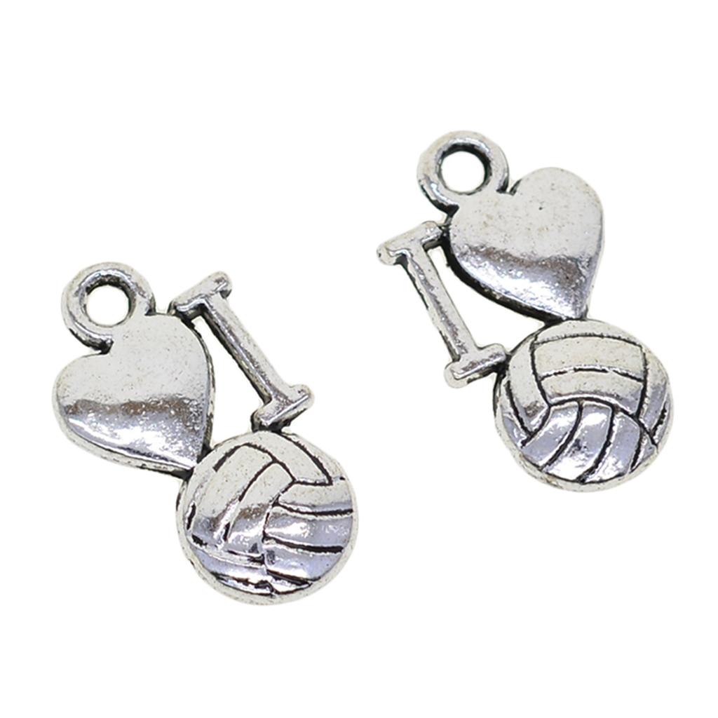 Antique vintage Tibetan Silver Alloy heart with I love volleyball Jewelry DIY Making charms pendant