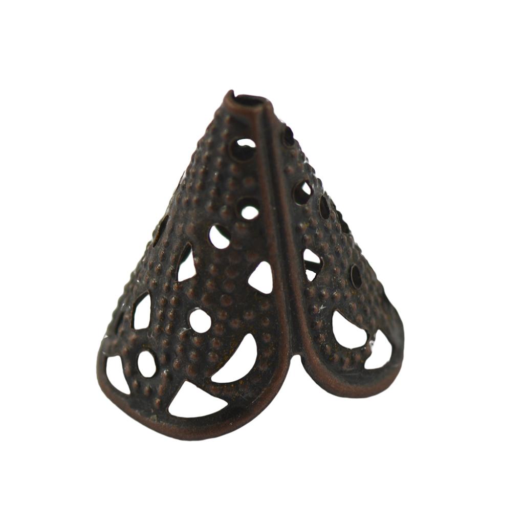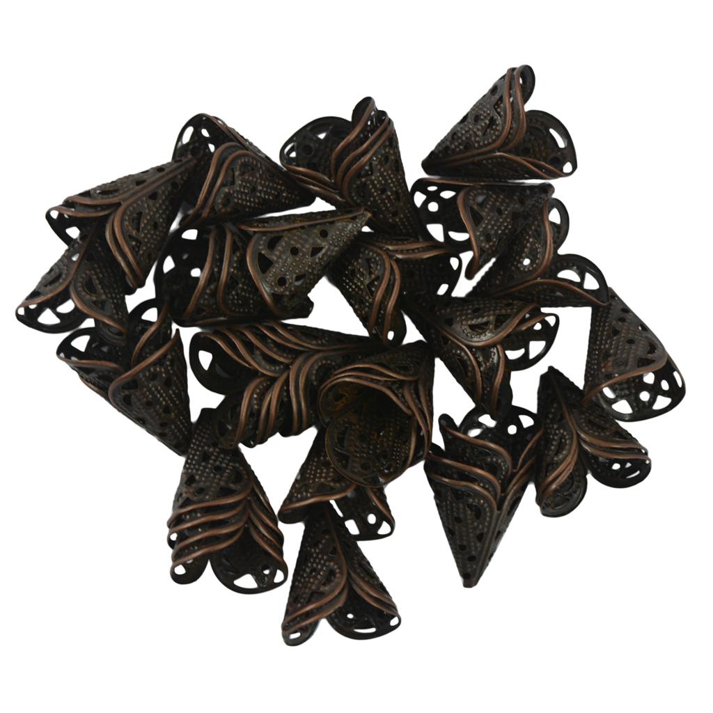 50Pcs 16mm Filigree Hollow Cone Flower Bead Cap DIY Makings Vintage Copper