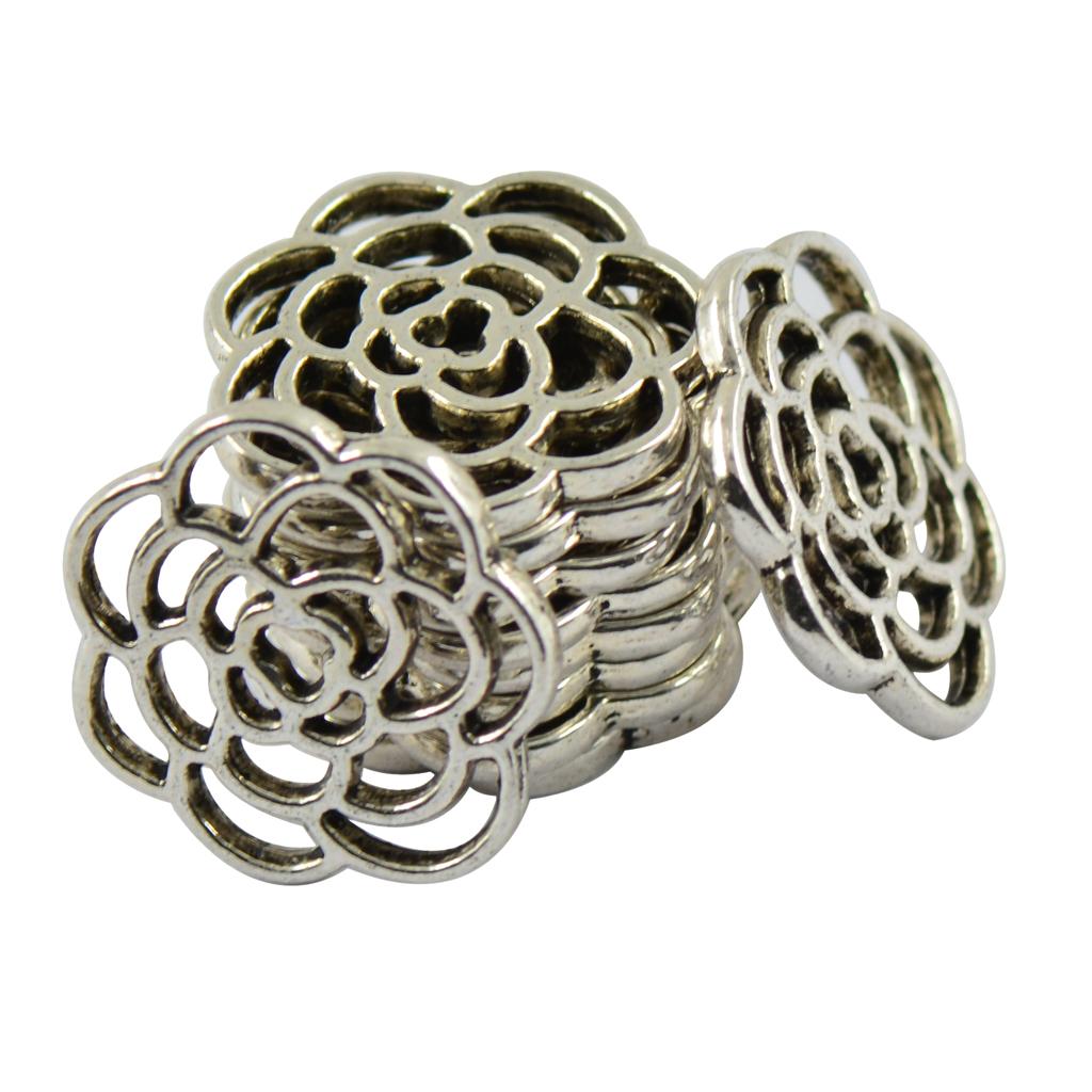 Antique Tibet Silver Alloy Flat Hollowed out Rose Charms Pendant Connector for DIY Jewelry Accessory Making.Great DIY accessories for necklaces, bracelets, earrings and other fashion accessories making to give your designs a professional touch.