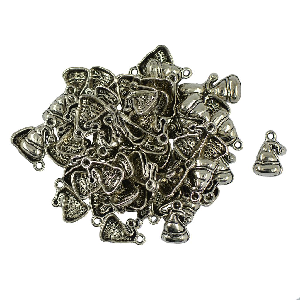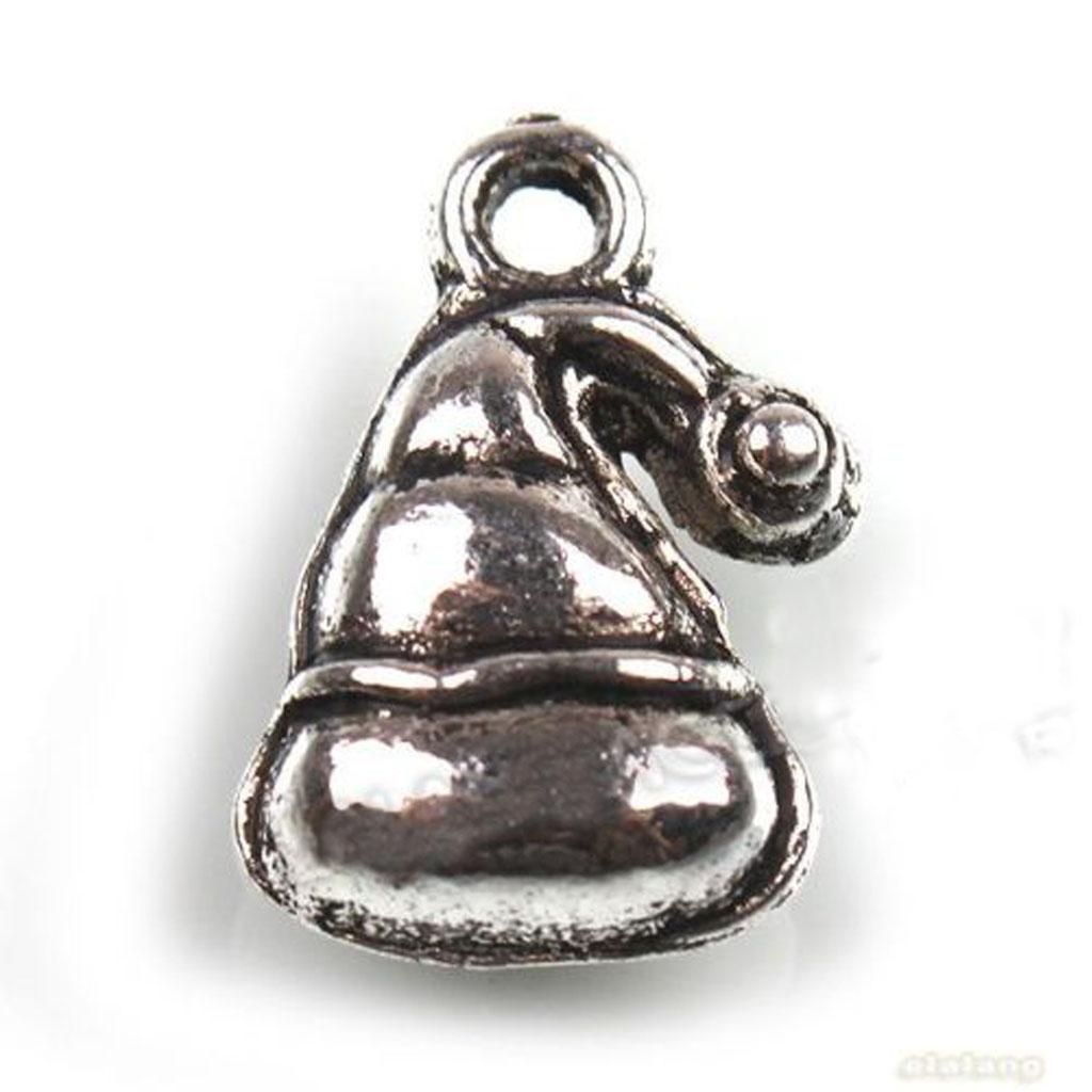 50pcs Charms Antique Silver Christmas Hat Alloy Pendants Findings Xmas 16mm