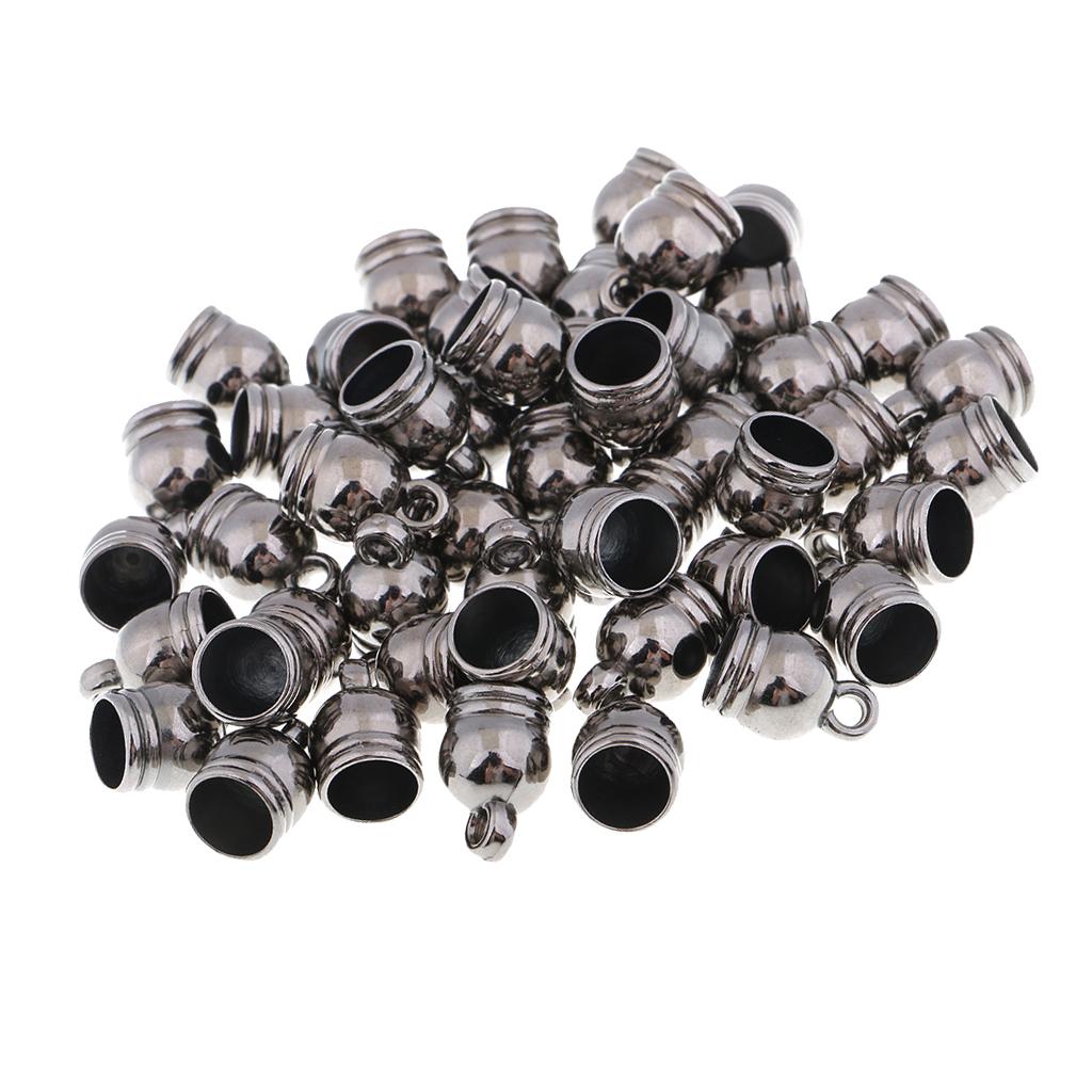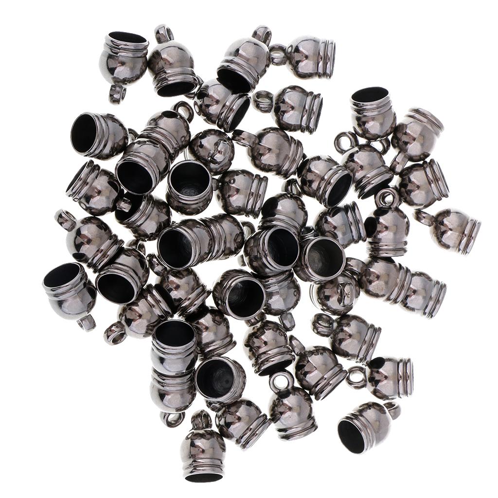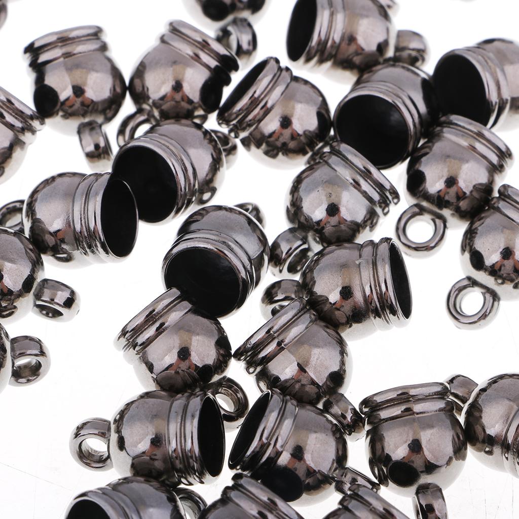 50pcs End Cap Bead Stopper Fit 8mm Leather Cord Jewelry Findings Grey Black