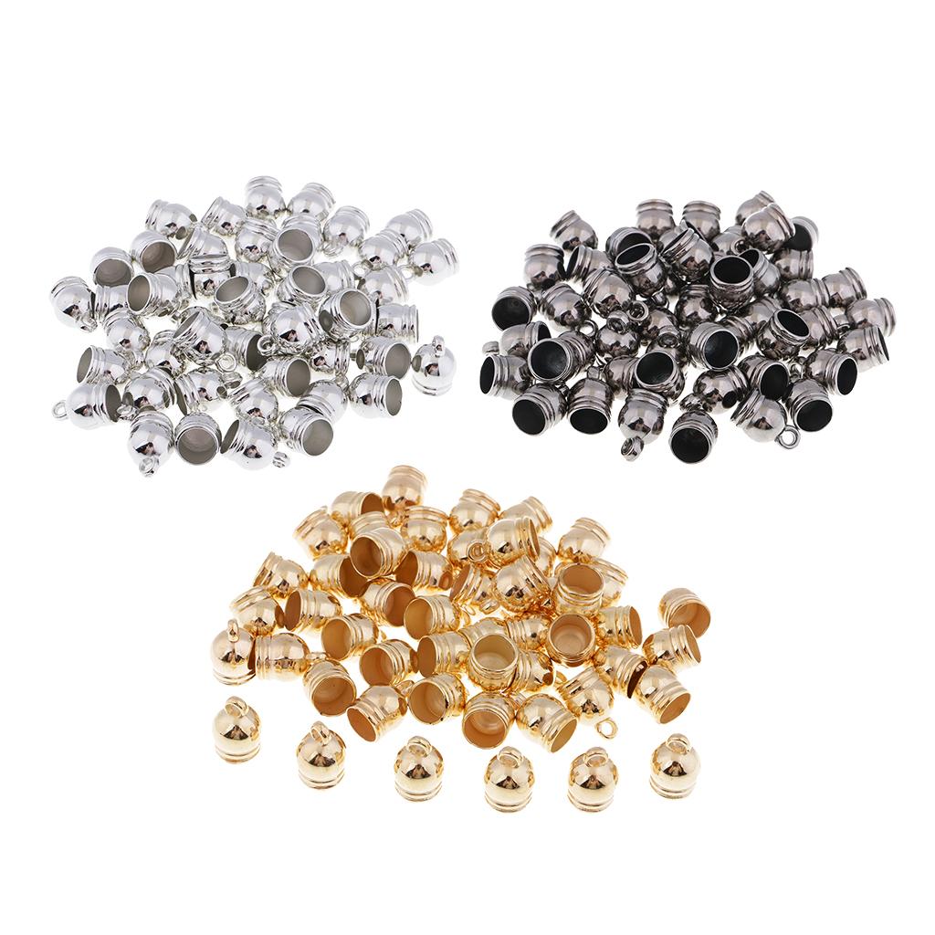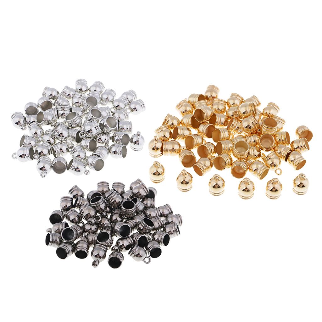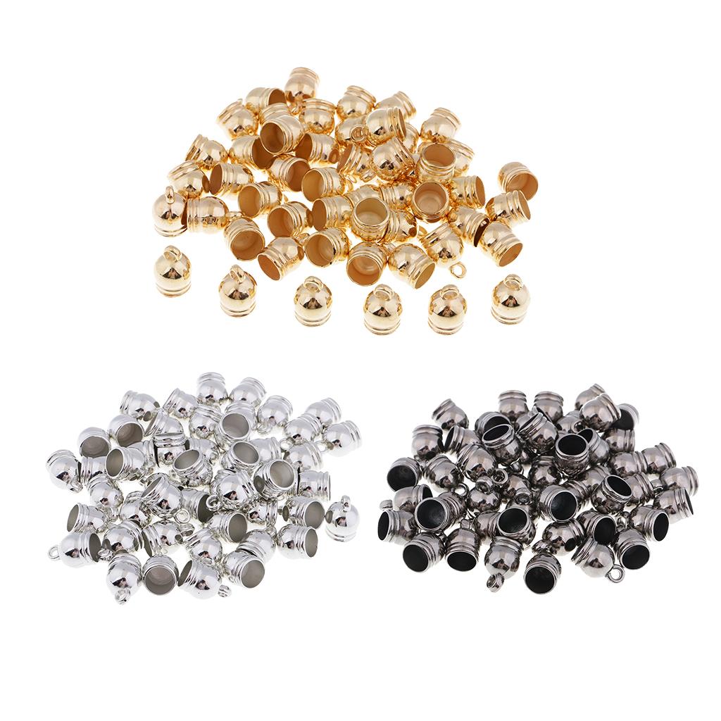 50pcs End Cap Bead Stopper Fit 8mm Leather Cord Jewelry Findings Grey Black