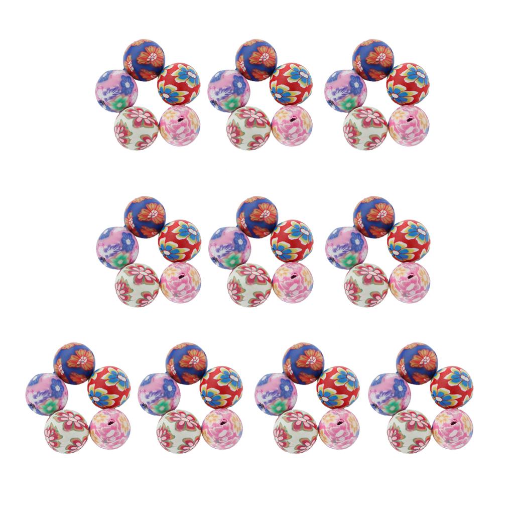 50Pcs Floral Polymer Clay Round Beads Craft 10mm
