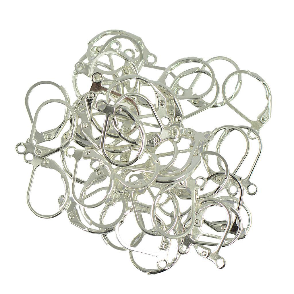 50pcs French Leverback Earrings Hooks Open Loop Findings DIY Silver White