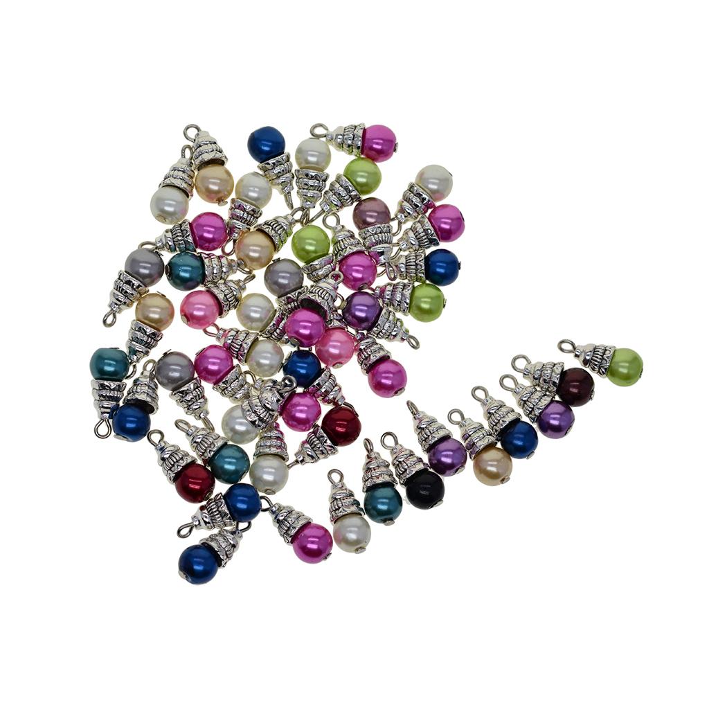 Colorful round glass pearl beads and daisy flower, handcrafted with flat head pin, making it a ready to use dangle charms
