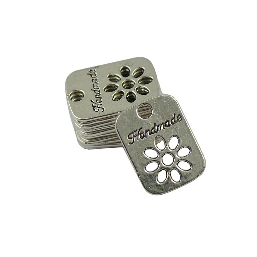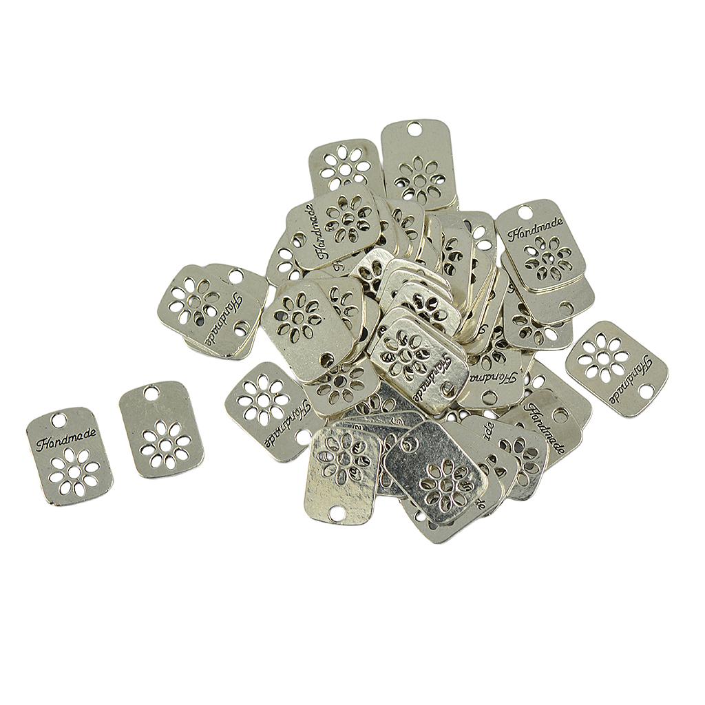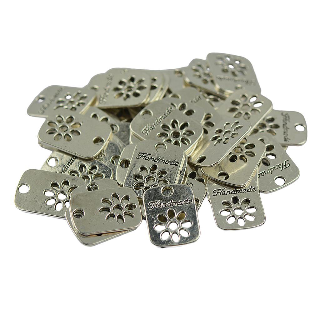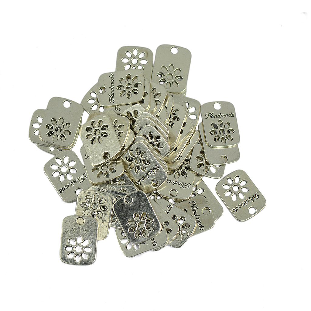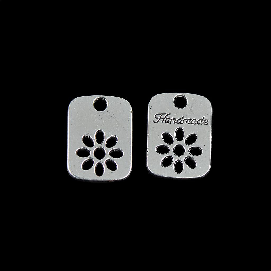 • Antique Silver Alloy Rectangle “Handmade”  and Hollow Daisy Flower for Jewelry DIY Making label charms pendant