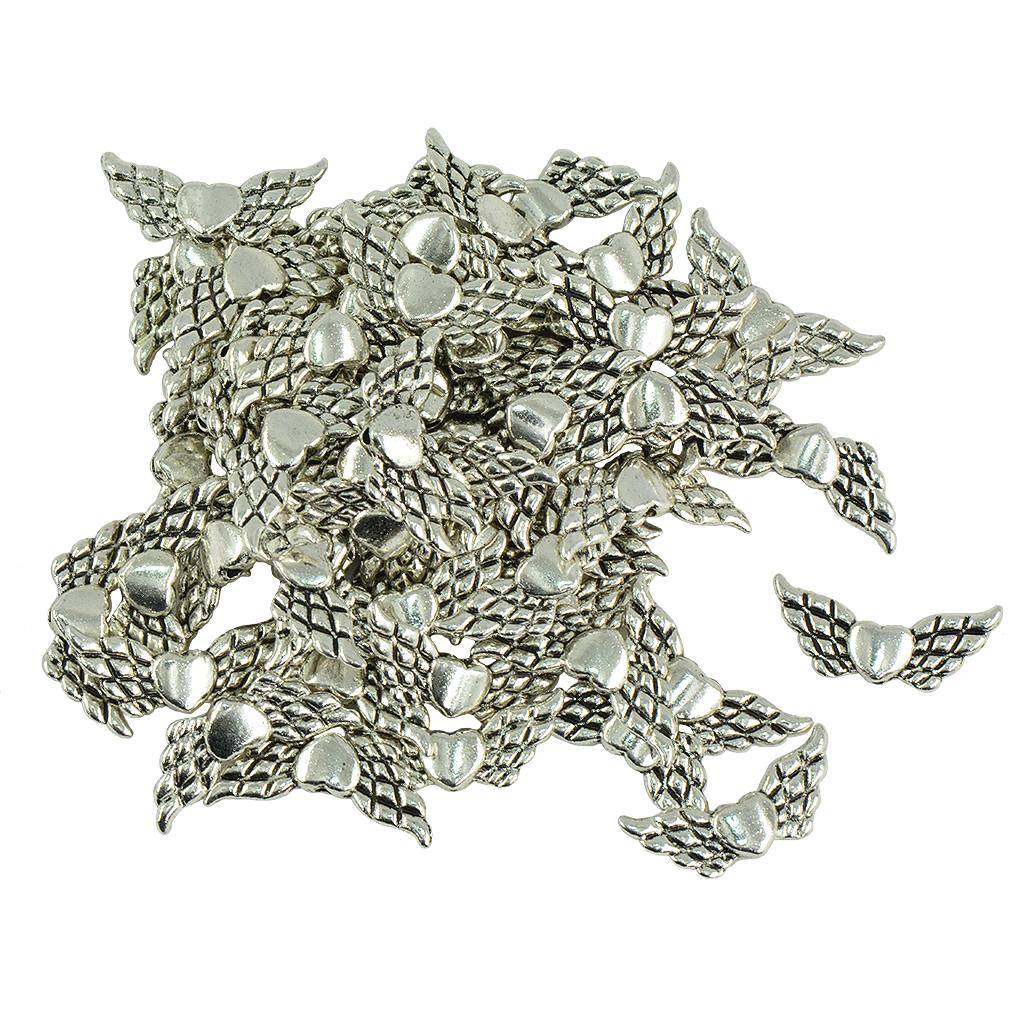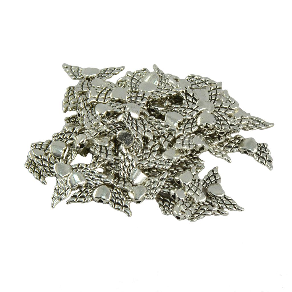 50 Pieces Tibetan Silver angel wing heart spacer beads