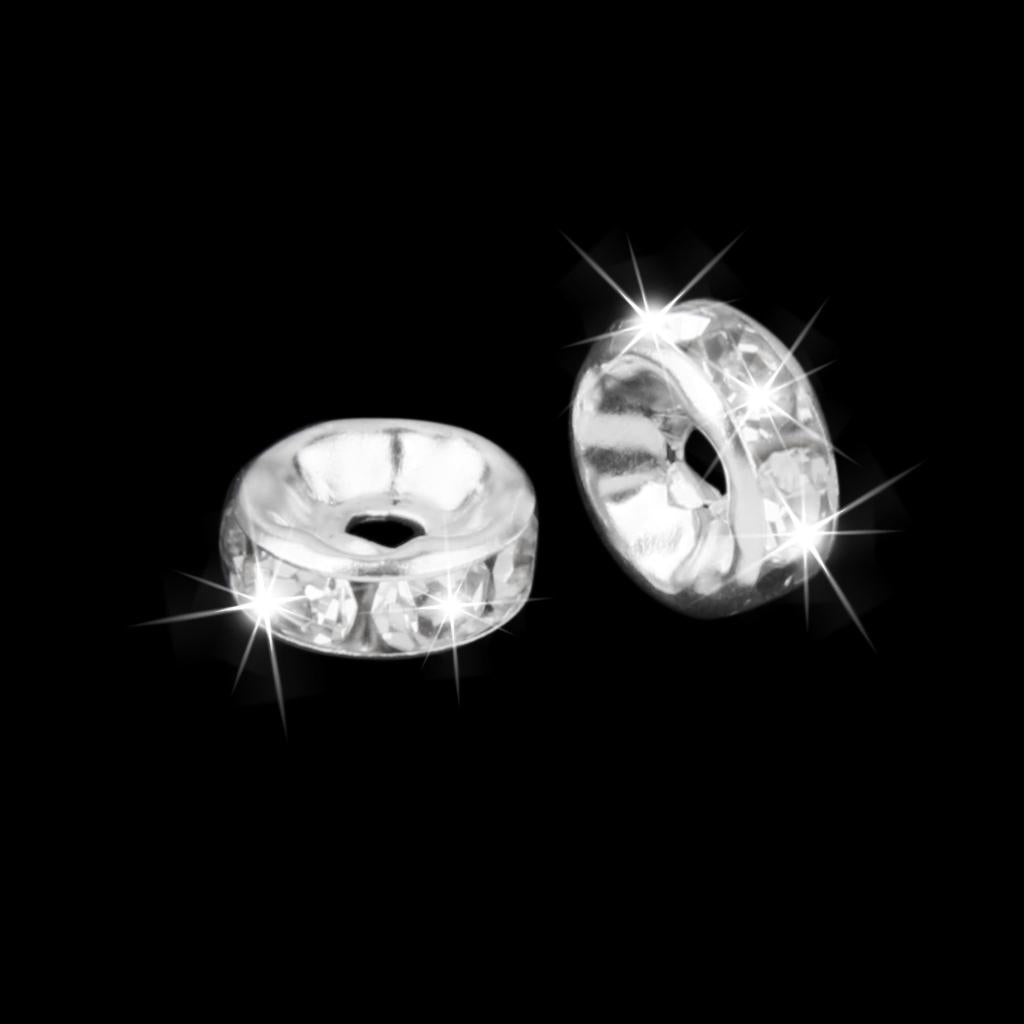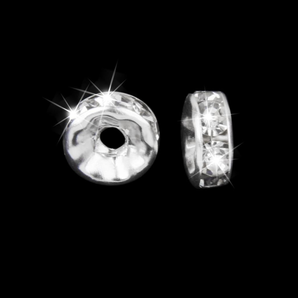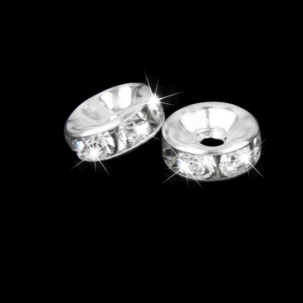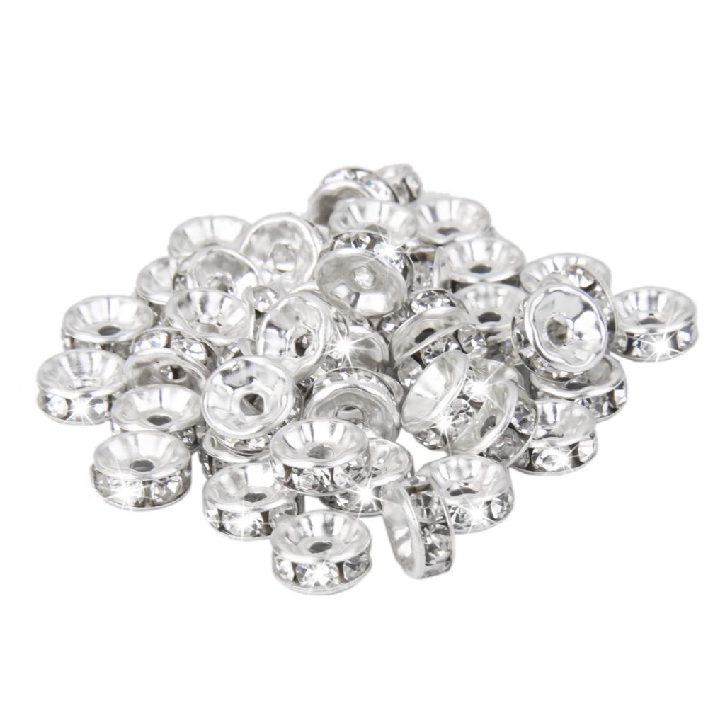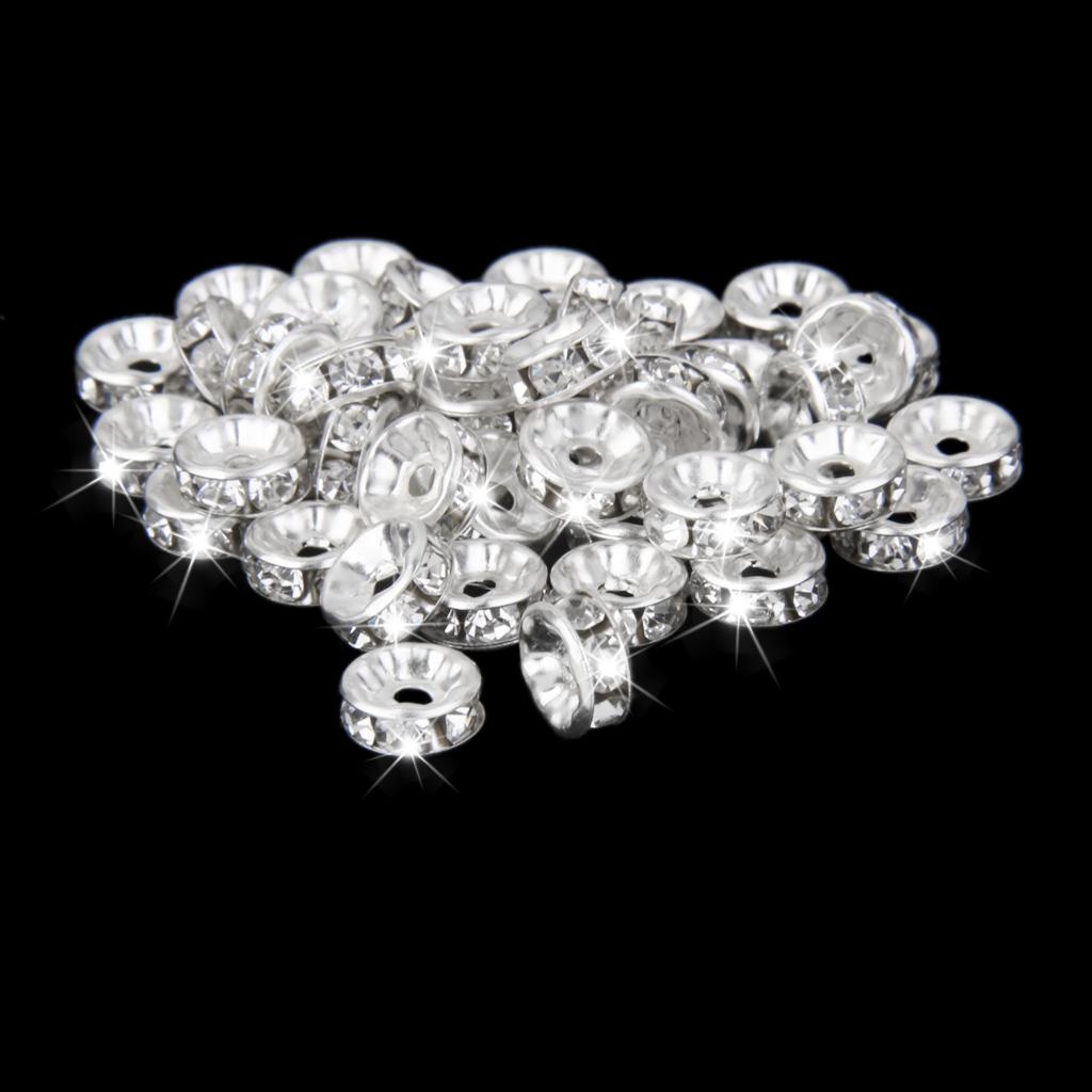 50pcs Silver Plated Czech Crystal Spacer Rondelle Beads Findings 6mm