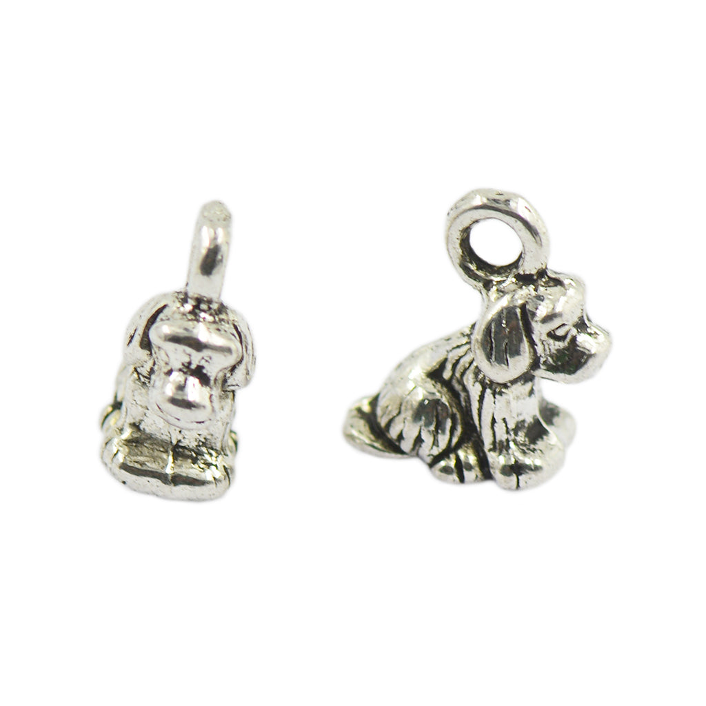 50pcs Tibetan Silver 3D Puppy Dog Charms Pendants for Jewelry DIY Making