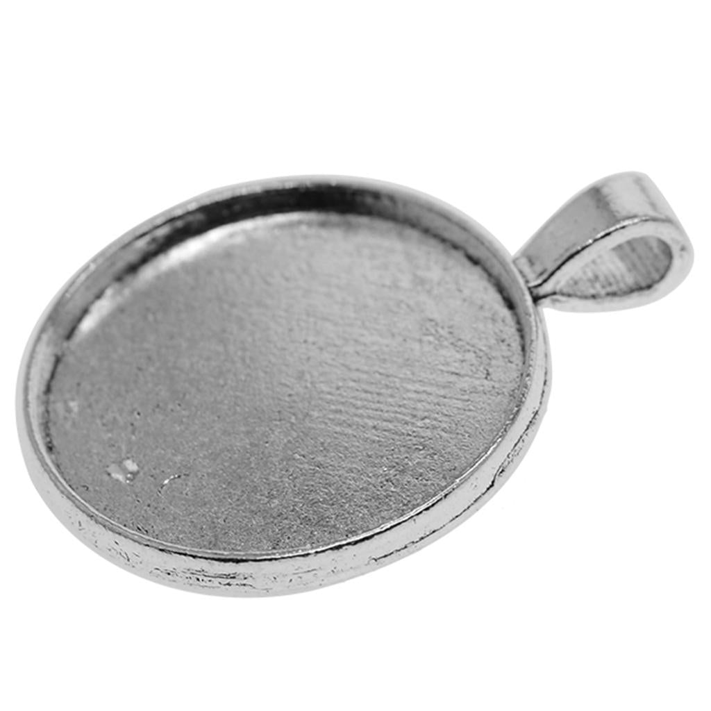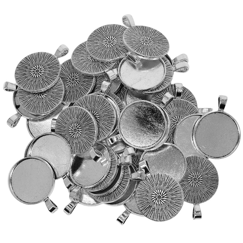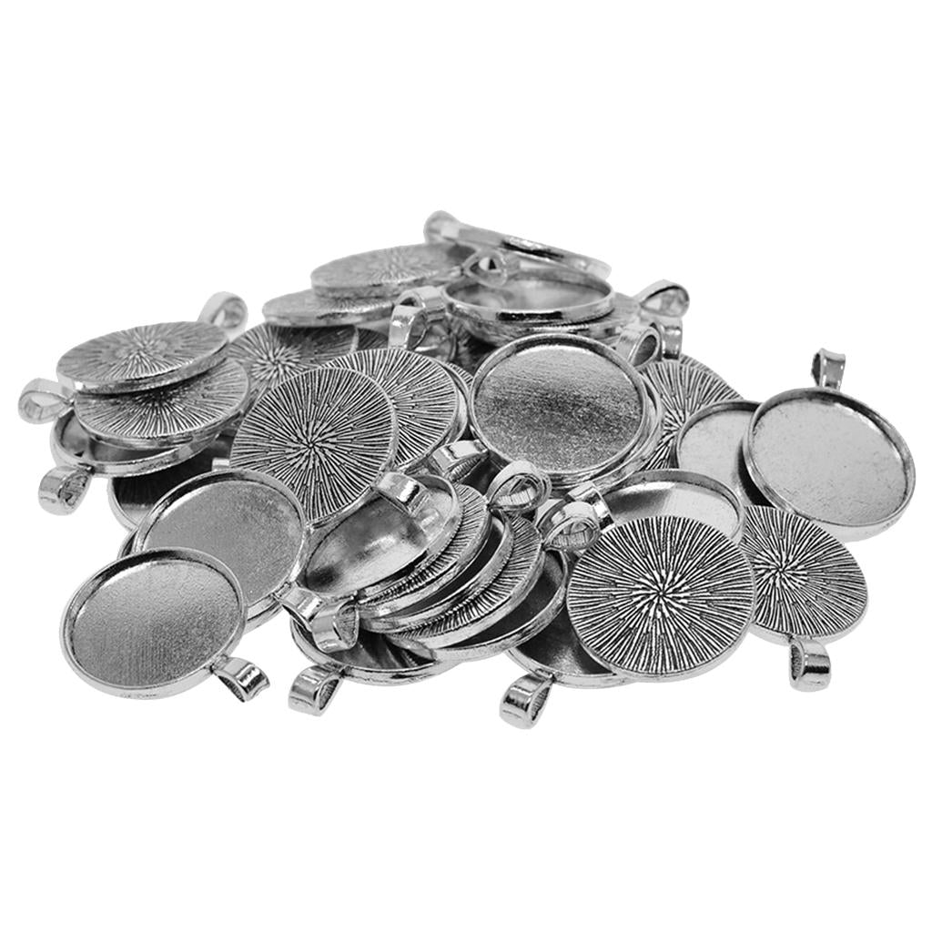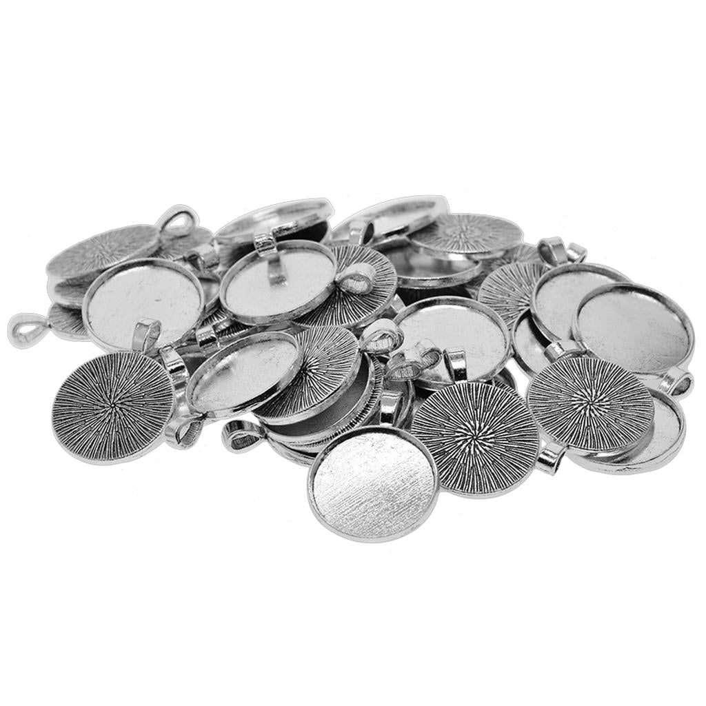 50pcs Tibetan Silver Blank Round Bezel Tray Base Cabochon Necklace Pendant for Beads, Glitter, Pendants,Charms, Small Arts and Crafts Items