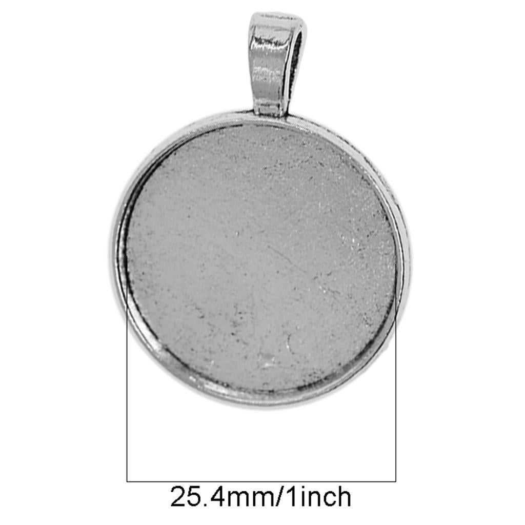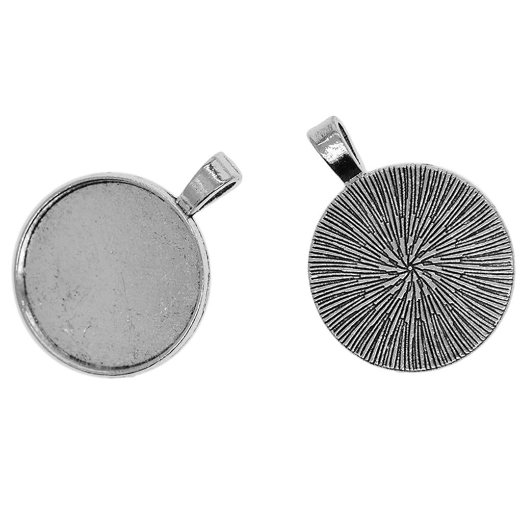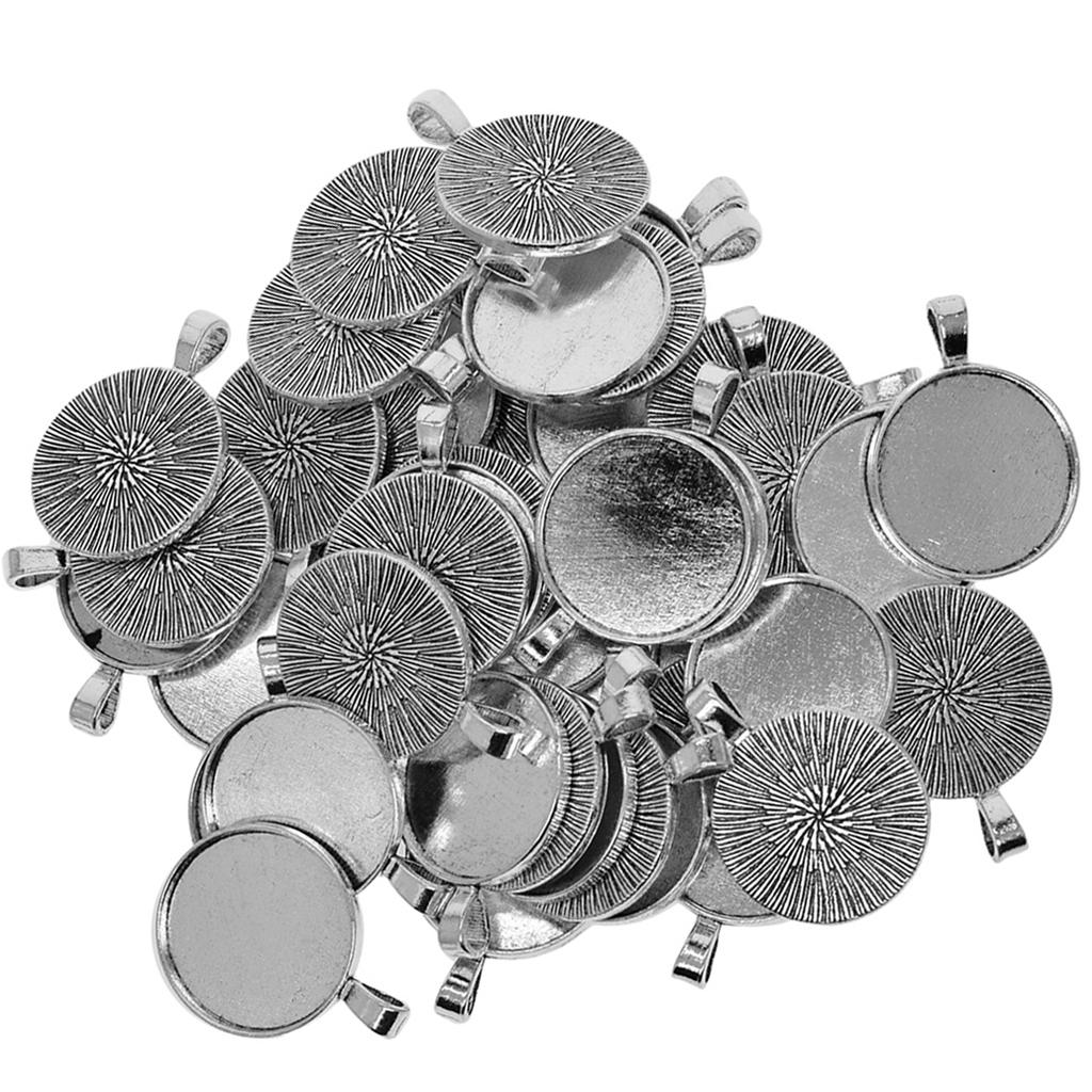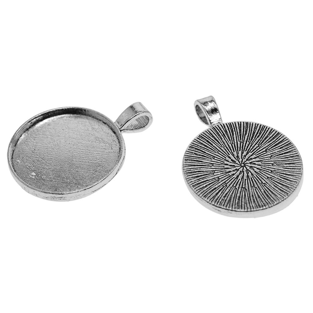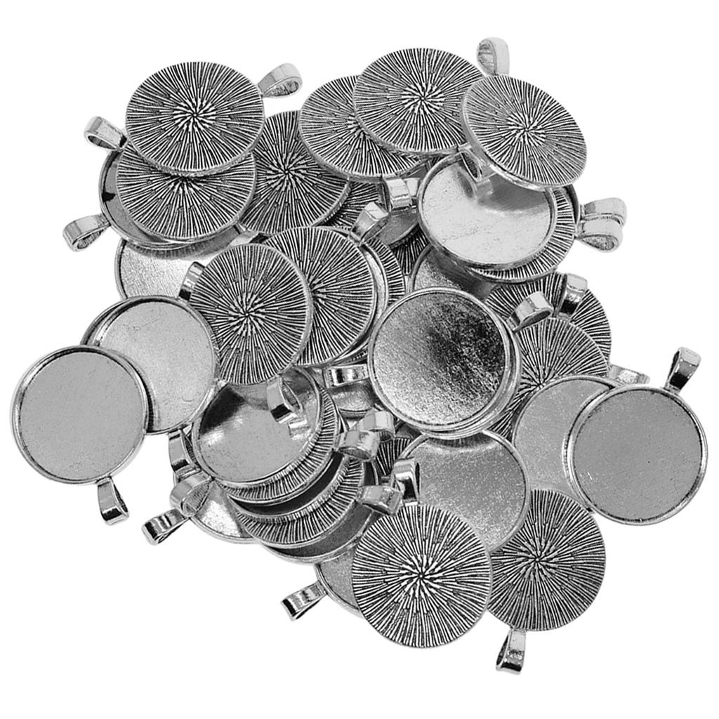 50pcs Tibetan Silver Blank Round Bezel Tray Base Cabochon Necklace Pendant for Beads, Glitter, Pendants,Charms, Small Arts and Crafts Items