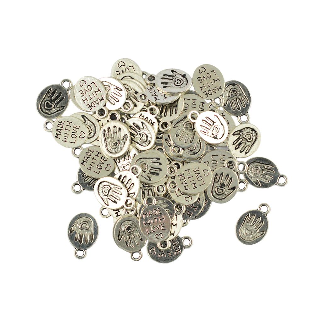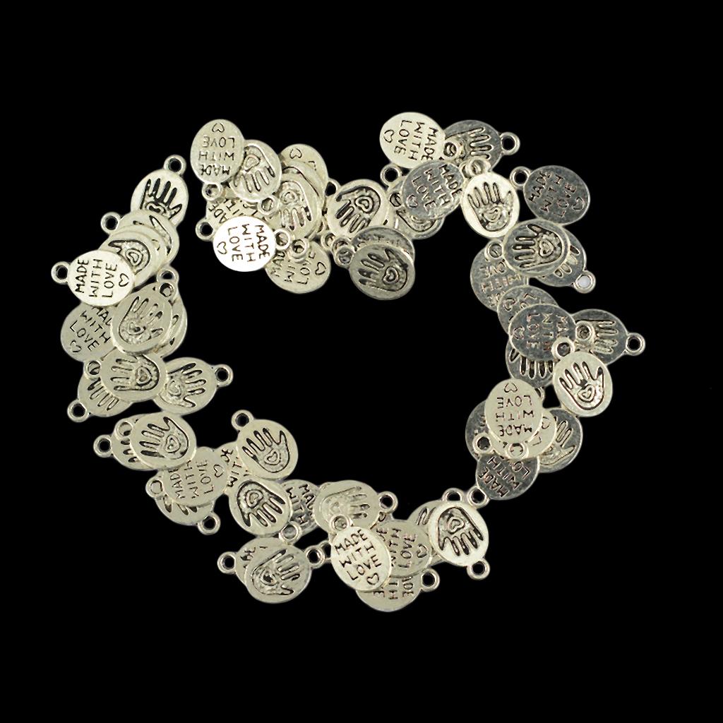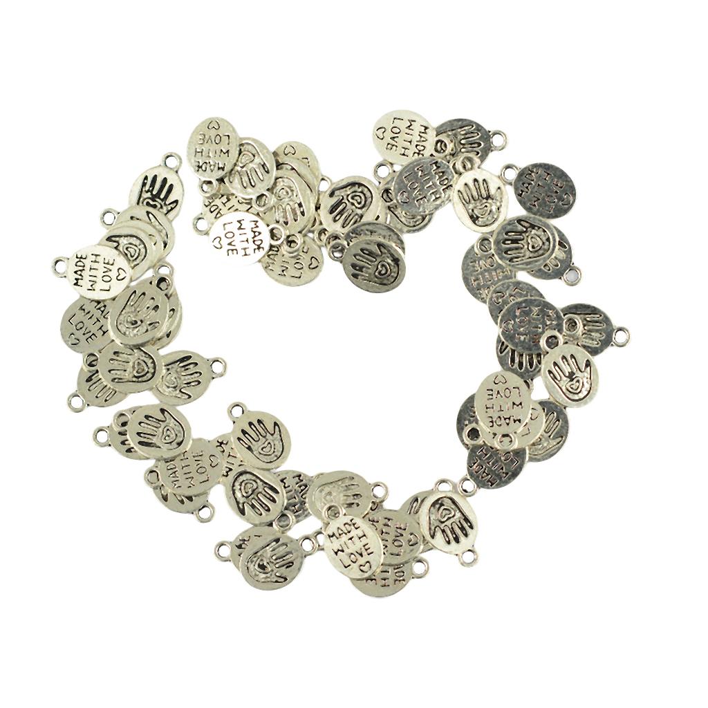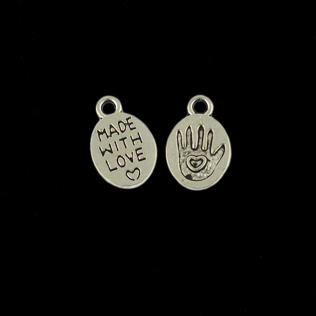 50Piece Silver Plated MADE WITH LOVE Heart Label Charm Pendant DIY Oval