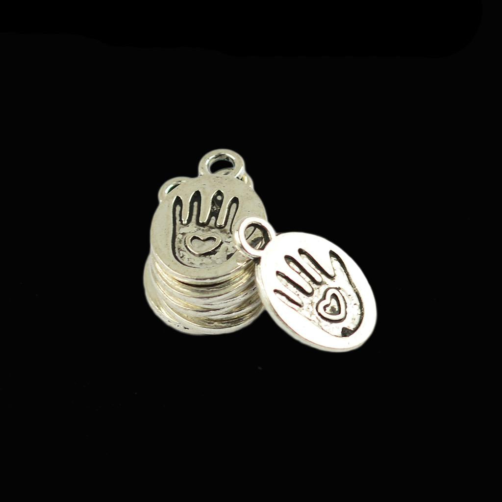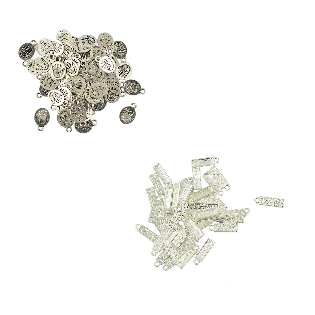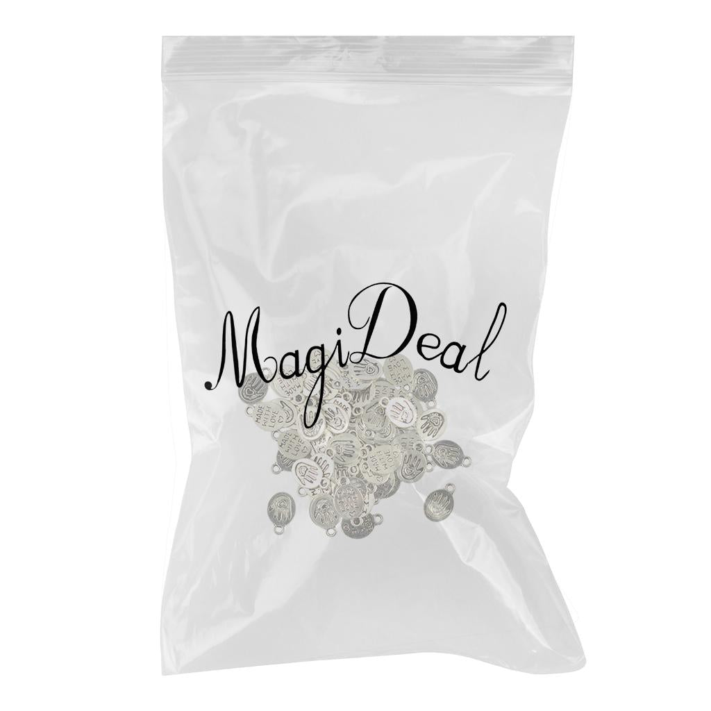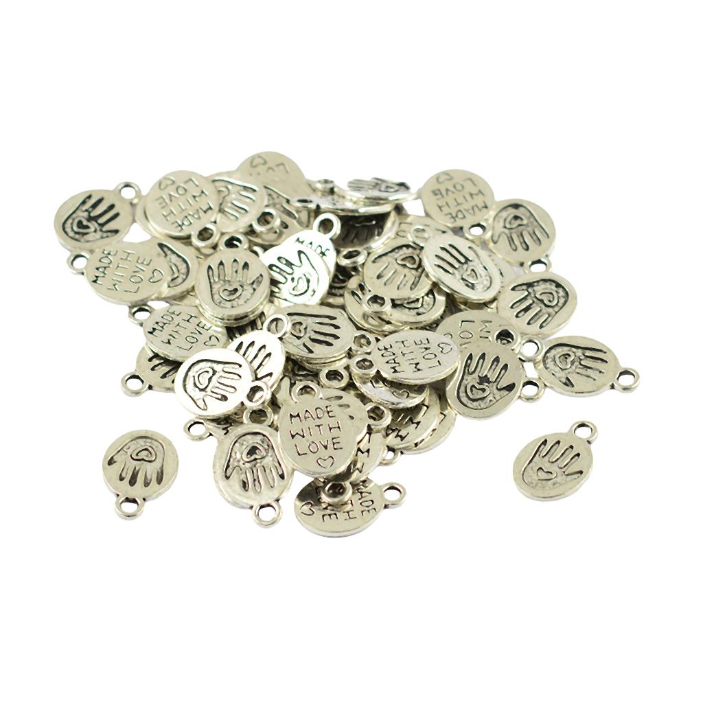 50Piece Silver Plated MADE WITH LOVE Heart Label Charm Pendant DIY Oval