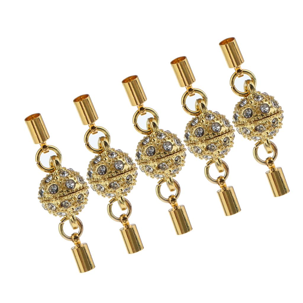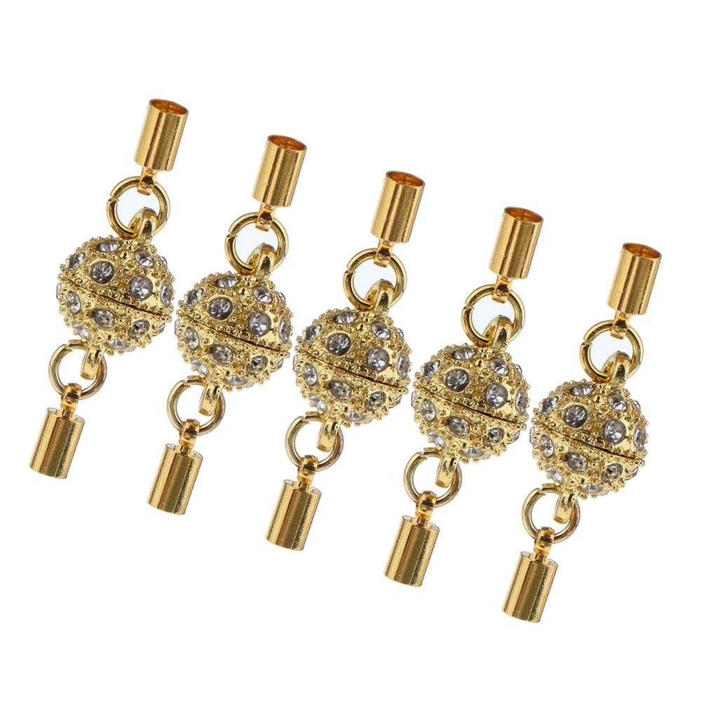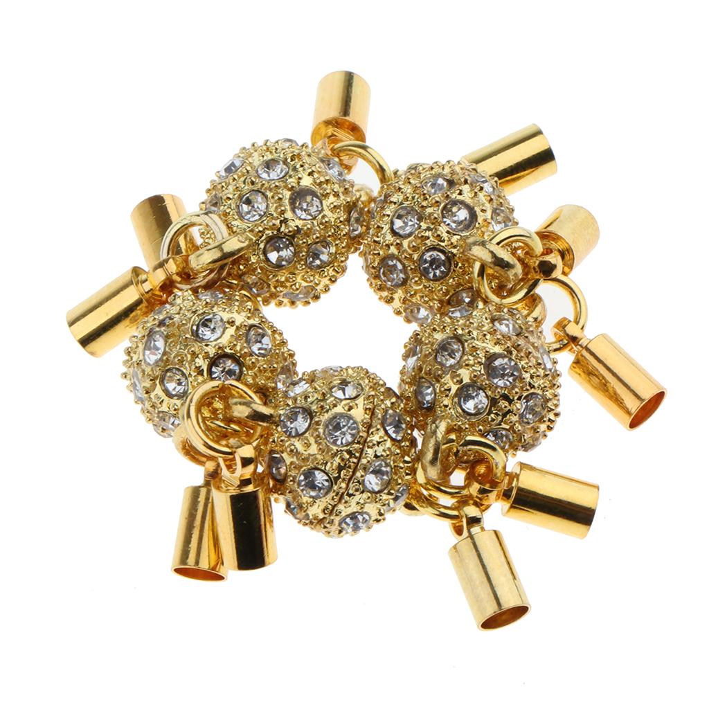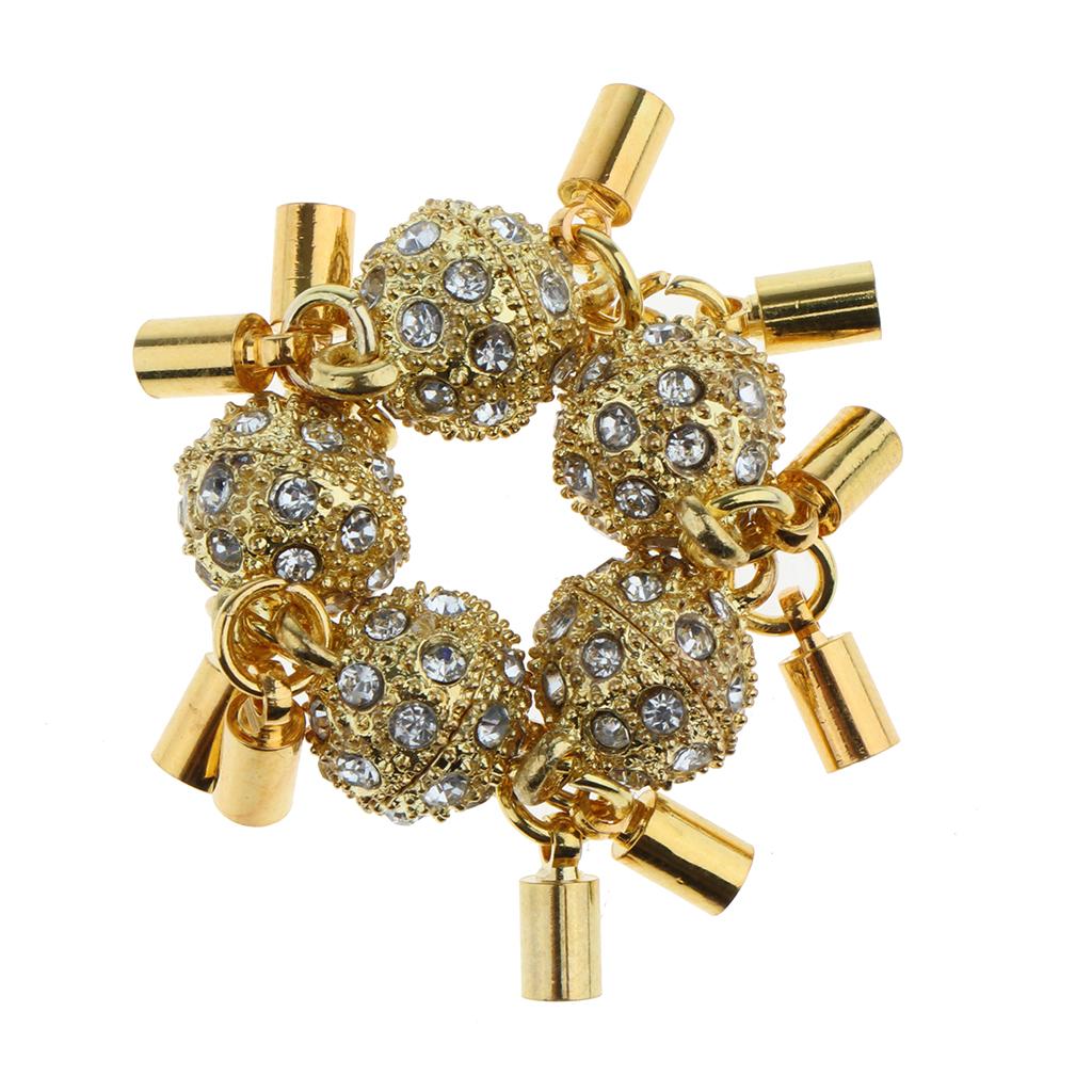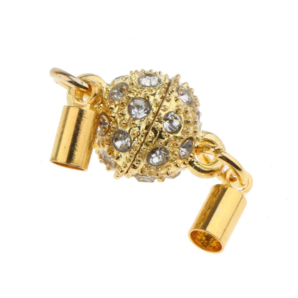 5Pcs Crystal Round Ball Magnetic Clasps Double Tube Clasp Hook DIY Gold