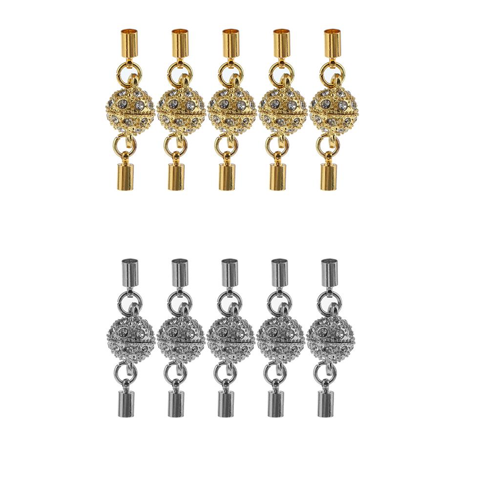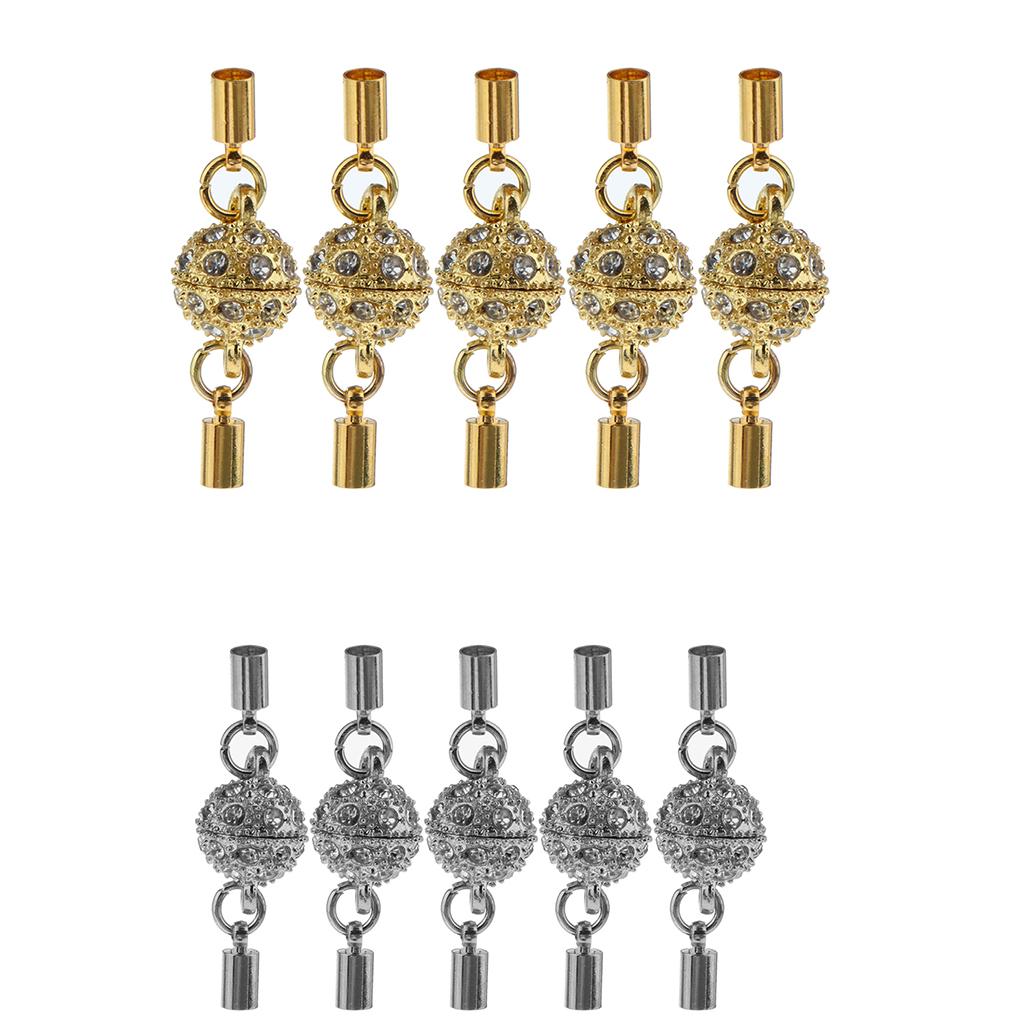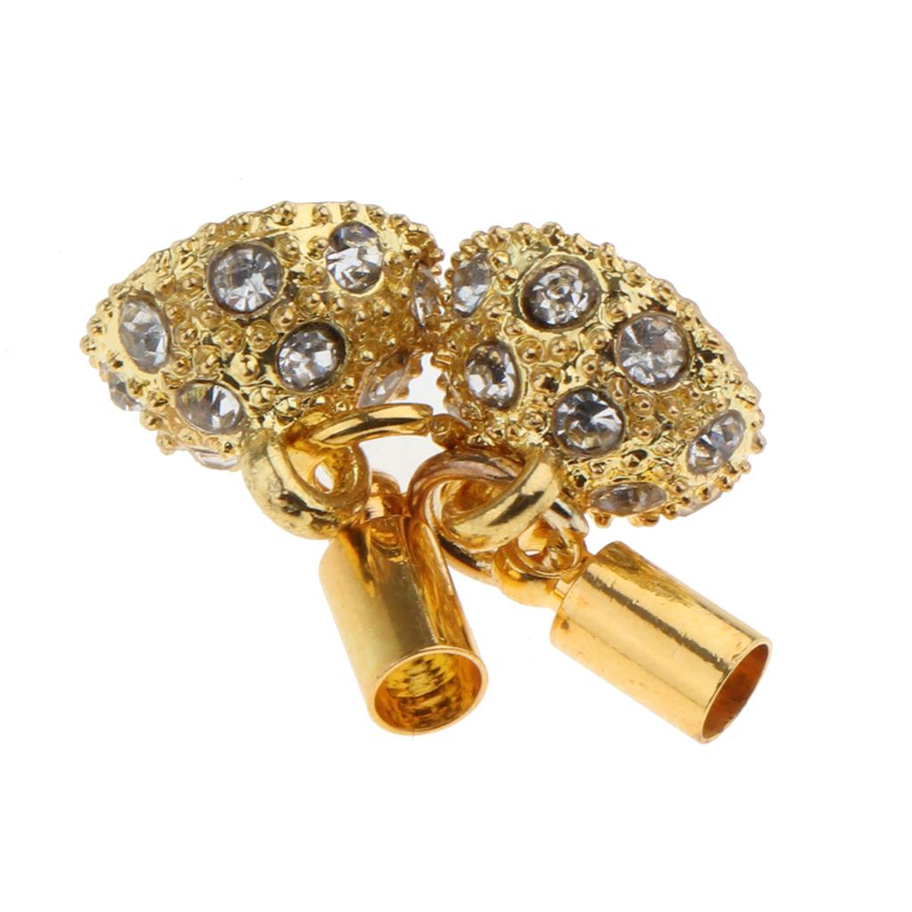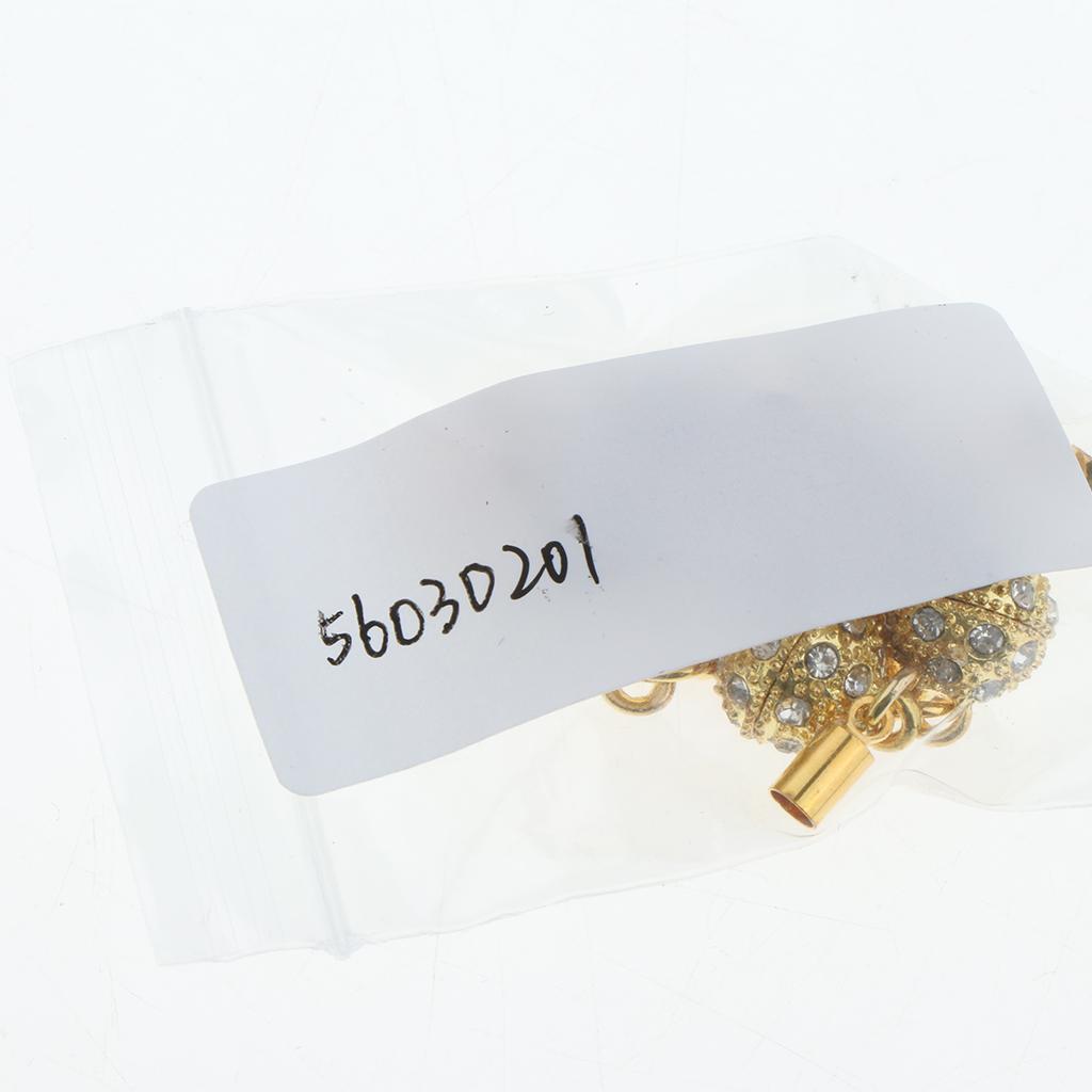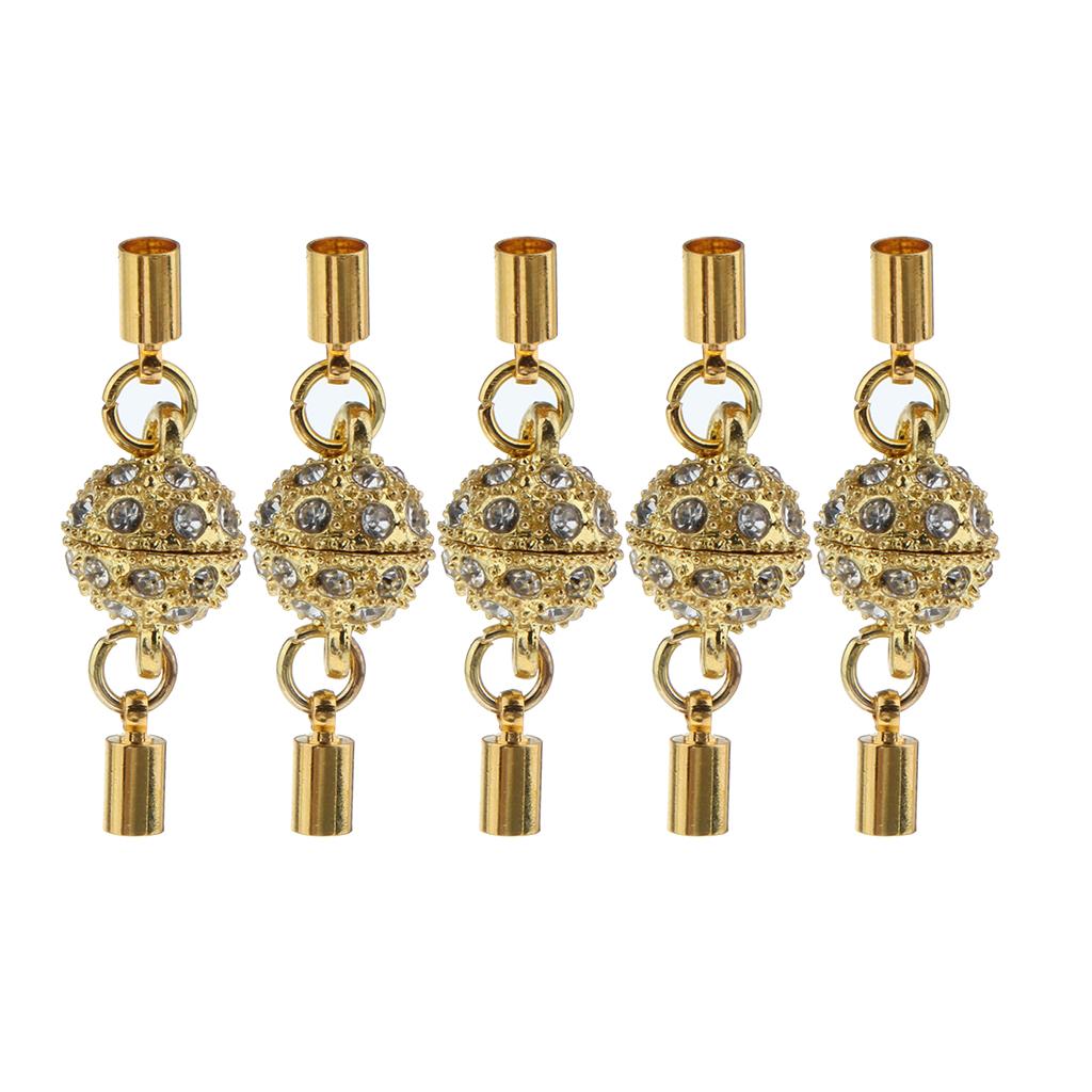 5Pcs Crystal Round Ball Magnetic Clasps Double Tube Clasp Hook DIY Gold