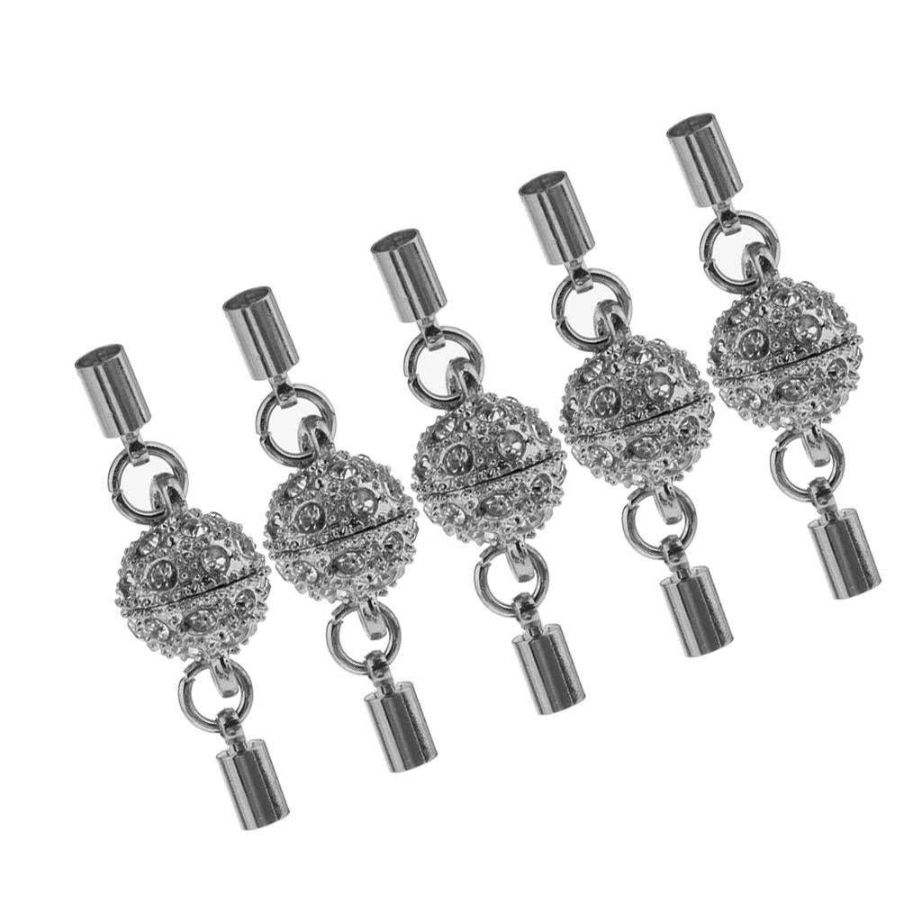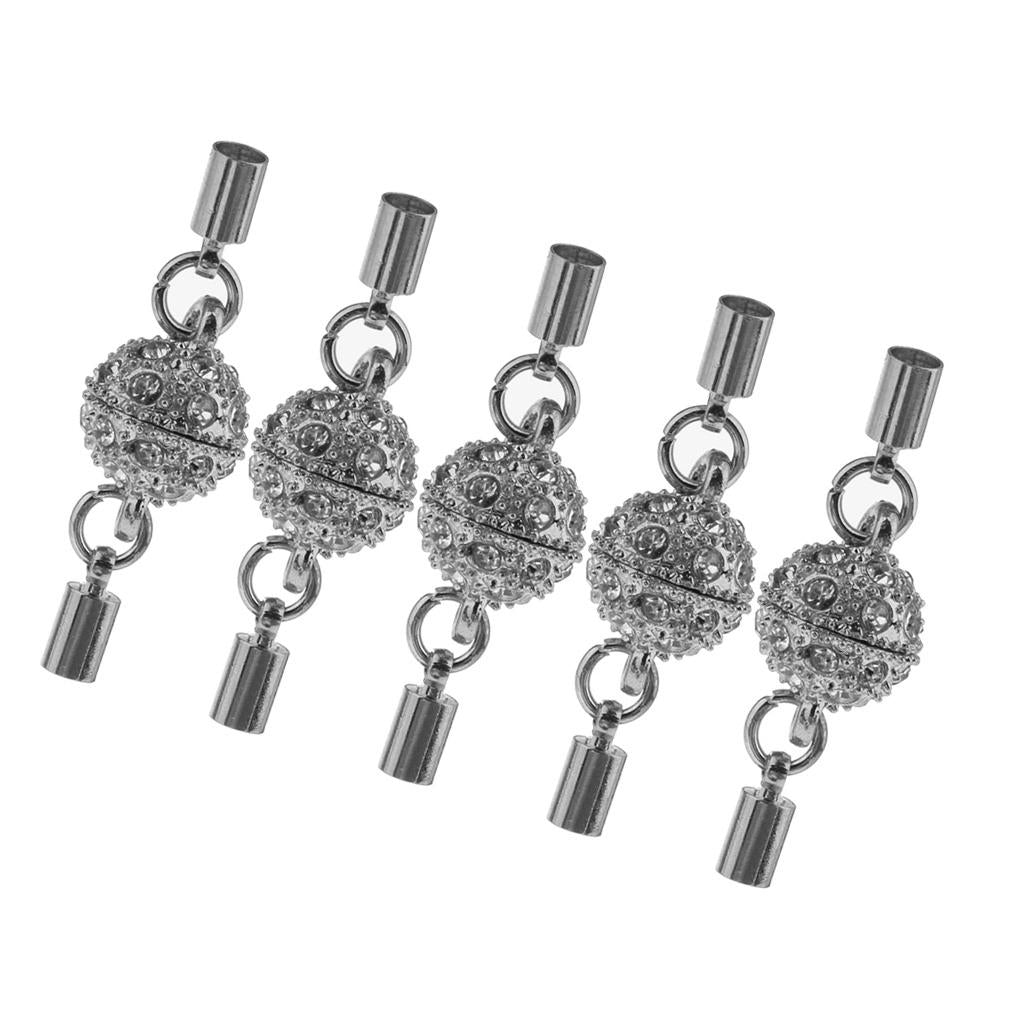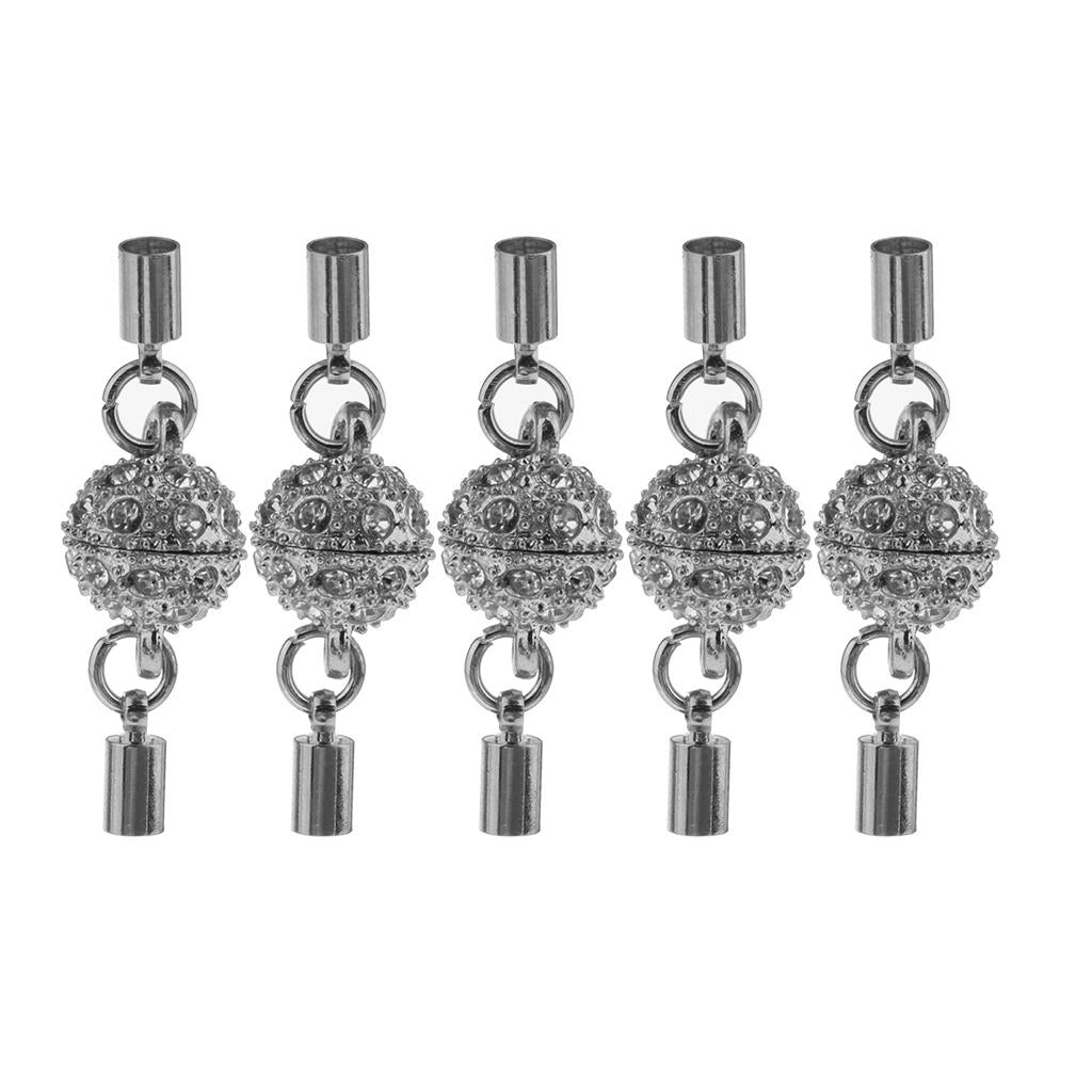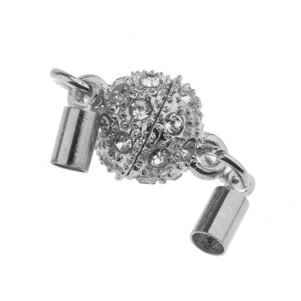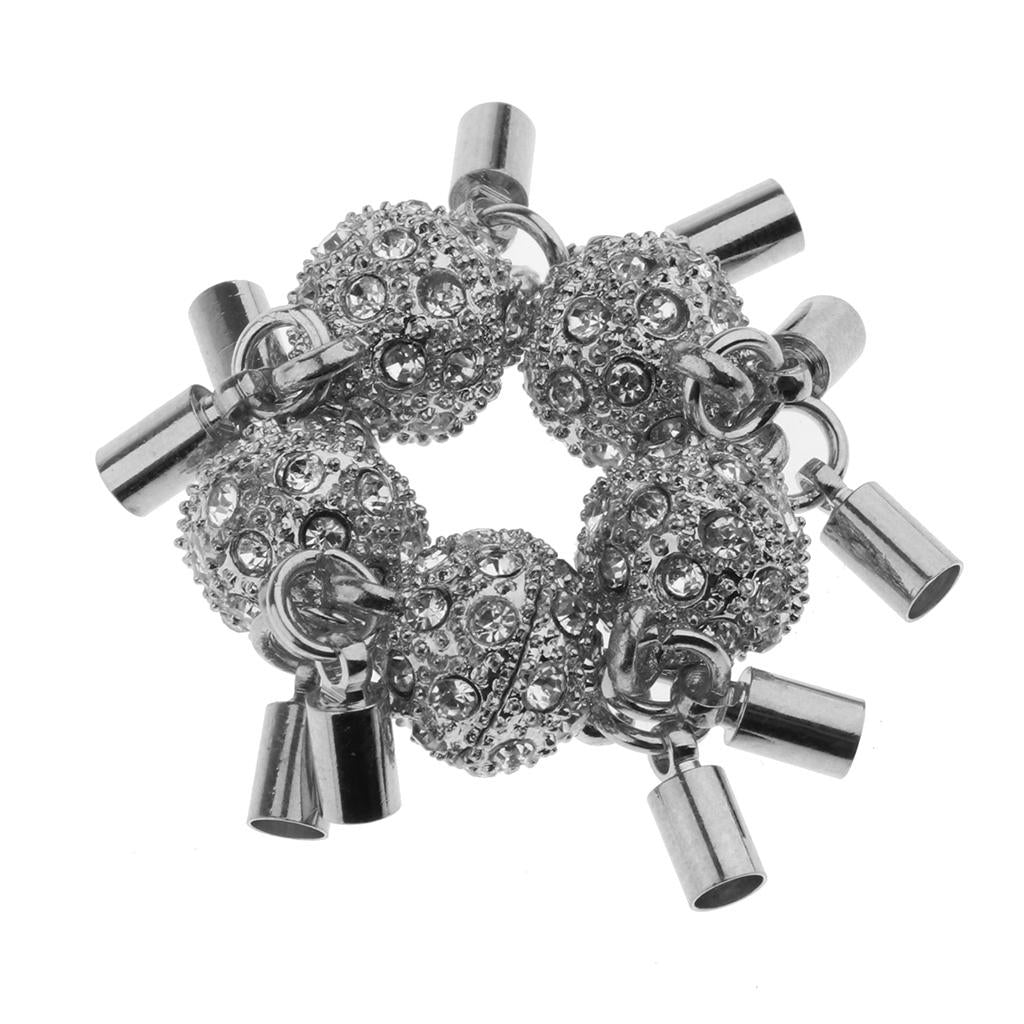 5Pcs Crystal Round Ball Magnetic Clasps Double Tube Clasp Hook DIY Silver