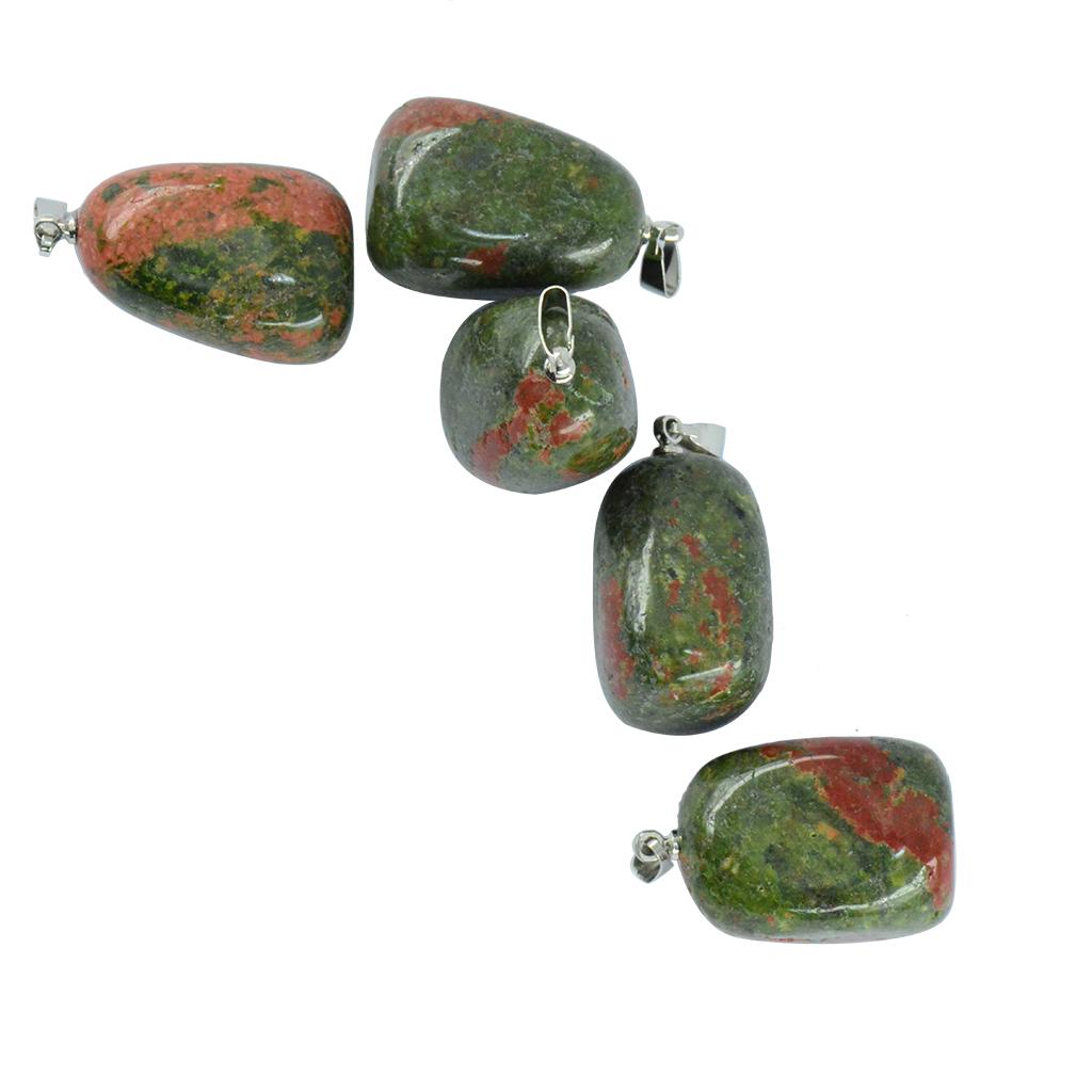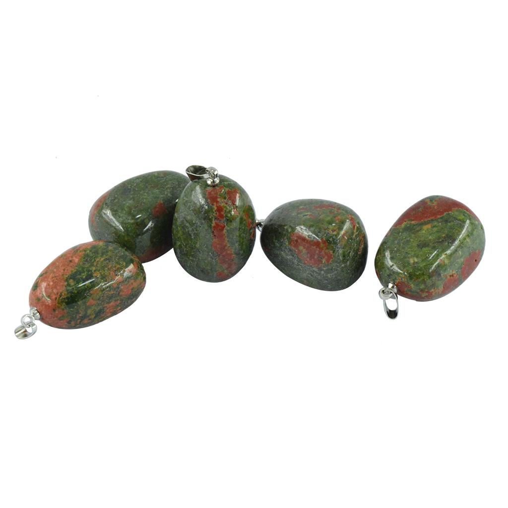 5pcs Gemstone Charms Pendants Jewelry Making Green Unakite Jasper