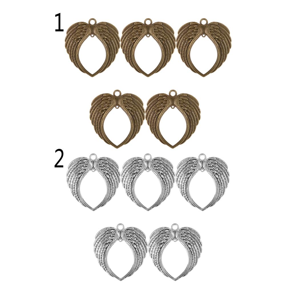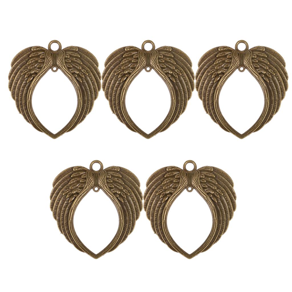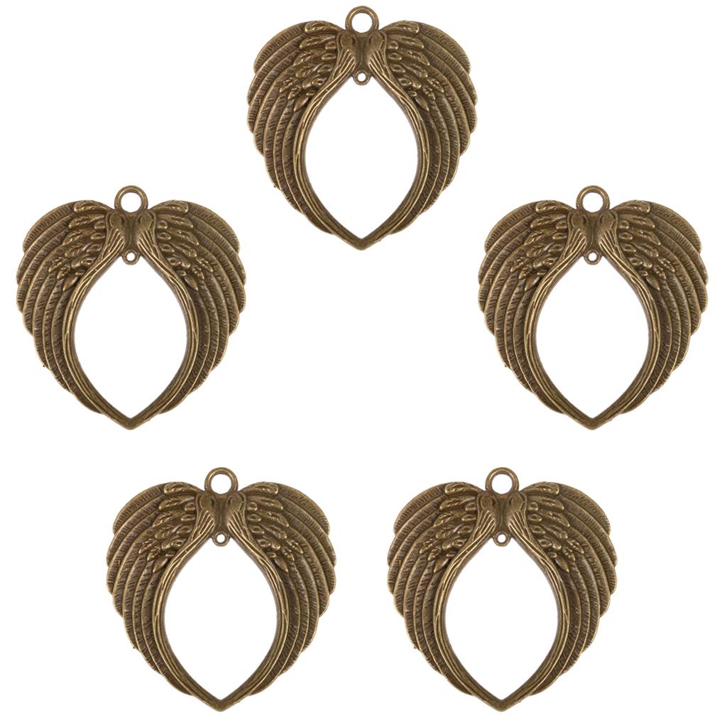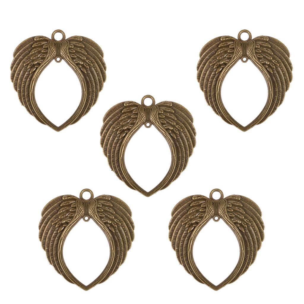5Pcs Vintage Big Double Angel Wings Charm Pendant DIY Jewelry Antique Brass