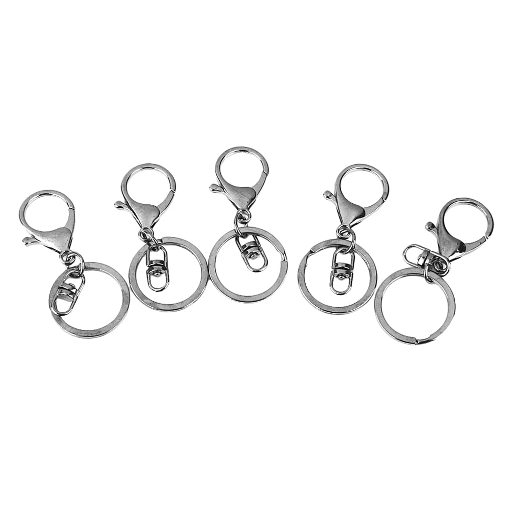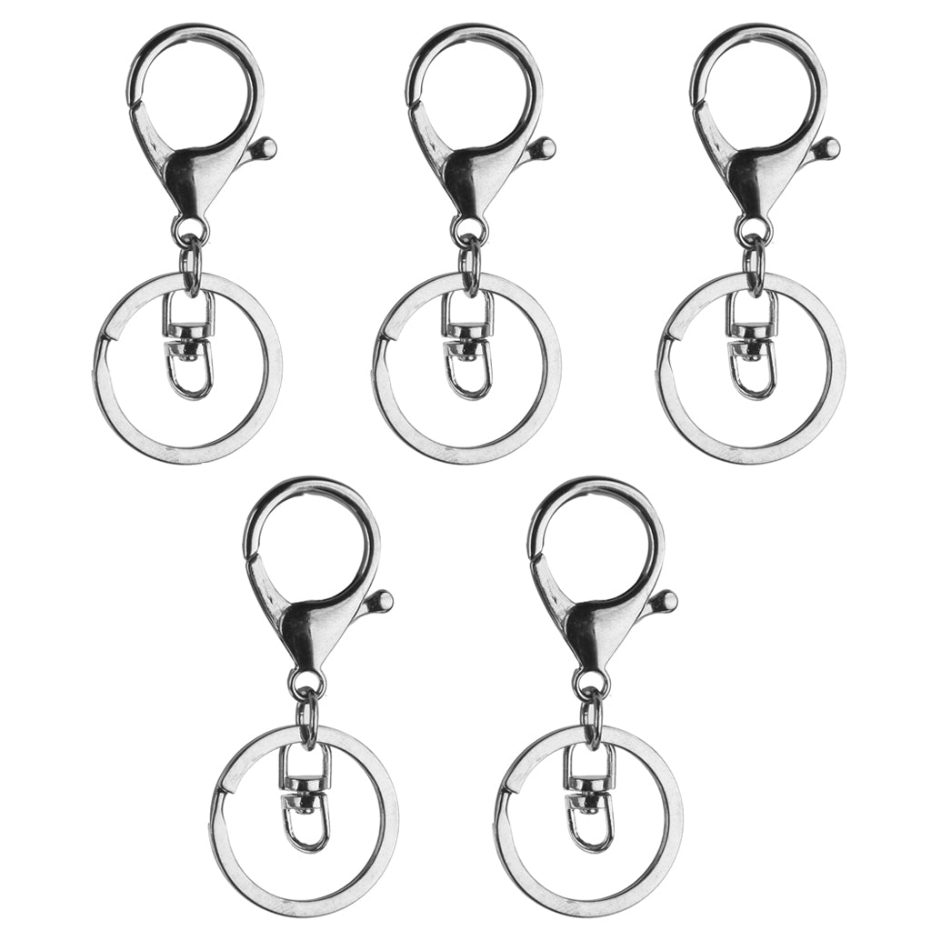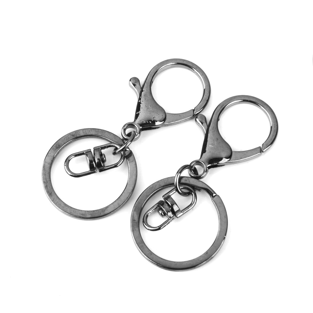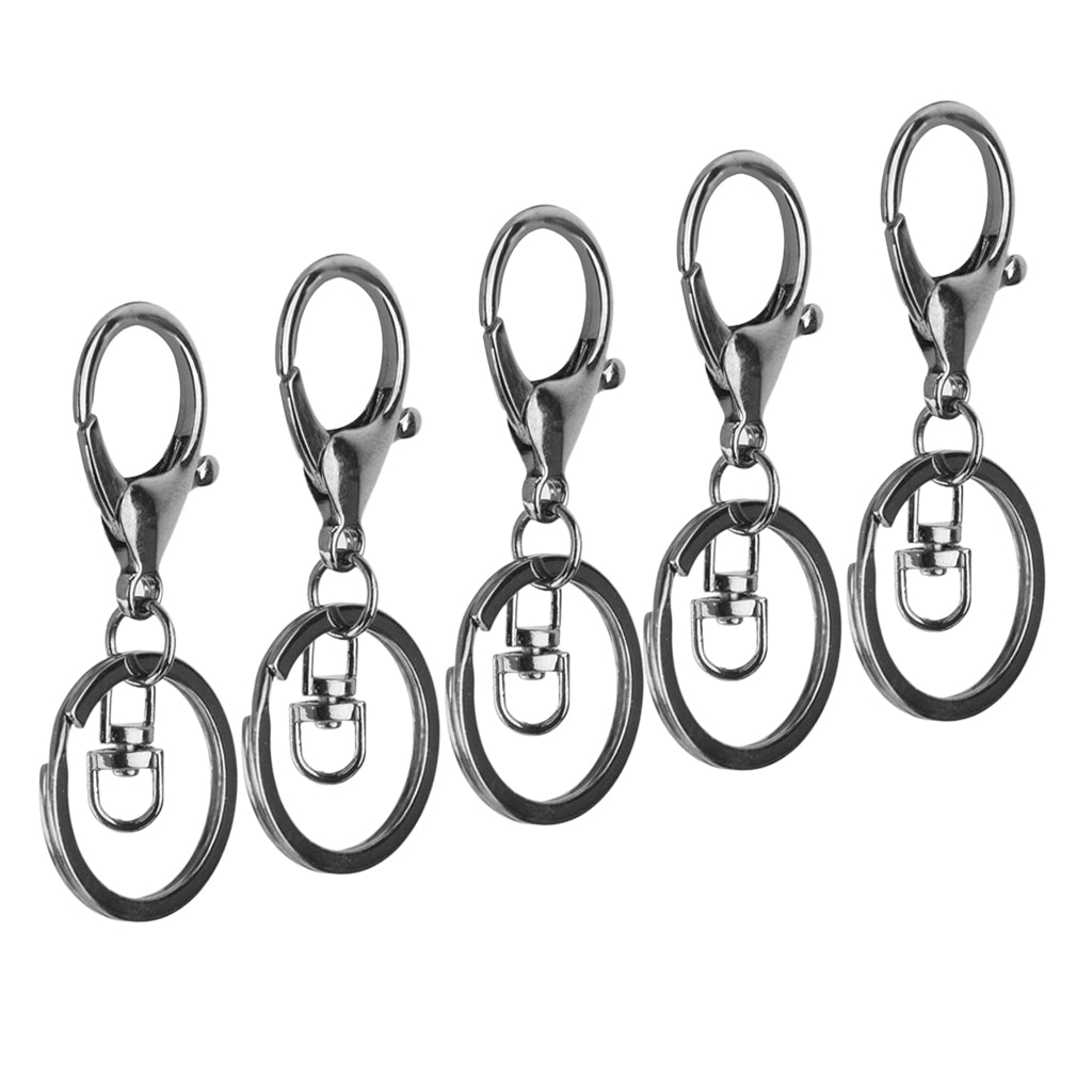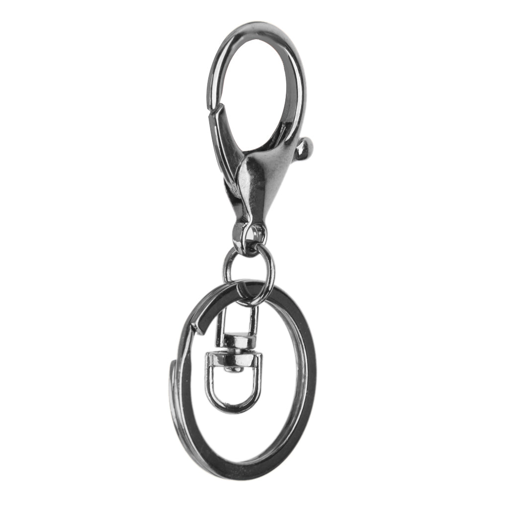 5x Gun Black Lobster Clasp Trigger Clip Key Ring Charms + Split Ring 65mm