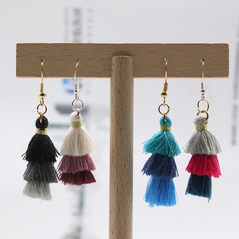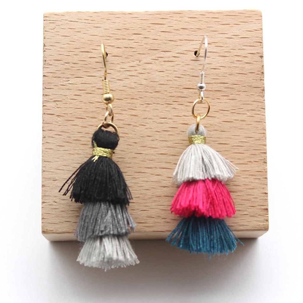 These fun earrings bracelet necklace charms pendant jewelry and 3-Layer thread tassel dangles in a voluminous, hula-skirt inspired shape.